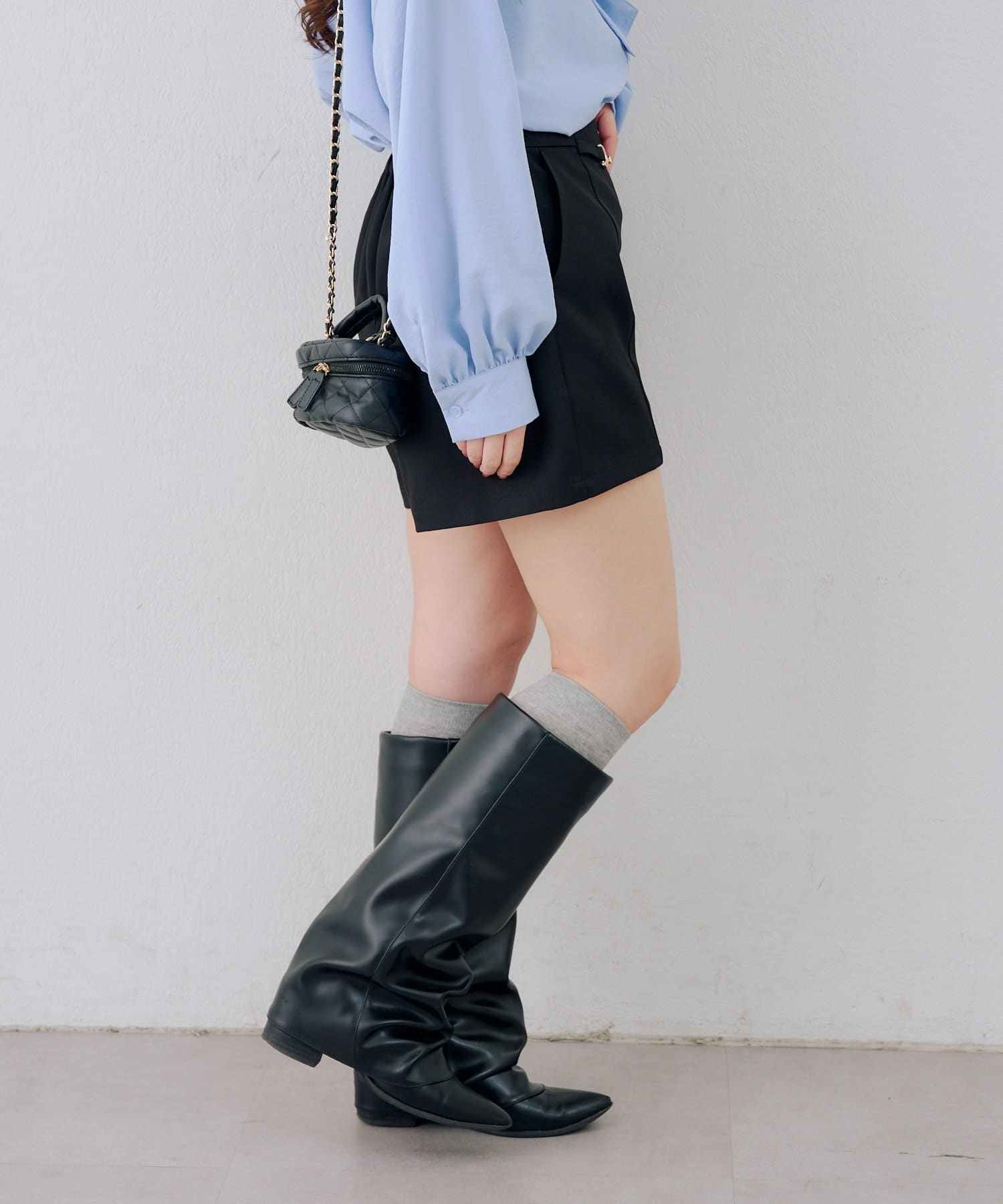 ・ニットと合わせて、大人っぽい雰囲気に。アクセサリーで華やかさを添えれば、パーティーシーンにも対応できます