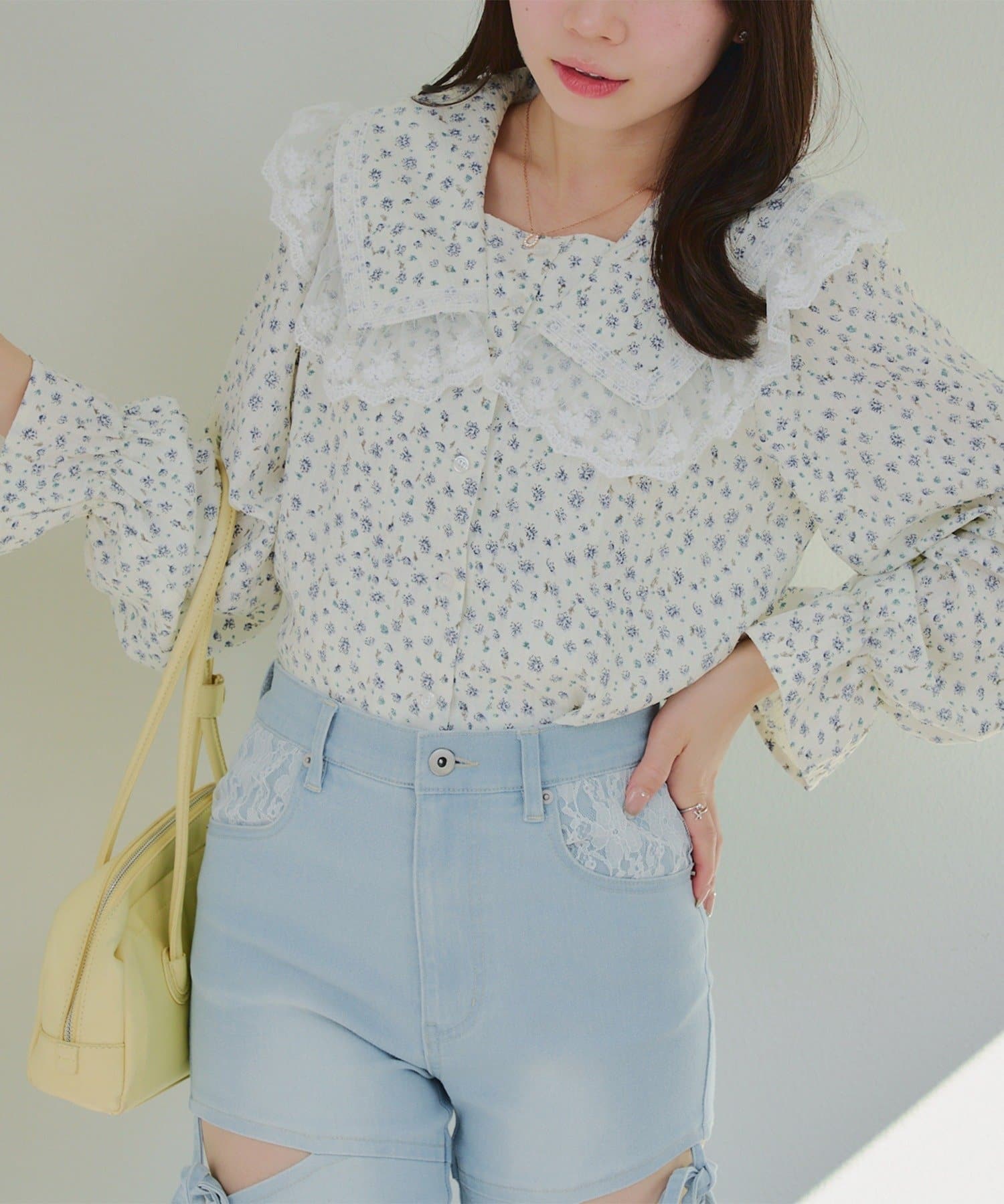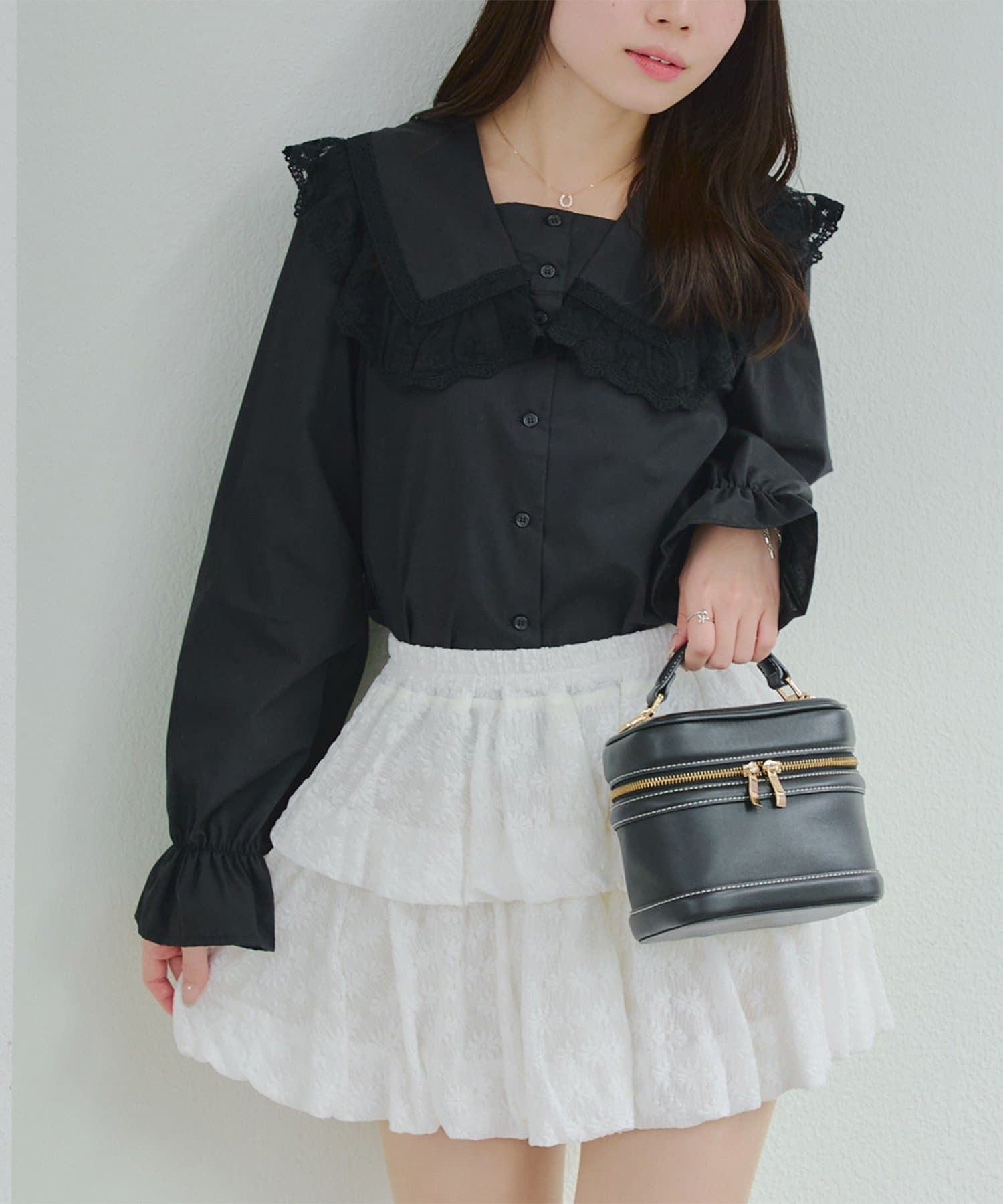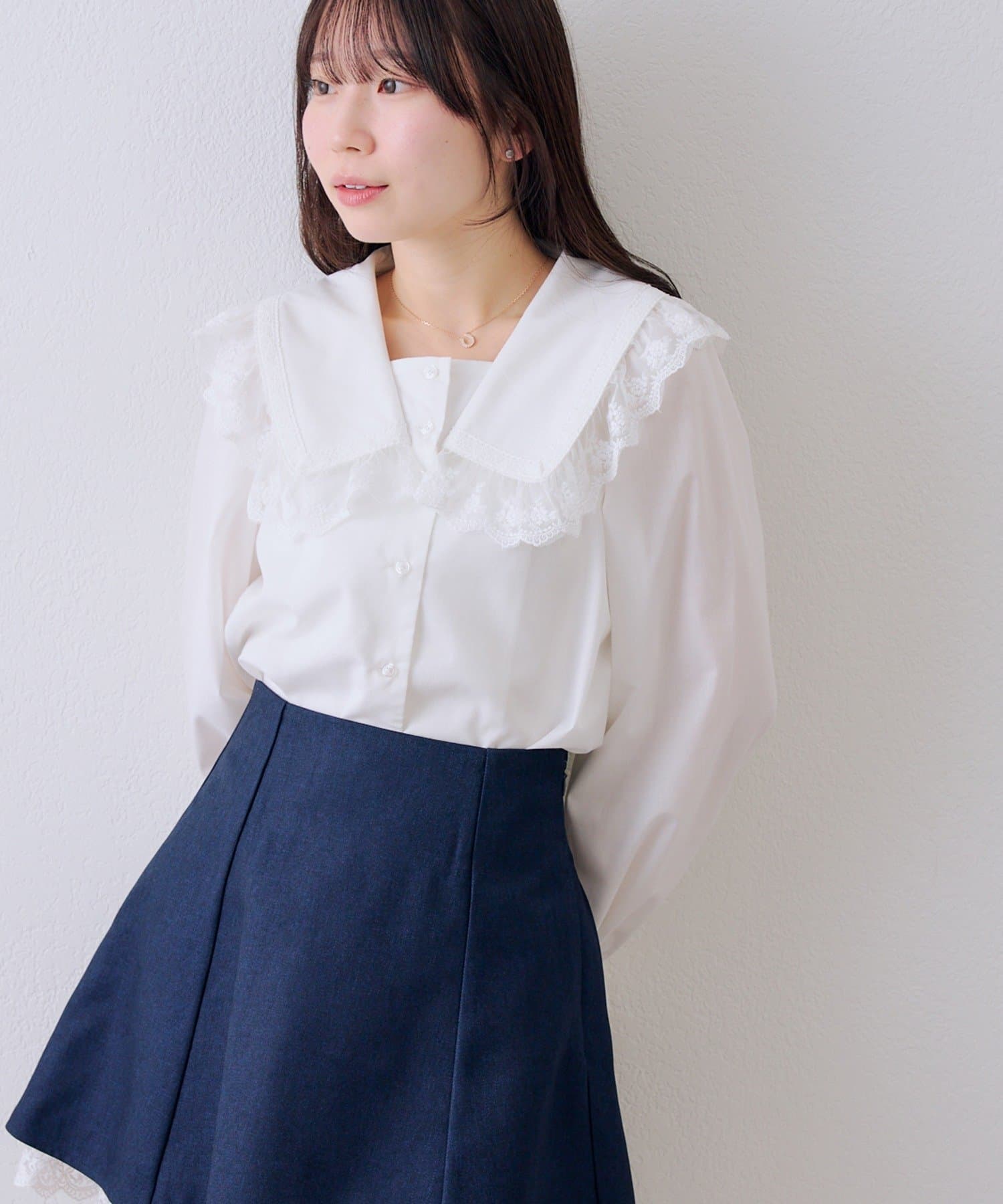 ・レースのビッグ襟が可愛い万能フリルブラウス