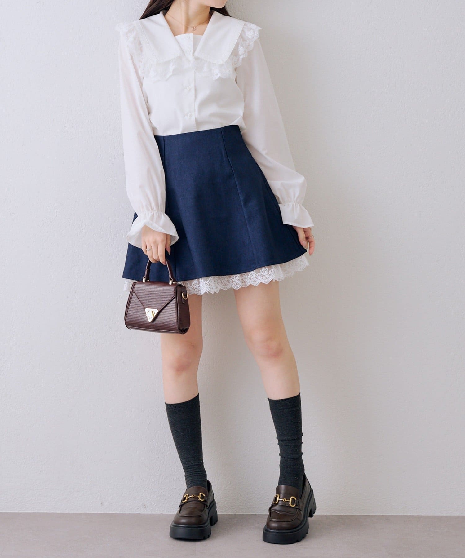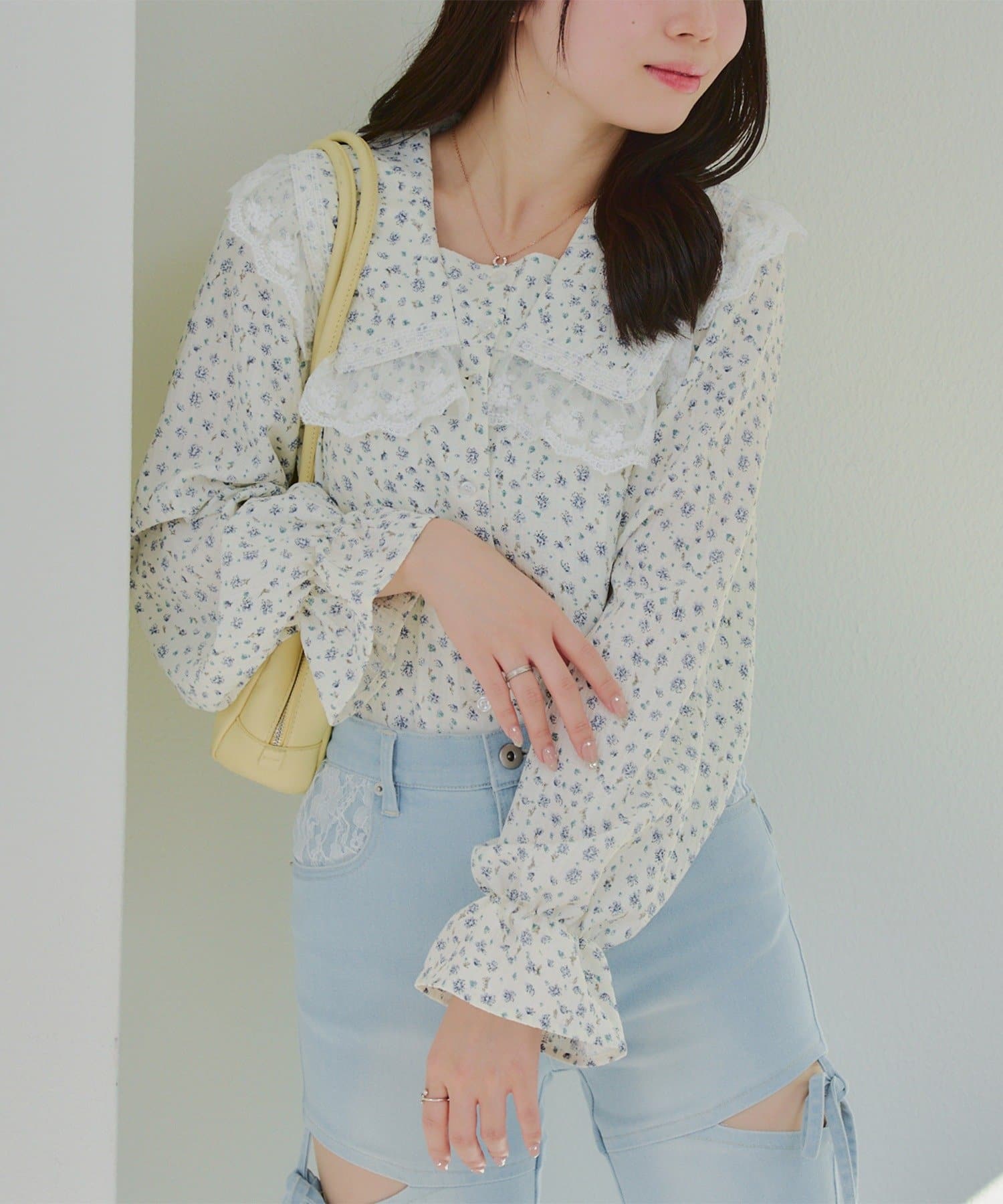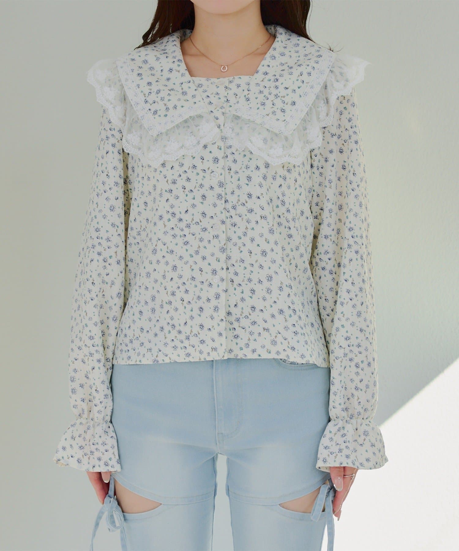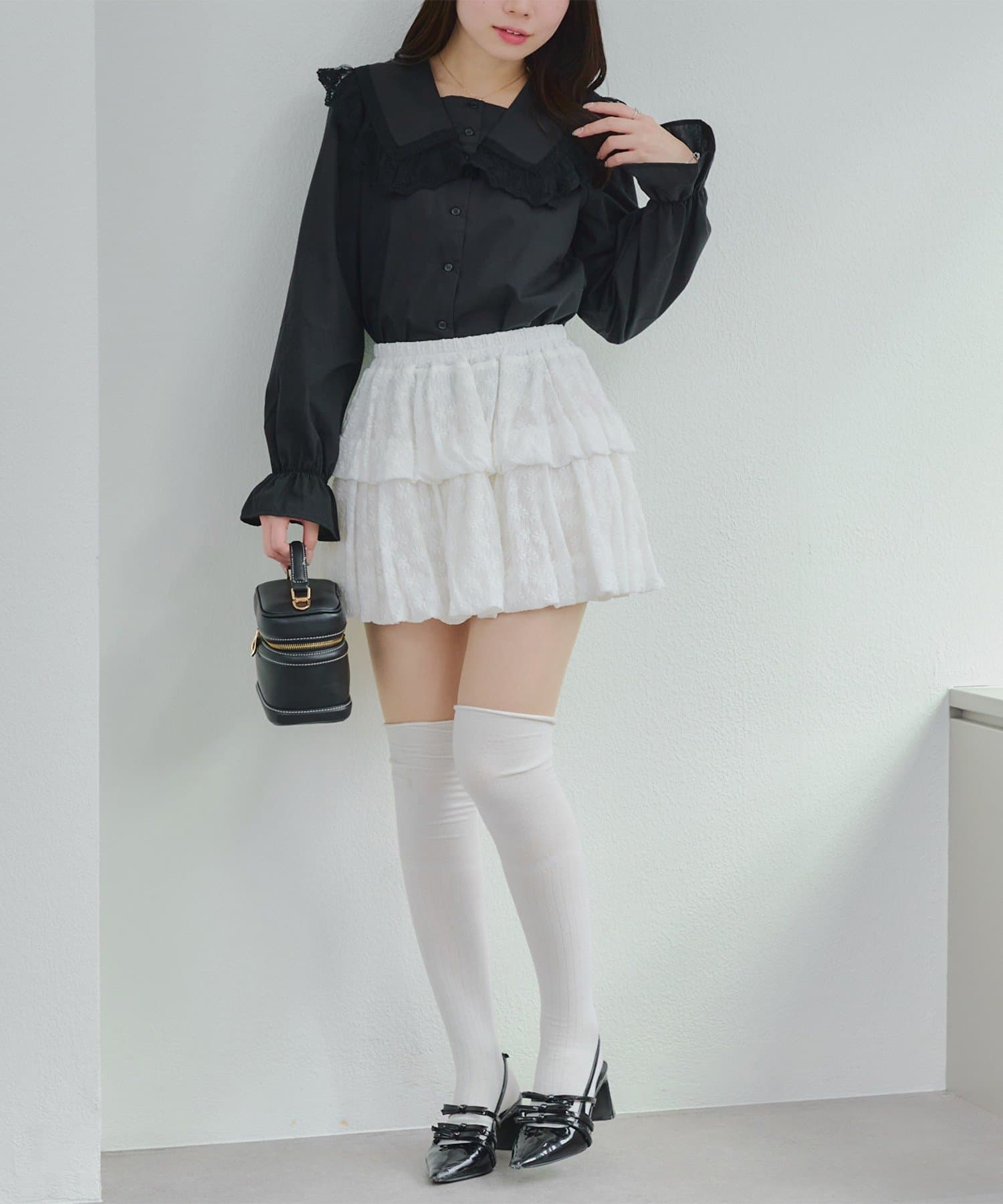 ・レースのビッグ襟が可愛い万能フリルブラウス