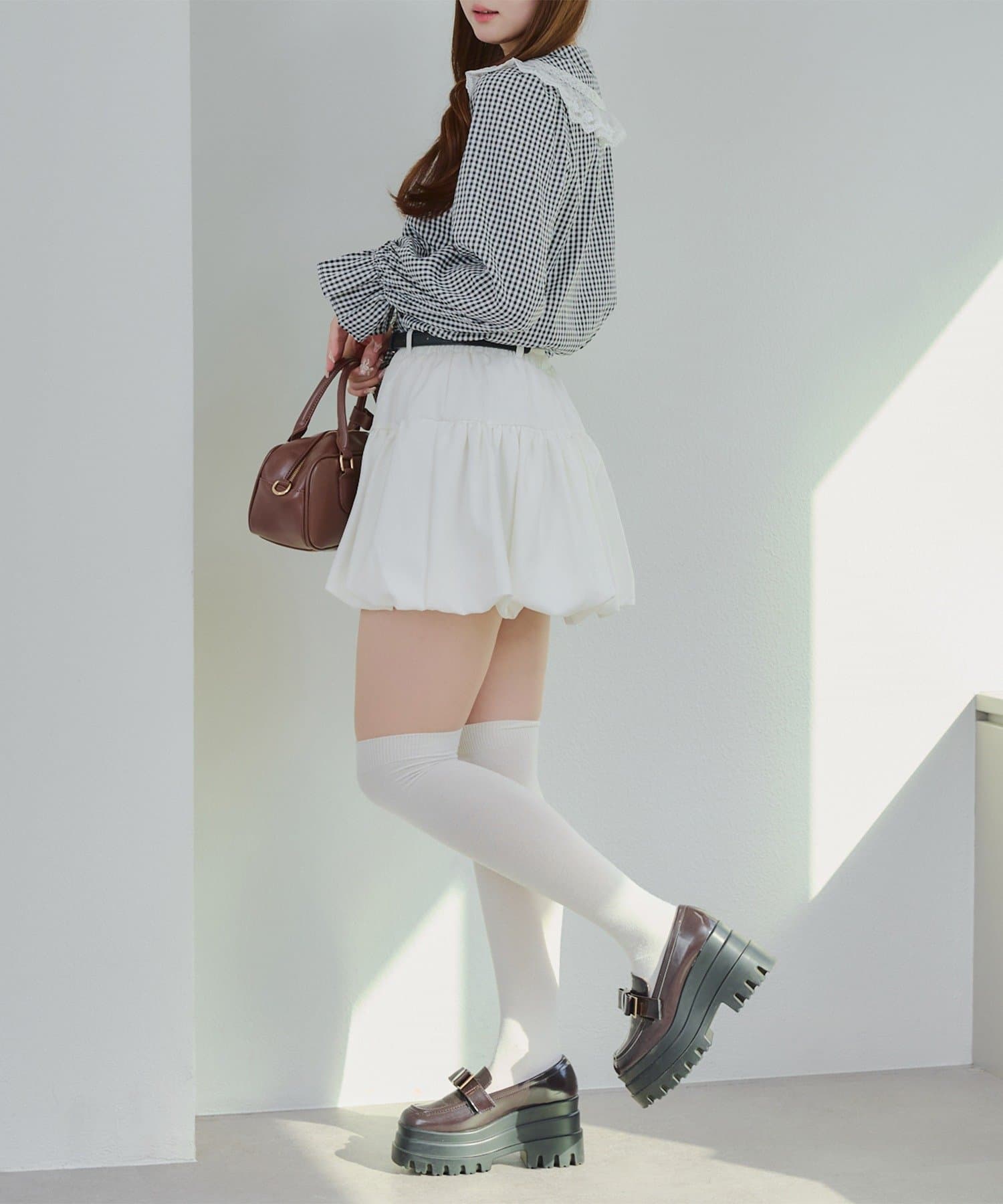 ・バルーンやティアードのミニスカートでとことんガーリーに着こなすのも◎