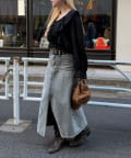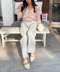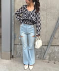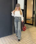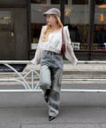 ・デニムパンツと合わせて、リラックス感のある大人カジュアルスタイルに。足元はスニーカーで軽快に