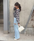 ・フレアスカートと合わせて、フェミニンに。アクセサリーは華奢なものを選んで上品なスタイリングを