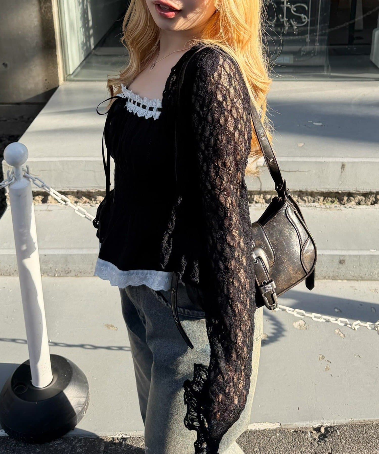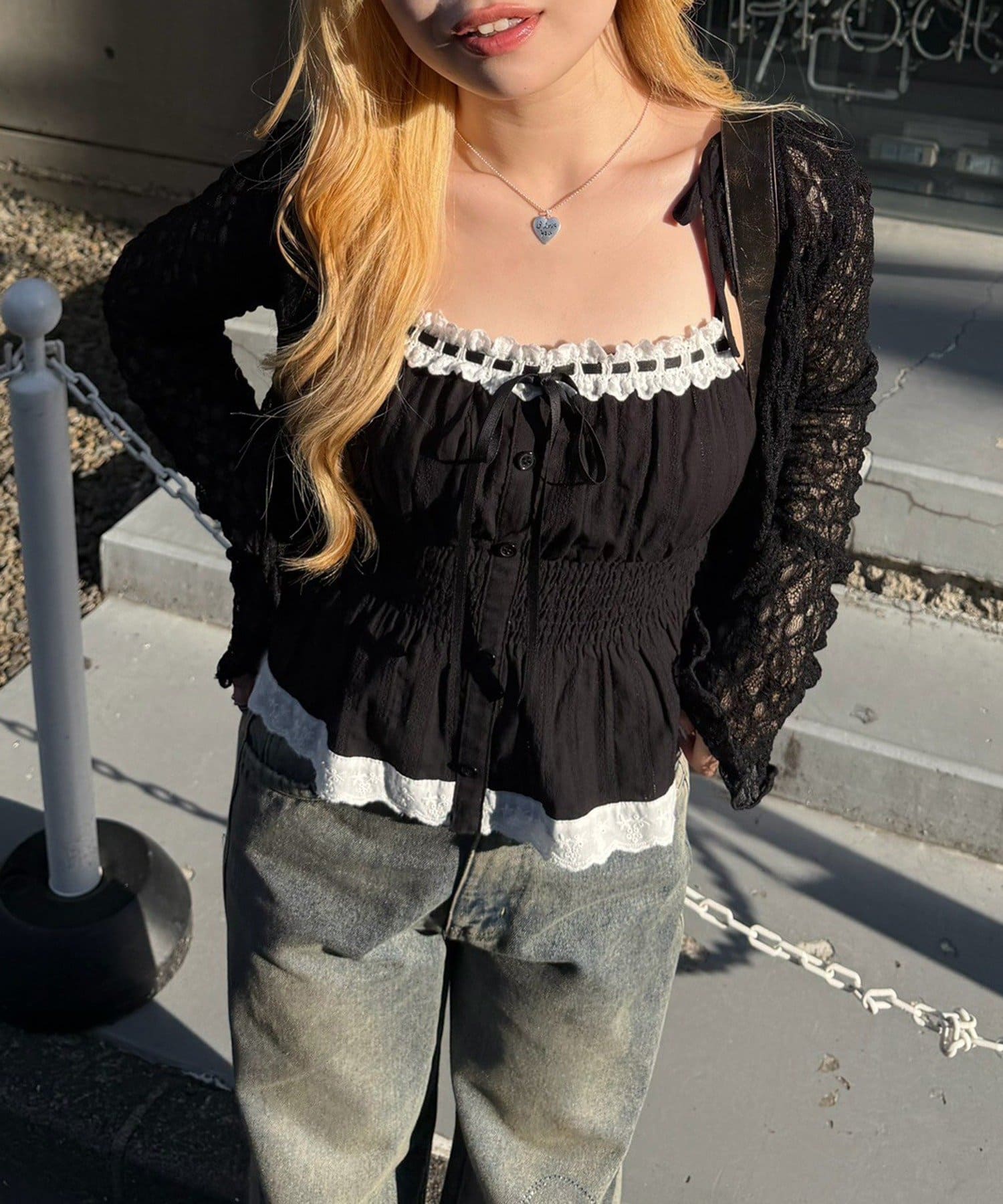 ・カジュアルなデニムやスカートと合わせて、甘辛ミックススタイルを楽しんで