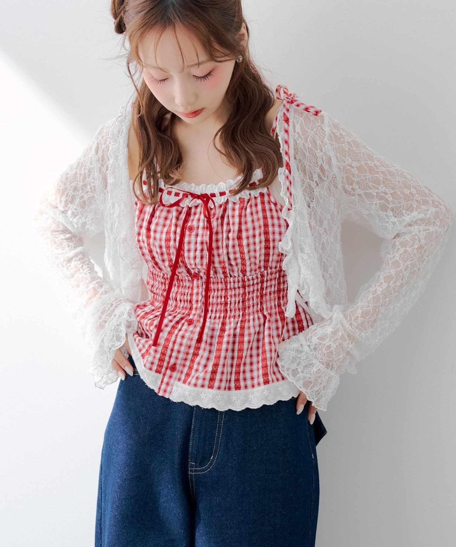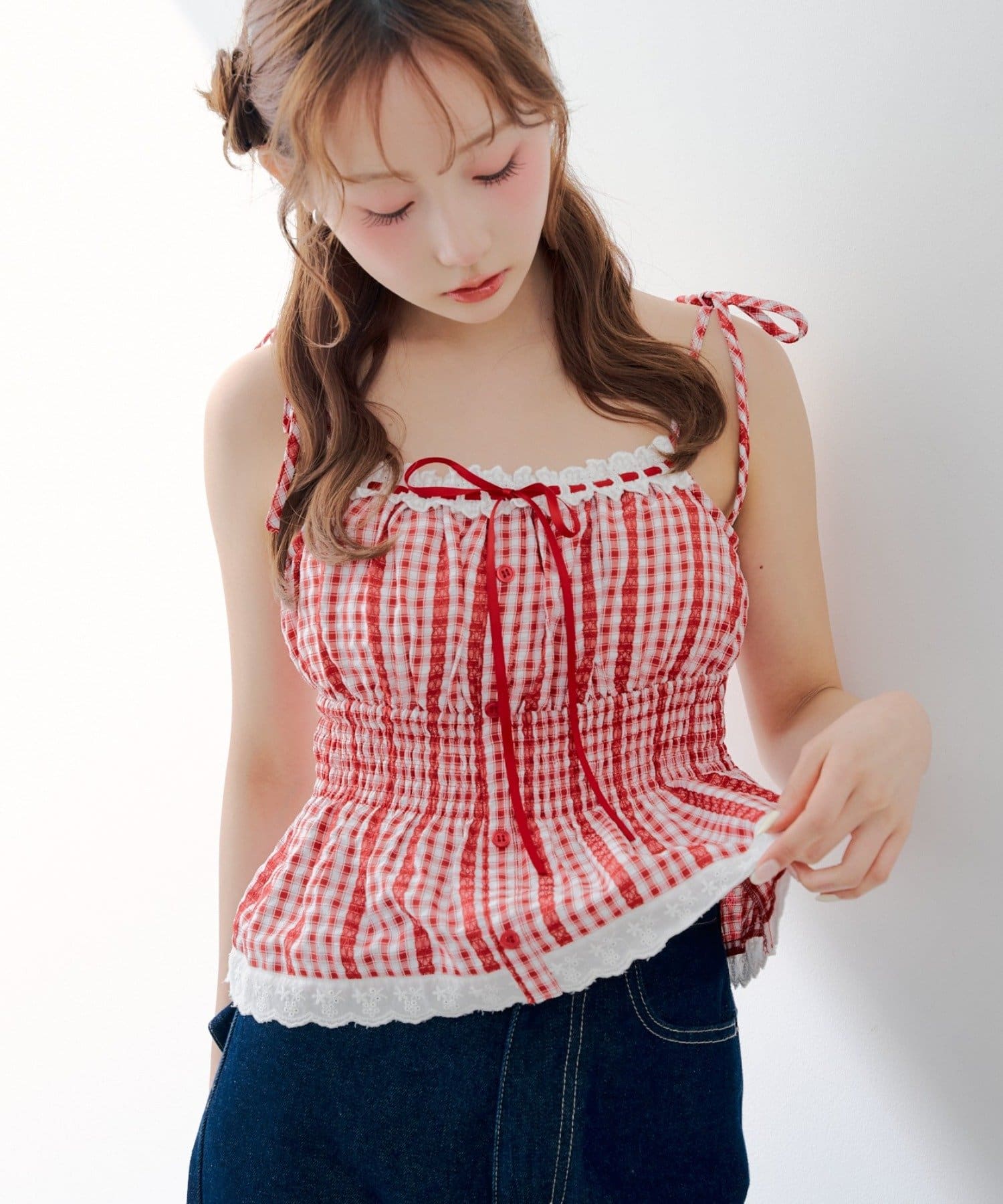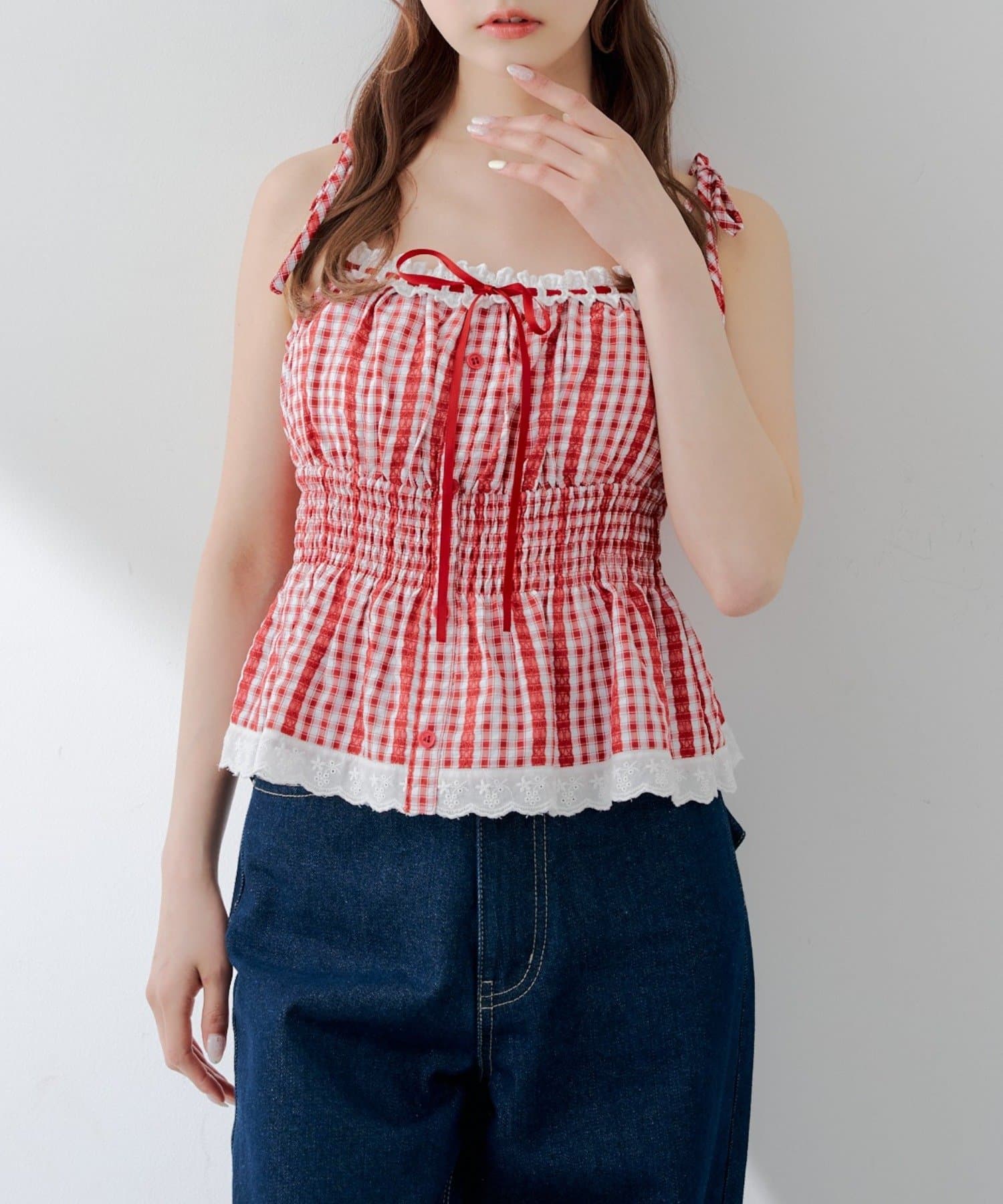 【continuer】【1枚で着映え♡】肩リボンキャミブラウス