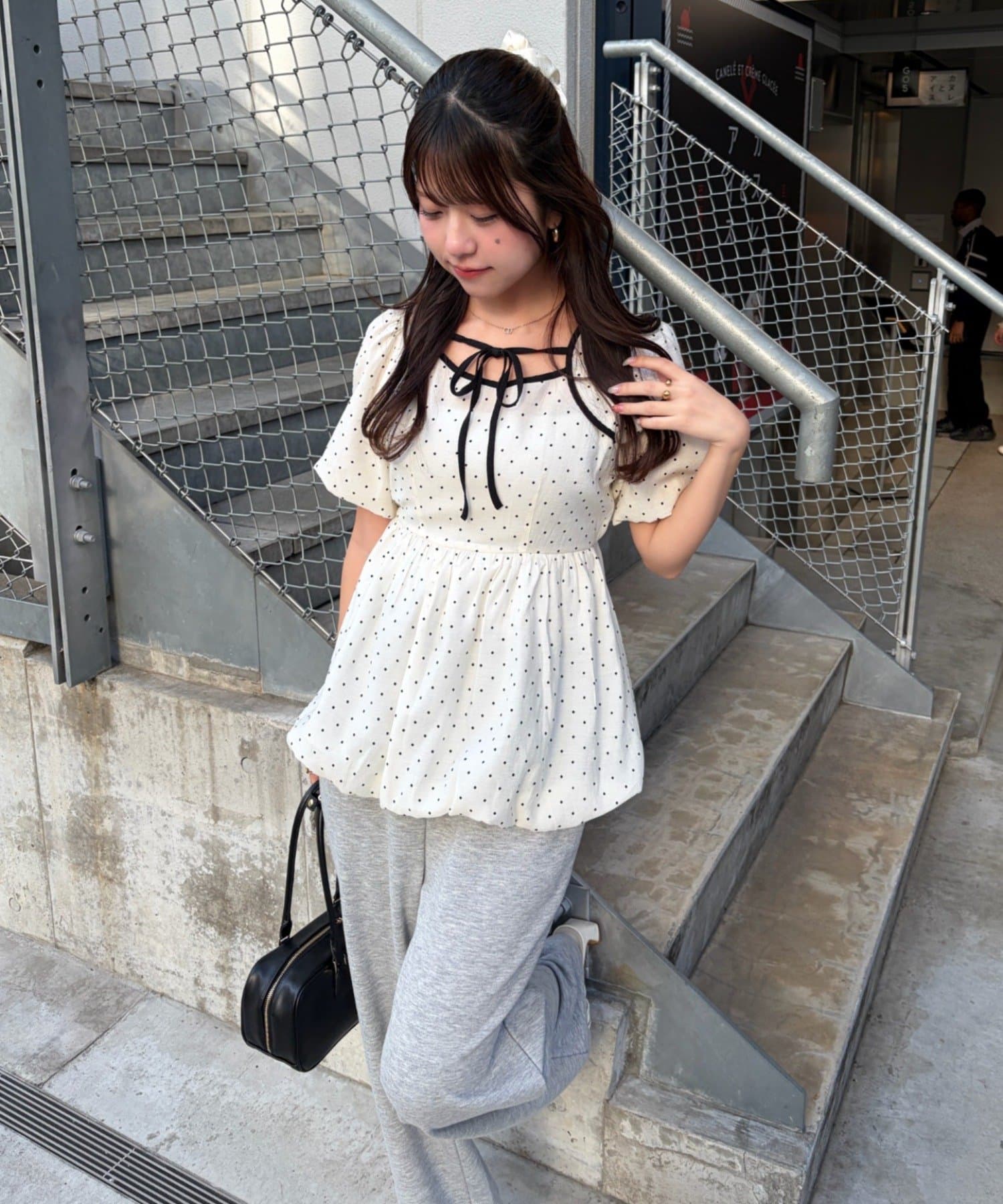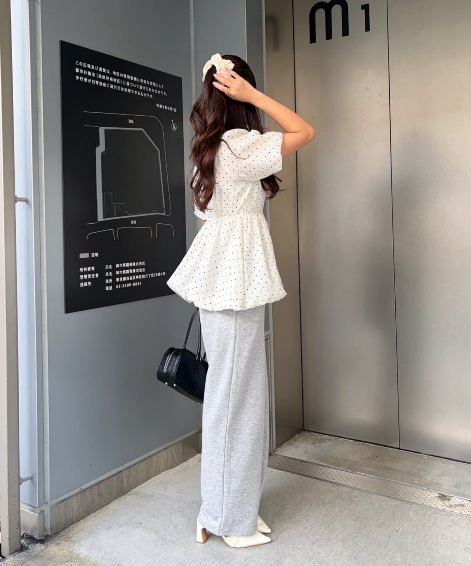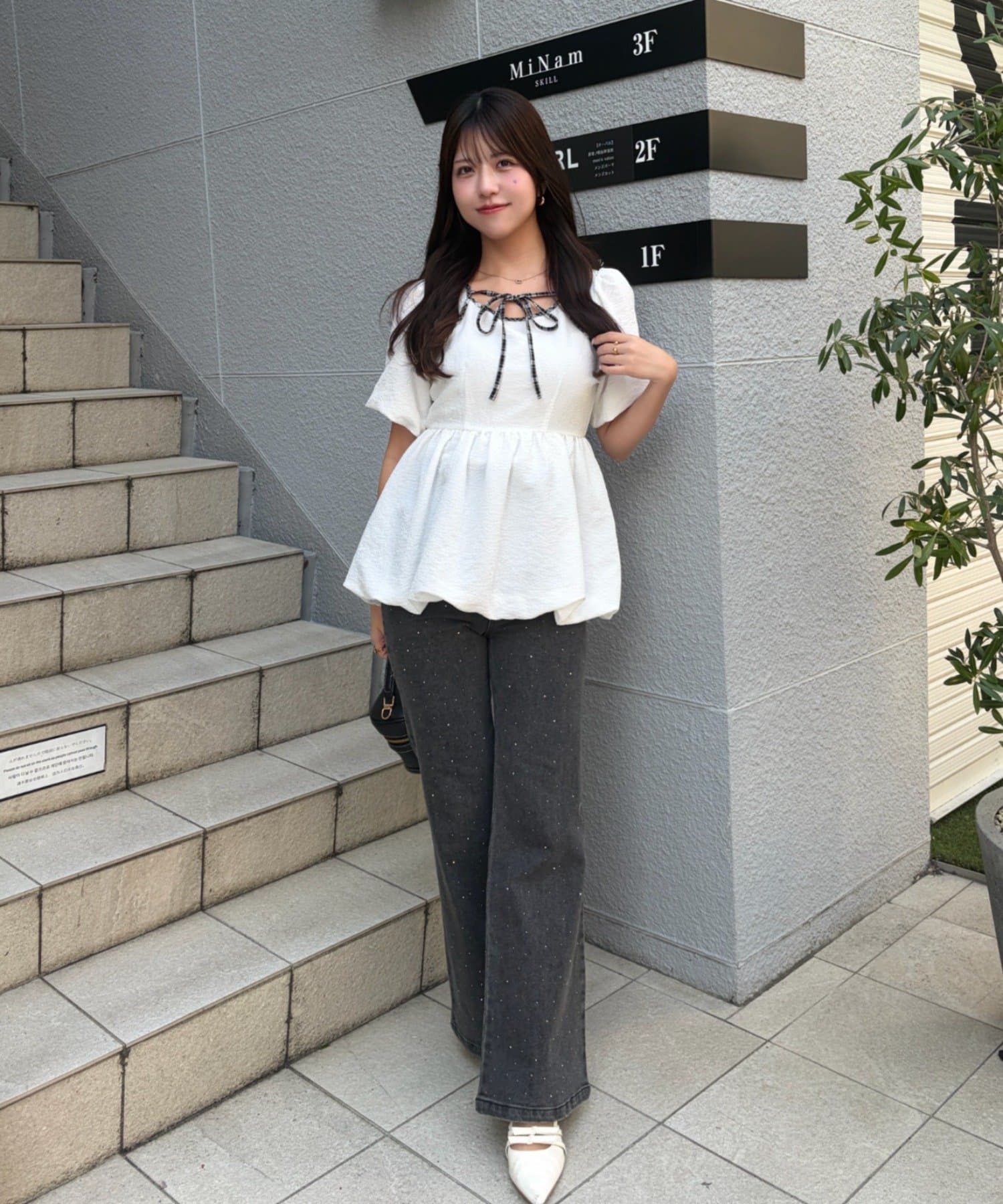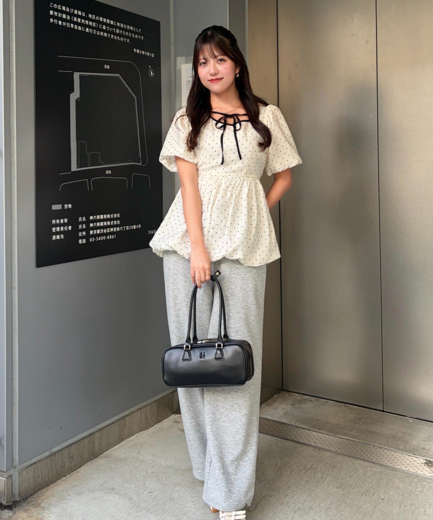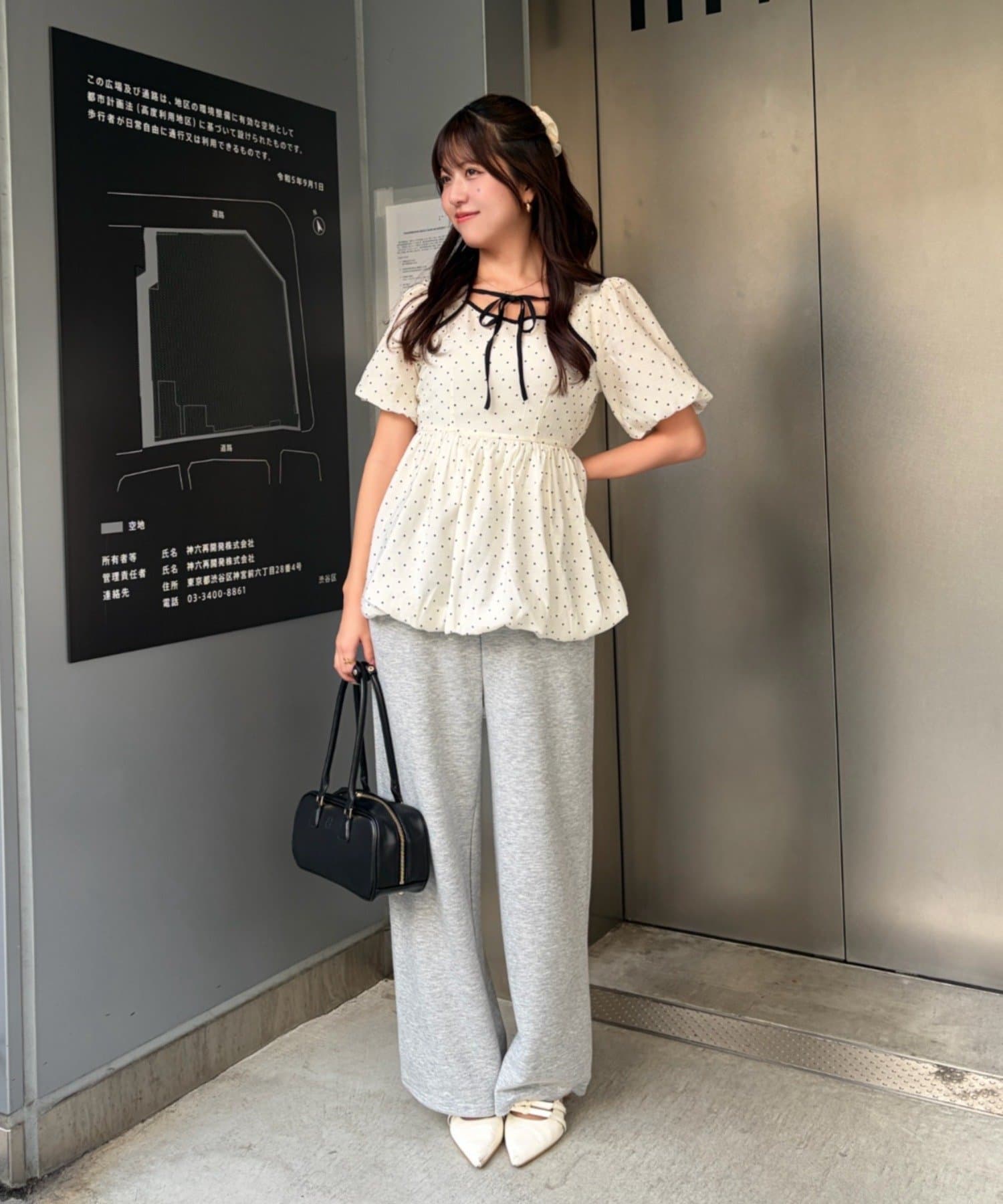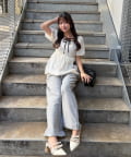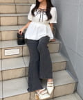 ・キレイめ×可愛い印象にしてくれるデザインなので、スウェットパンツやフレアデニムと合わせてカジュアルダウンさせるとこなれ感アップ!