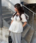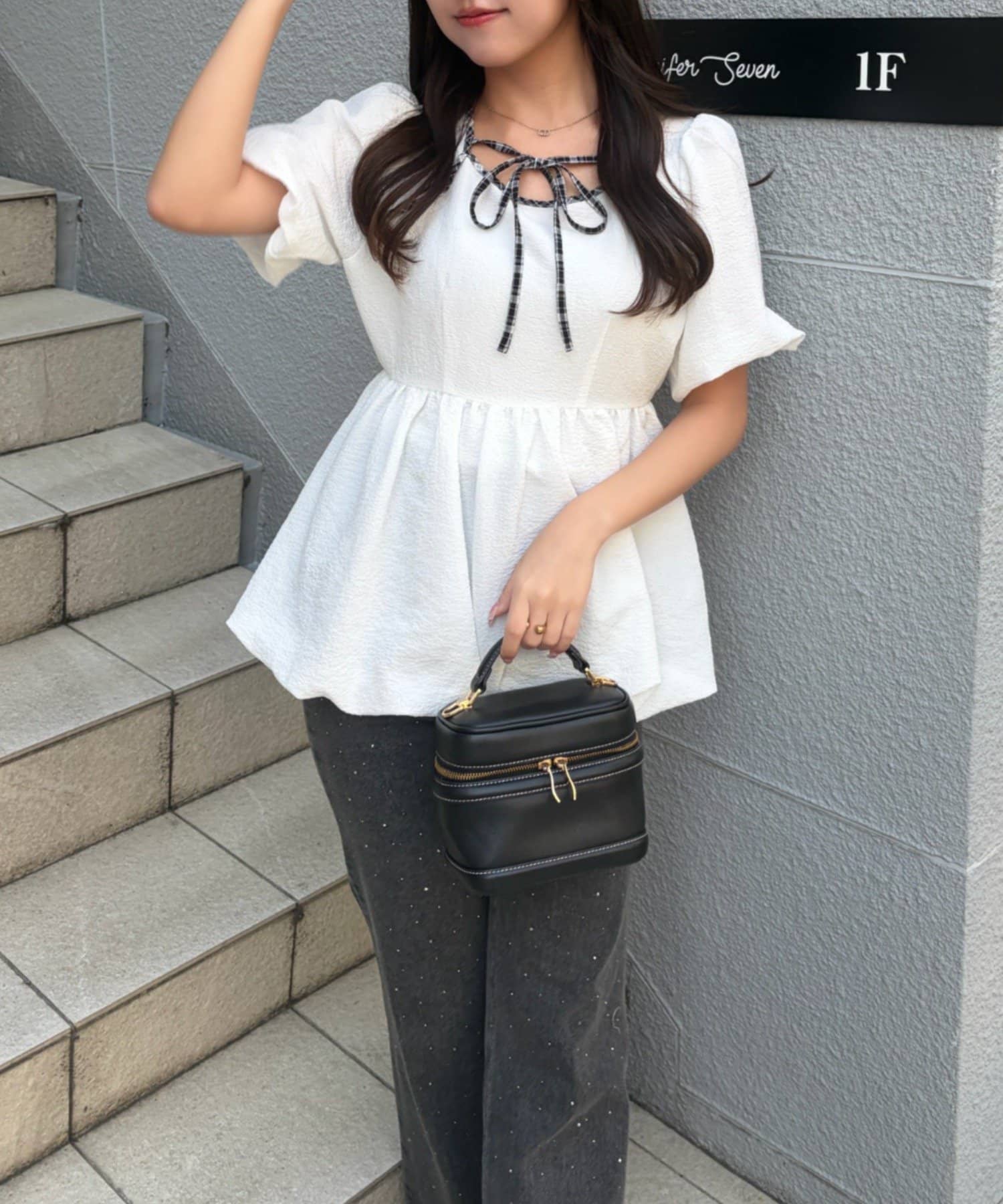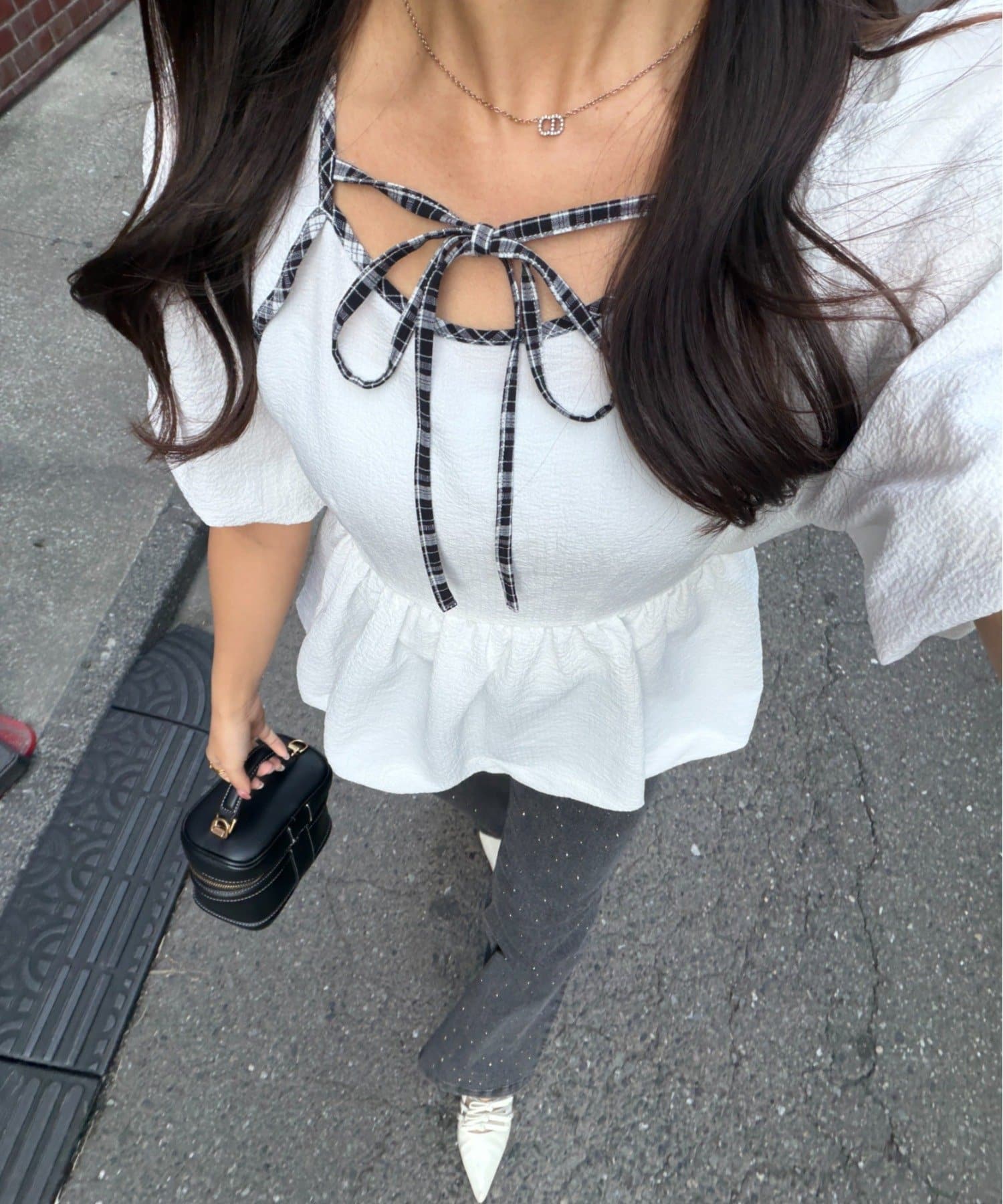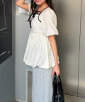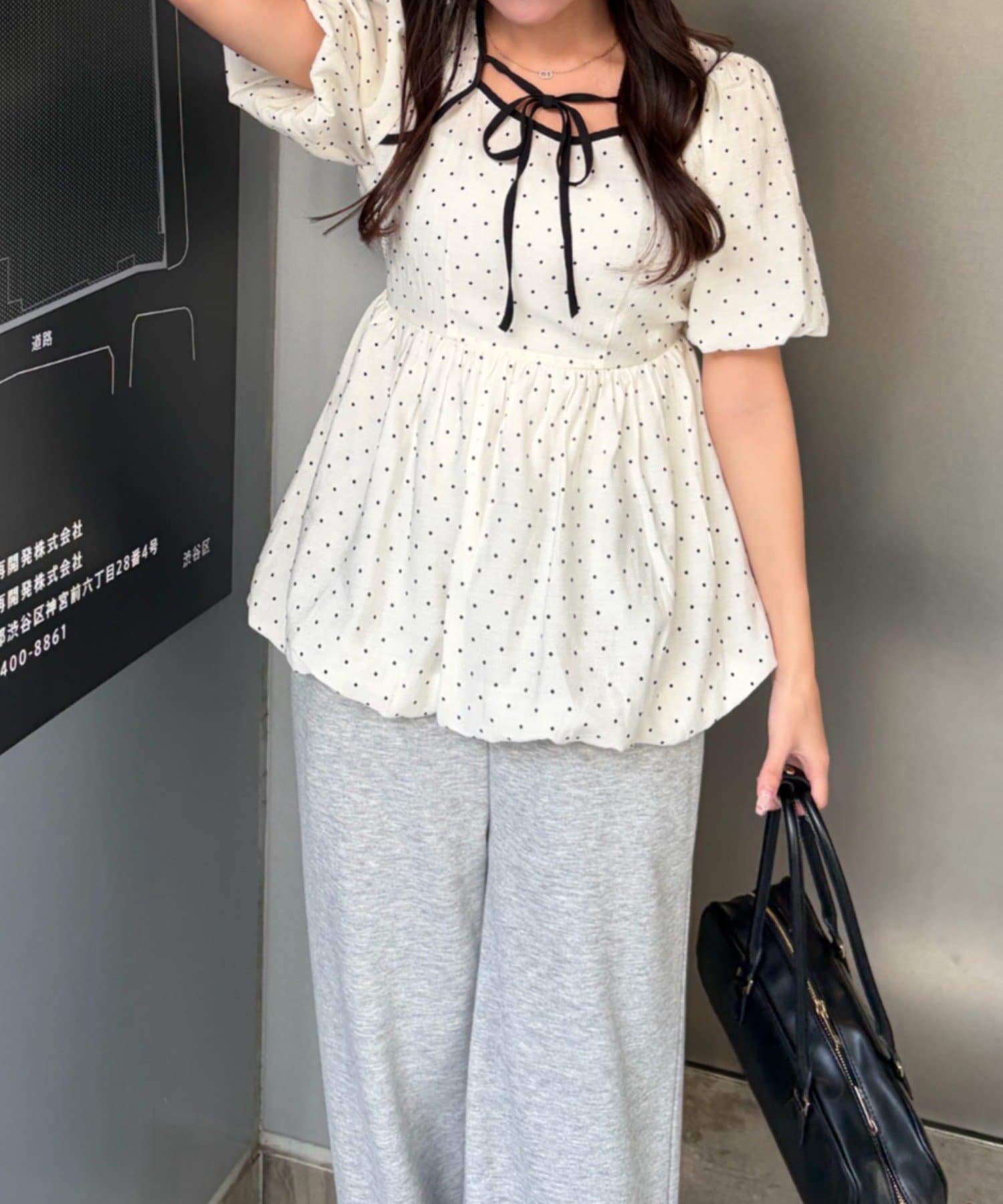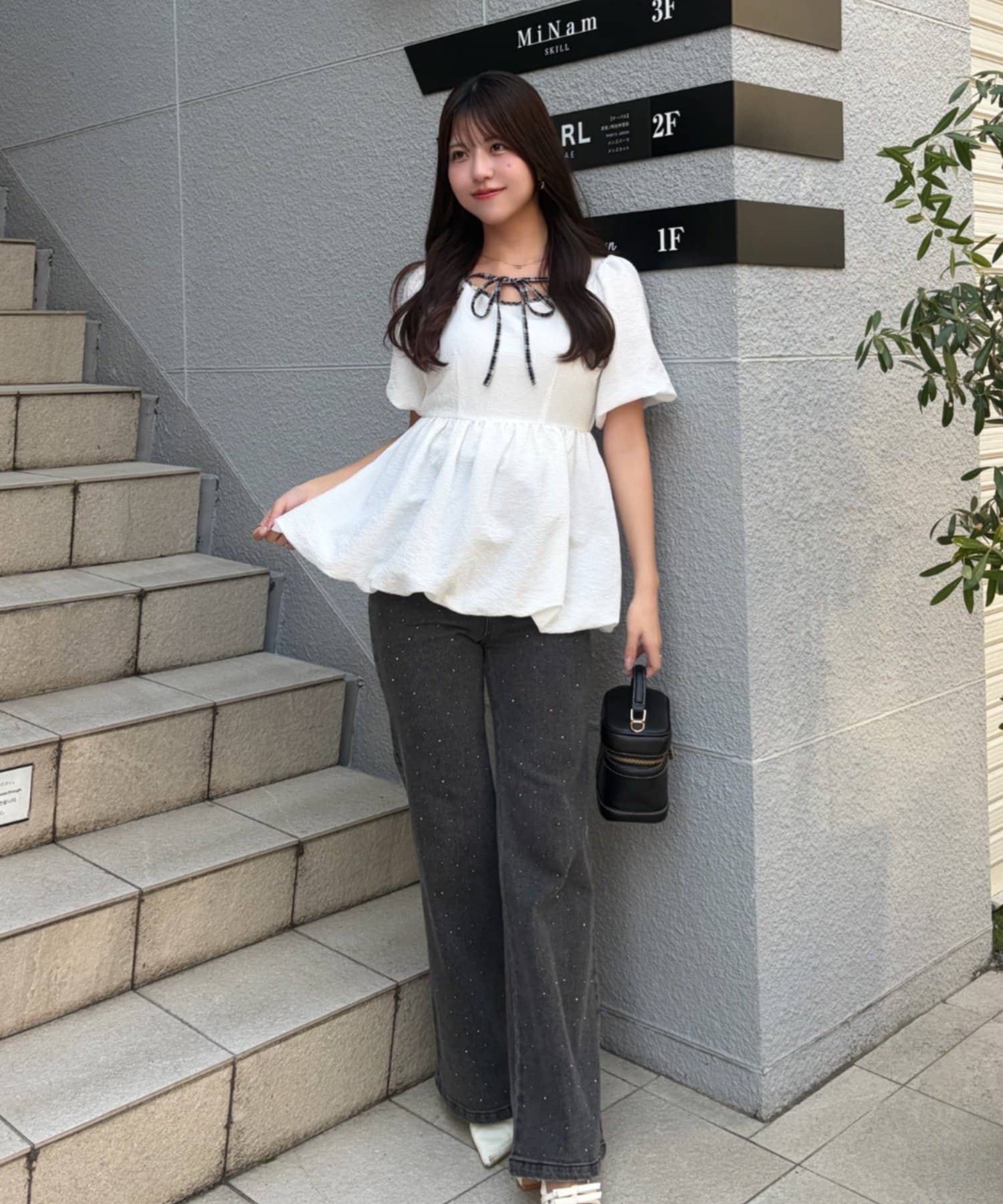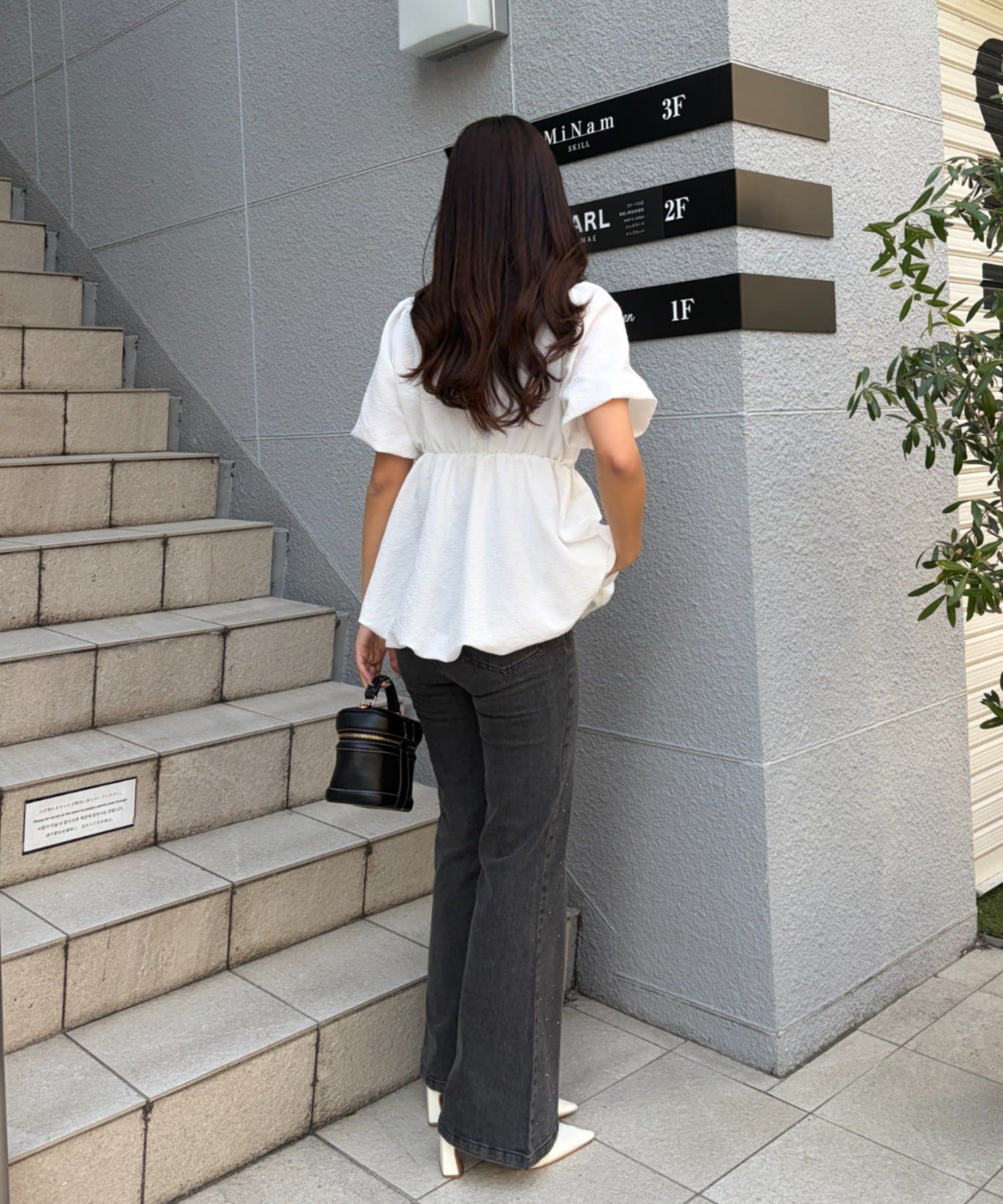 ・キレイめ×可愛い印象にしてくれるデザインなので、スウェットパンツやフレアデニムと合わせてカジュアルダウンさせるとこなれ感アップ!