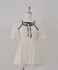 ・胸元は春らしくスッキリ見えする開き具合ですが、貧相に見えないリボンデザインで写真映えも◎