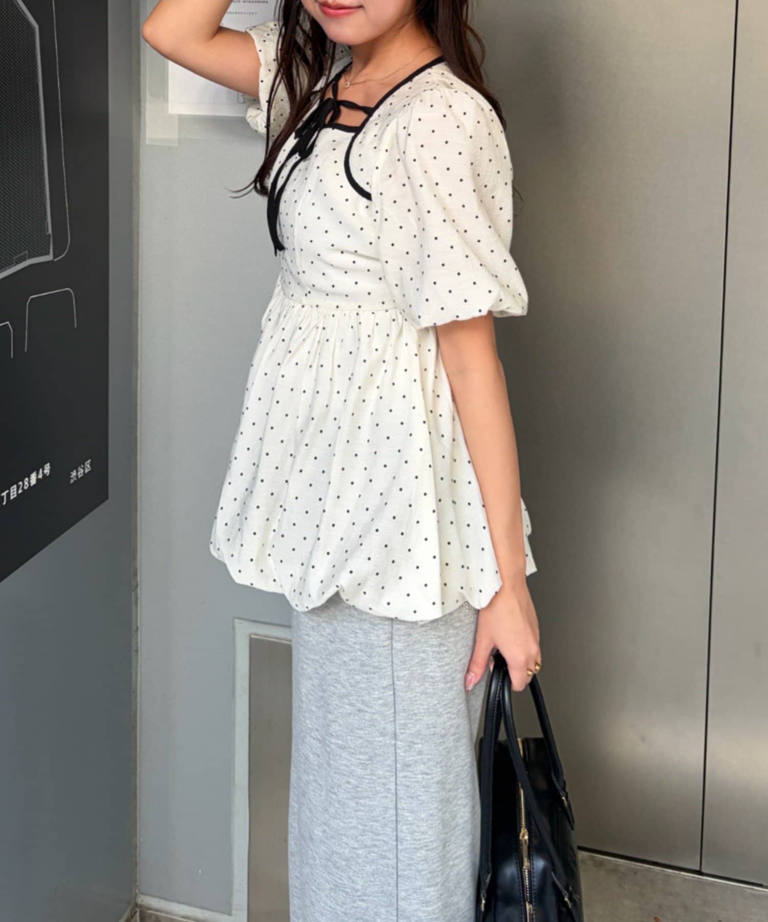 ・胸下の切り返しと裾にかけてふわっと広がるバルーンデザインがさらにスタイルアップして見せてくれます!