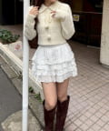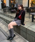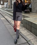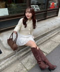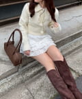・タイトなミニスカートにロングブーツ合わせで王道のモテコーデ♪