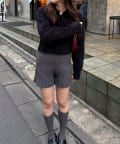 ・ハイウエストボトムで自然と腰位置を高く見せるスタイリングも◎