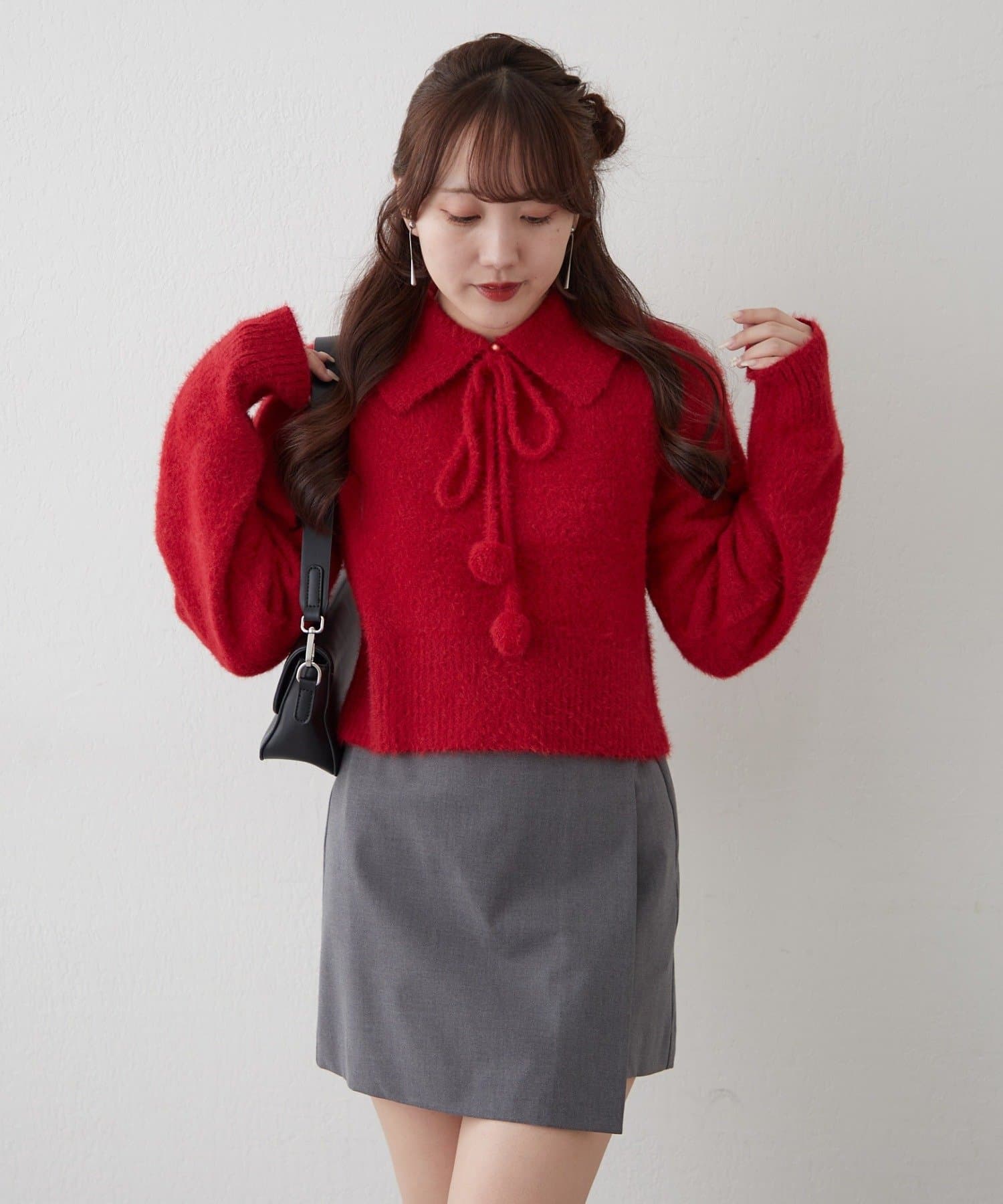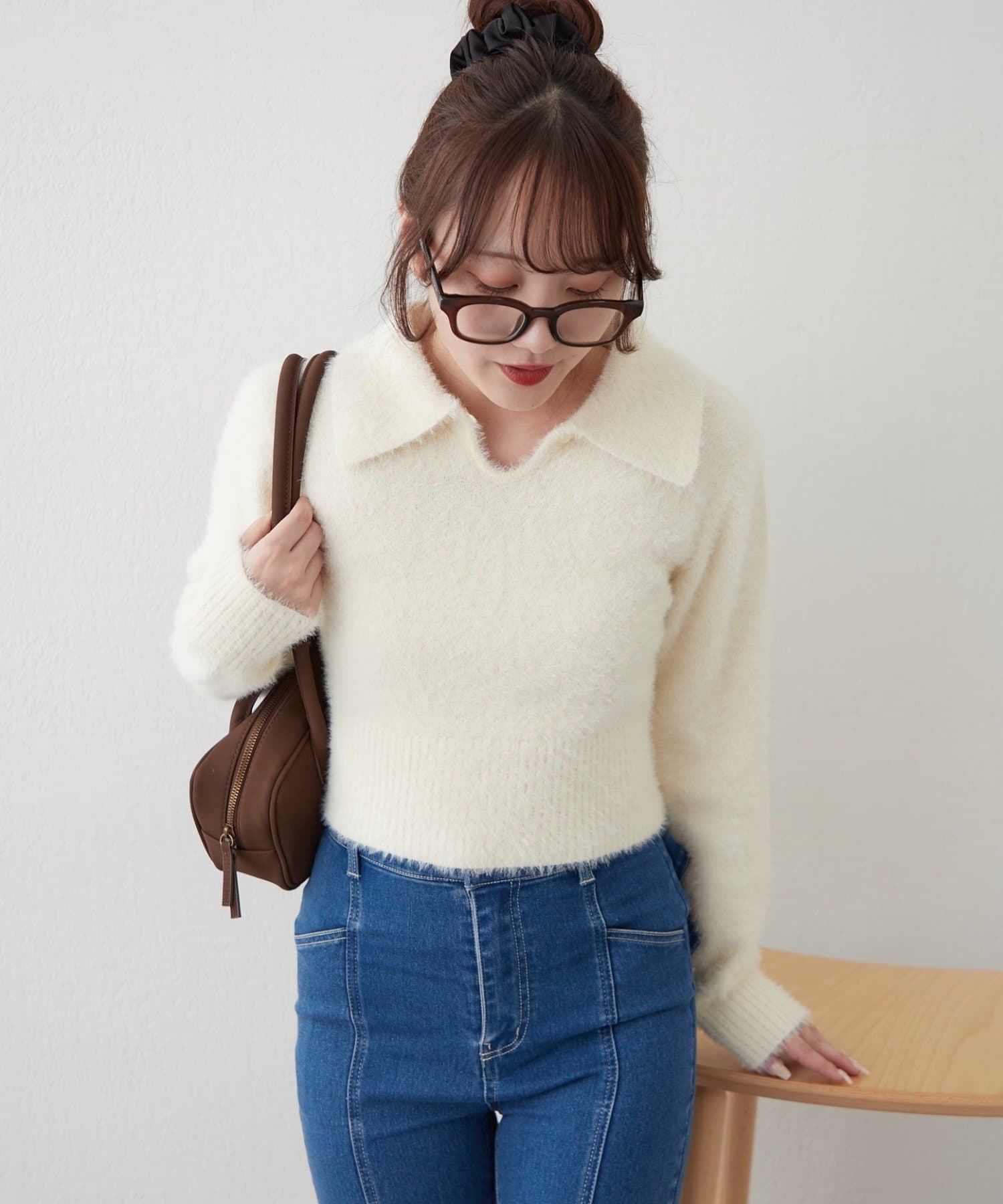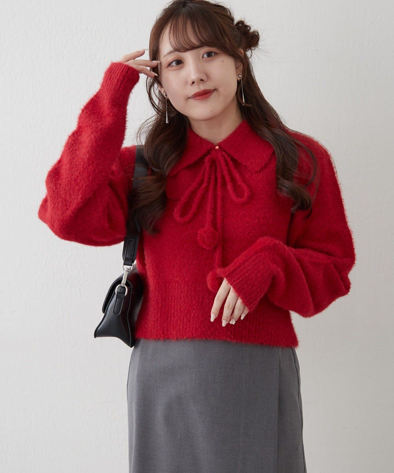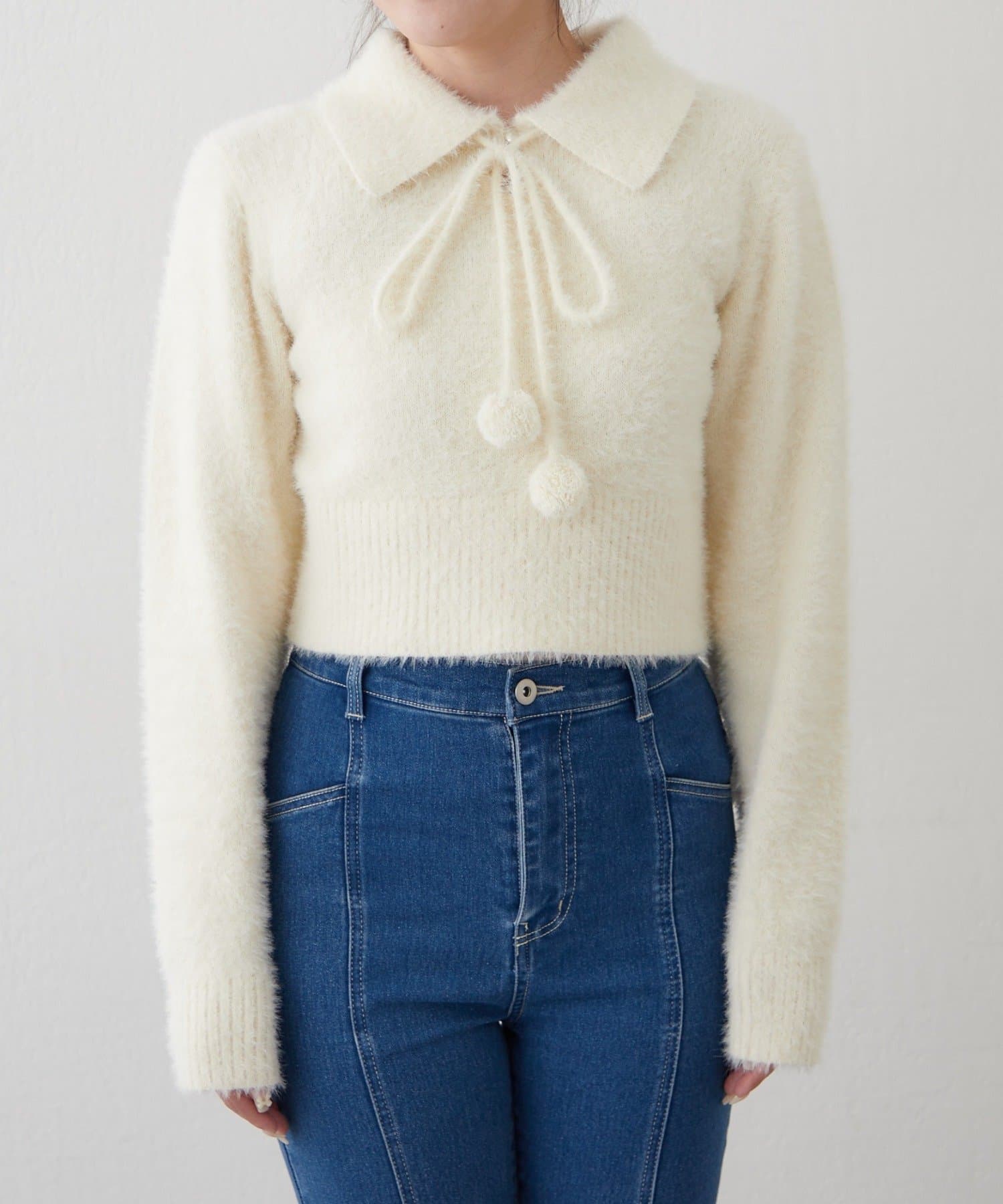 TOP > Remind me and forever > レディース > トップス > ニット/セーター > 【HolidayCollection】フェザーポロニット