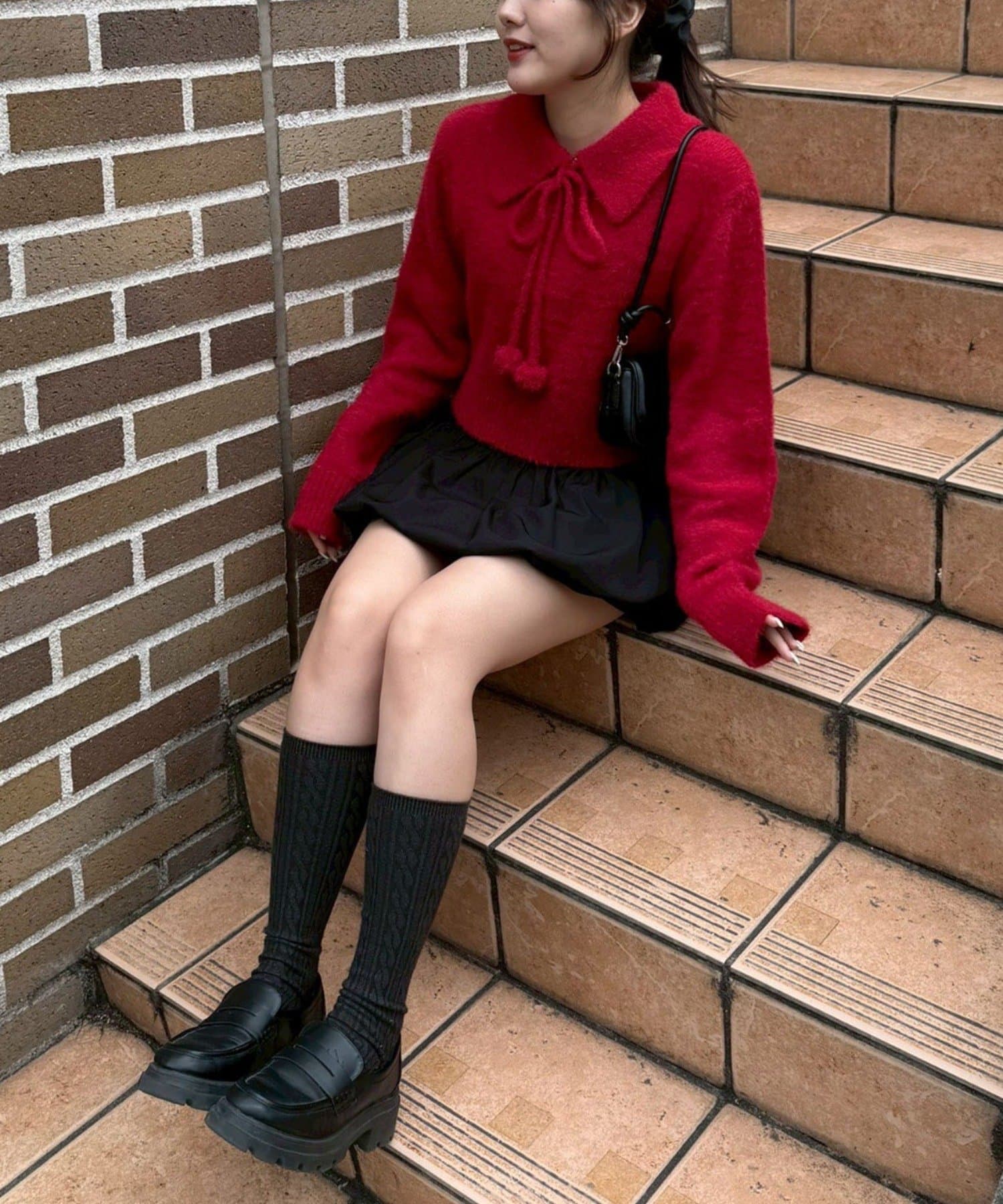 ・ポンポンリボンが可愛い!秋冬大活躍のポロニット♪
