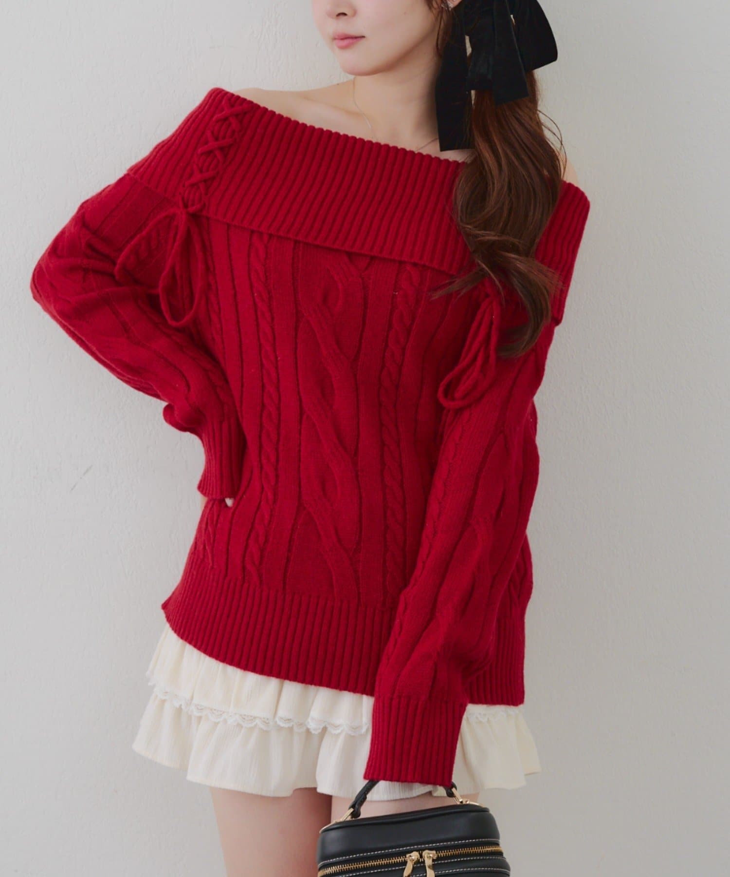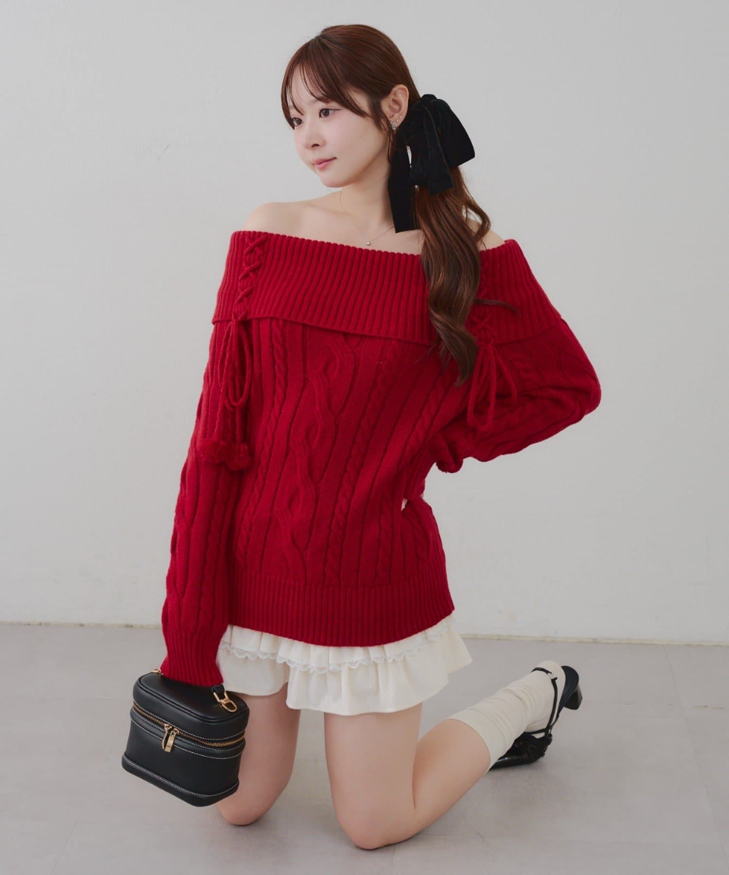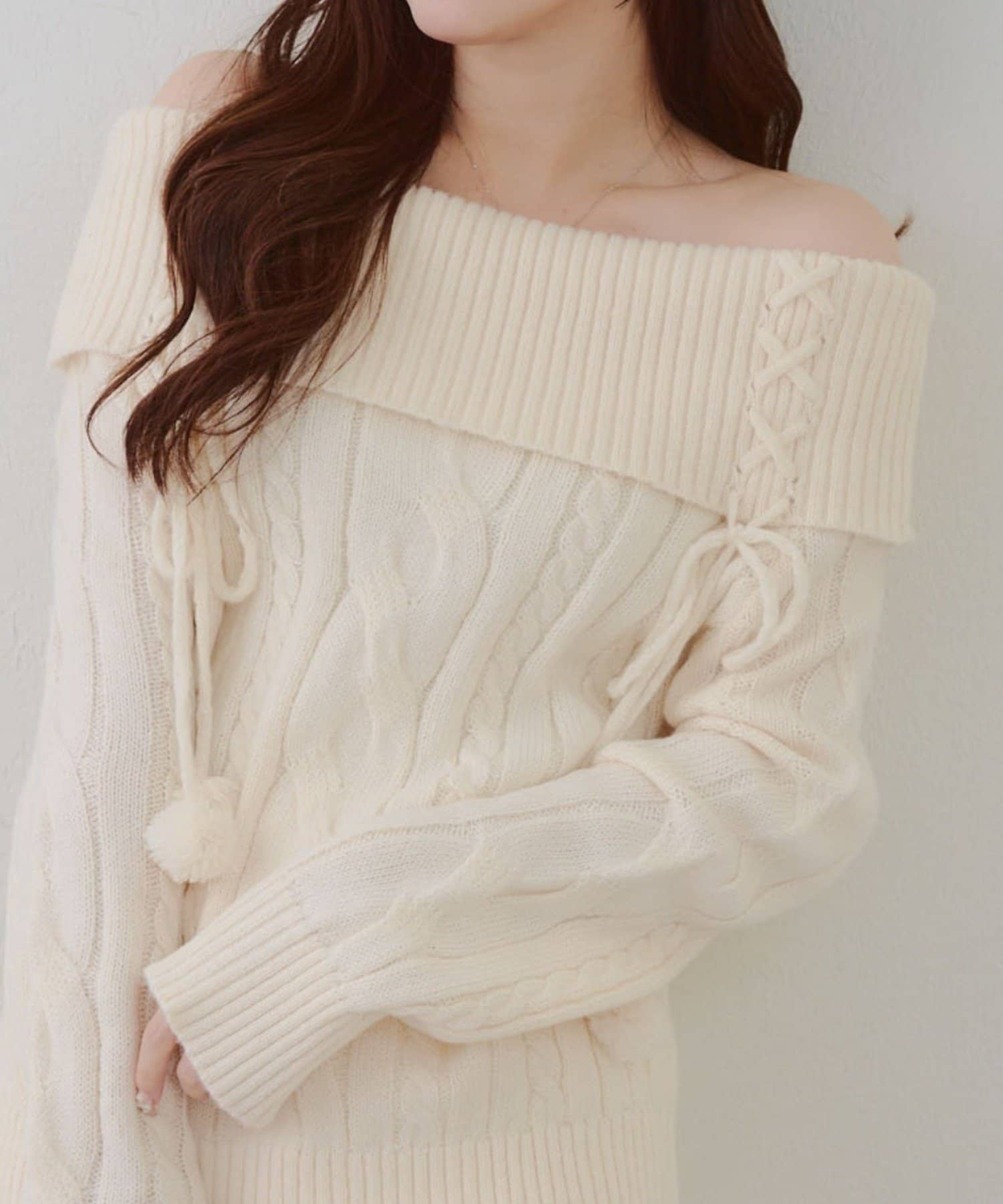 Remind me and forever(リマインドミーアンドフォーエバー) 【HolidayCollection】オフショルケーブルニット