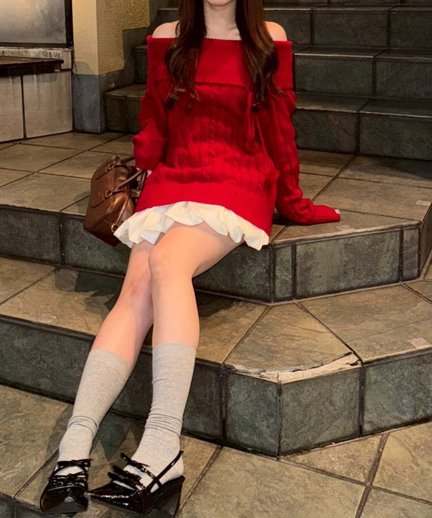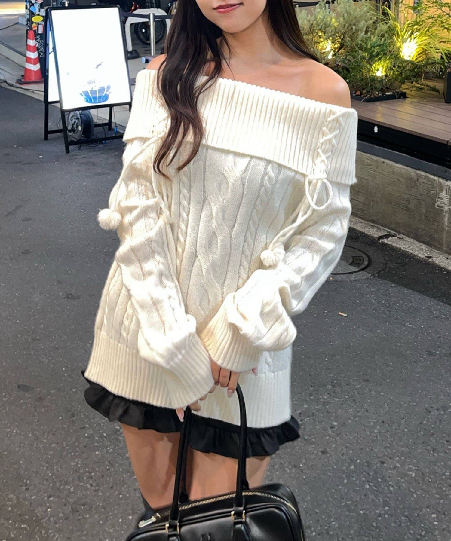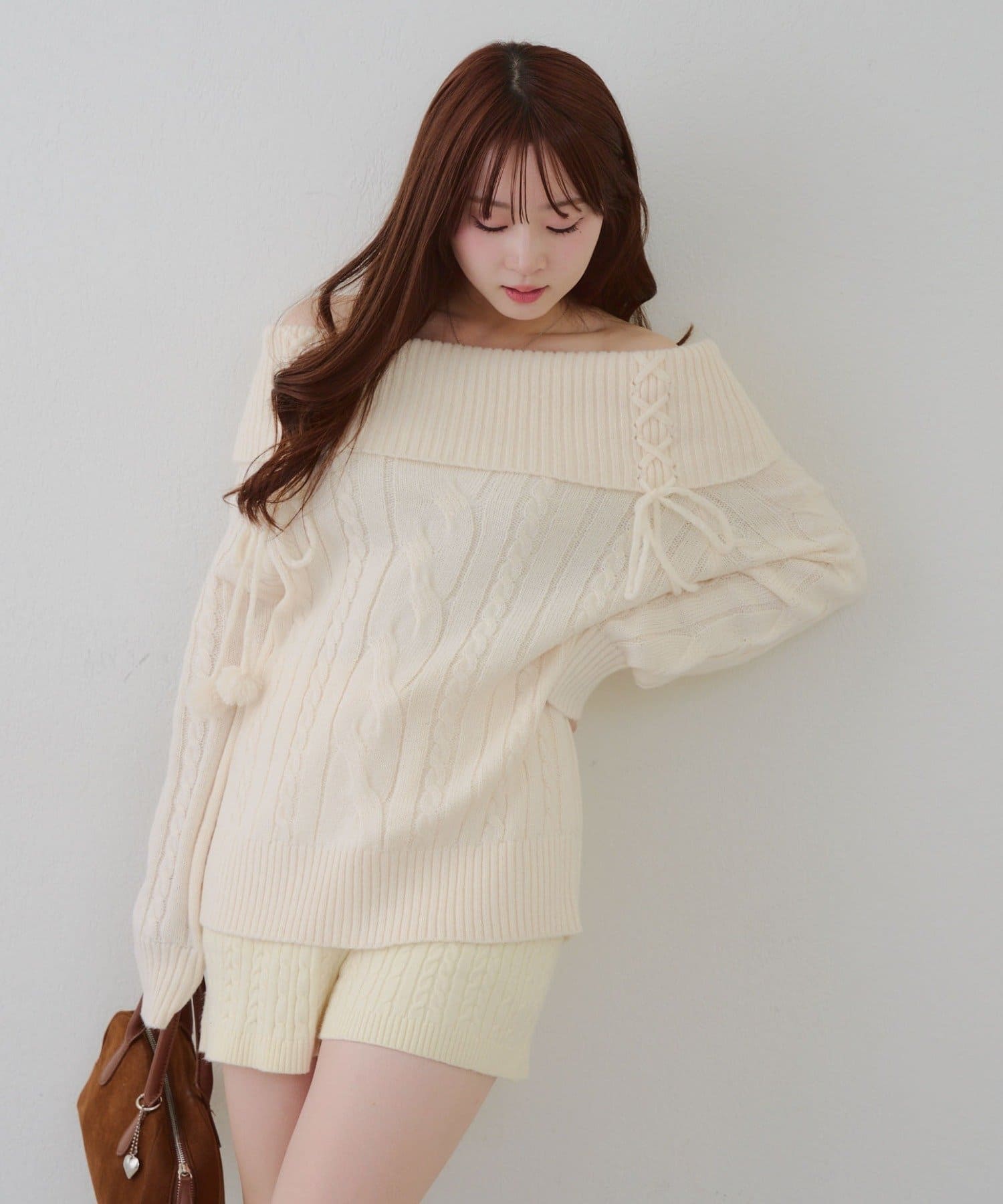 Remind me and forever(リマインドミーアンドフォーエバー) 【HolidayCollection】オフショルケーブルニット