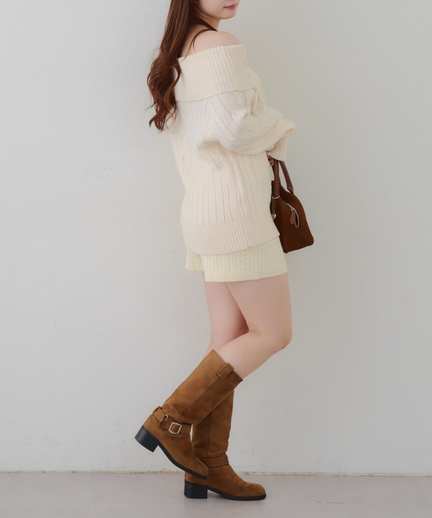 • Remind me and forever(リマインドミーアンドフォーエバー) 【HolidayCollection】オフショルケーブルニット