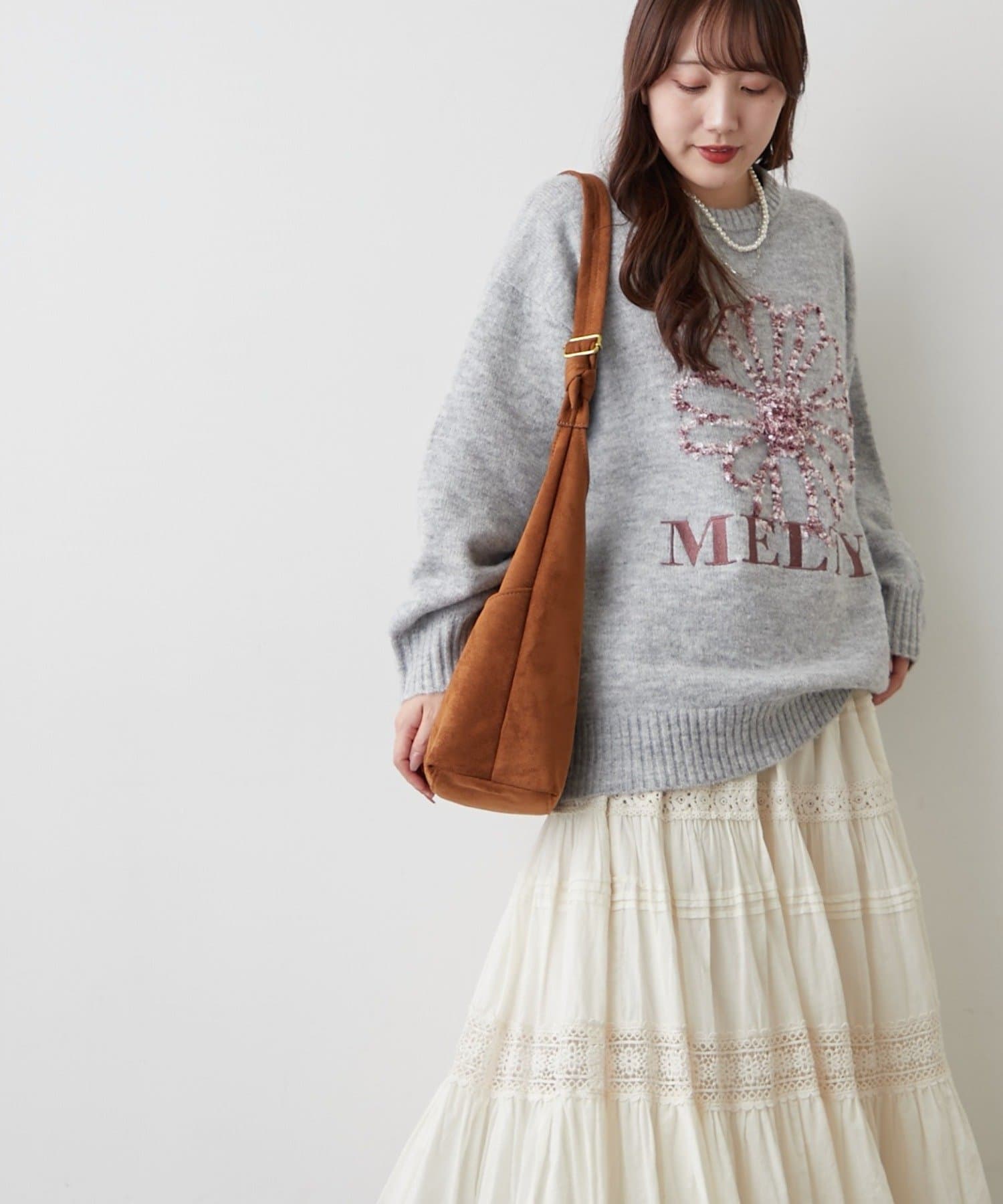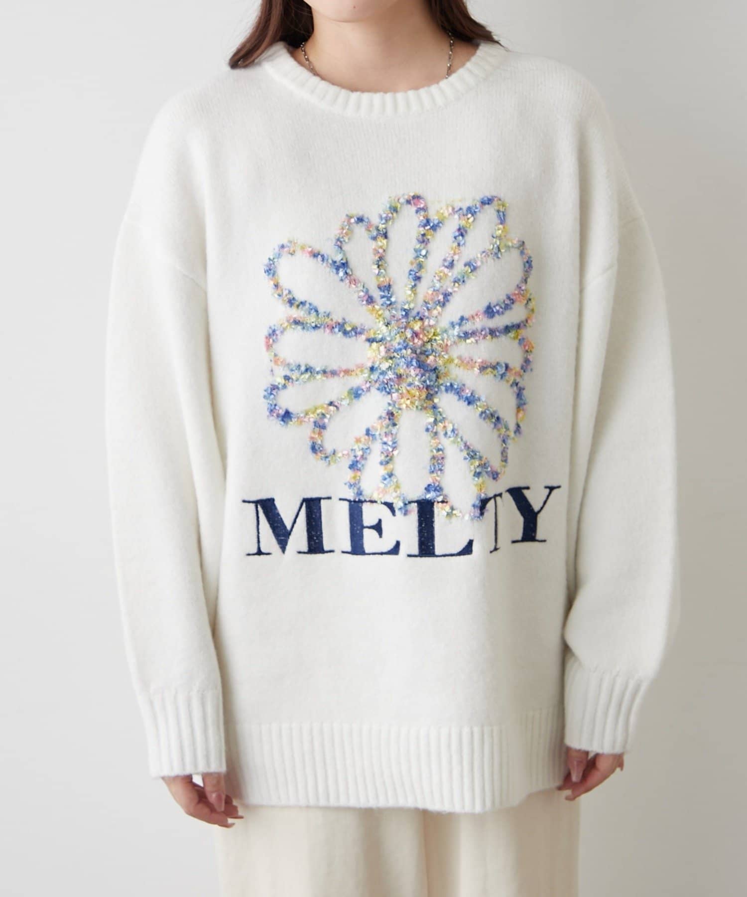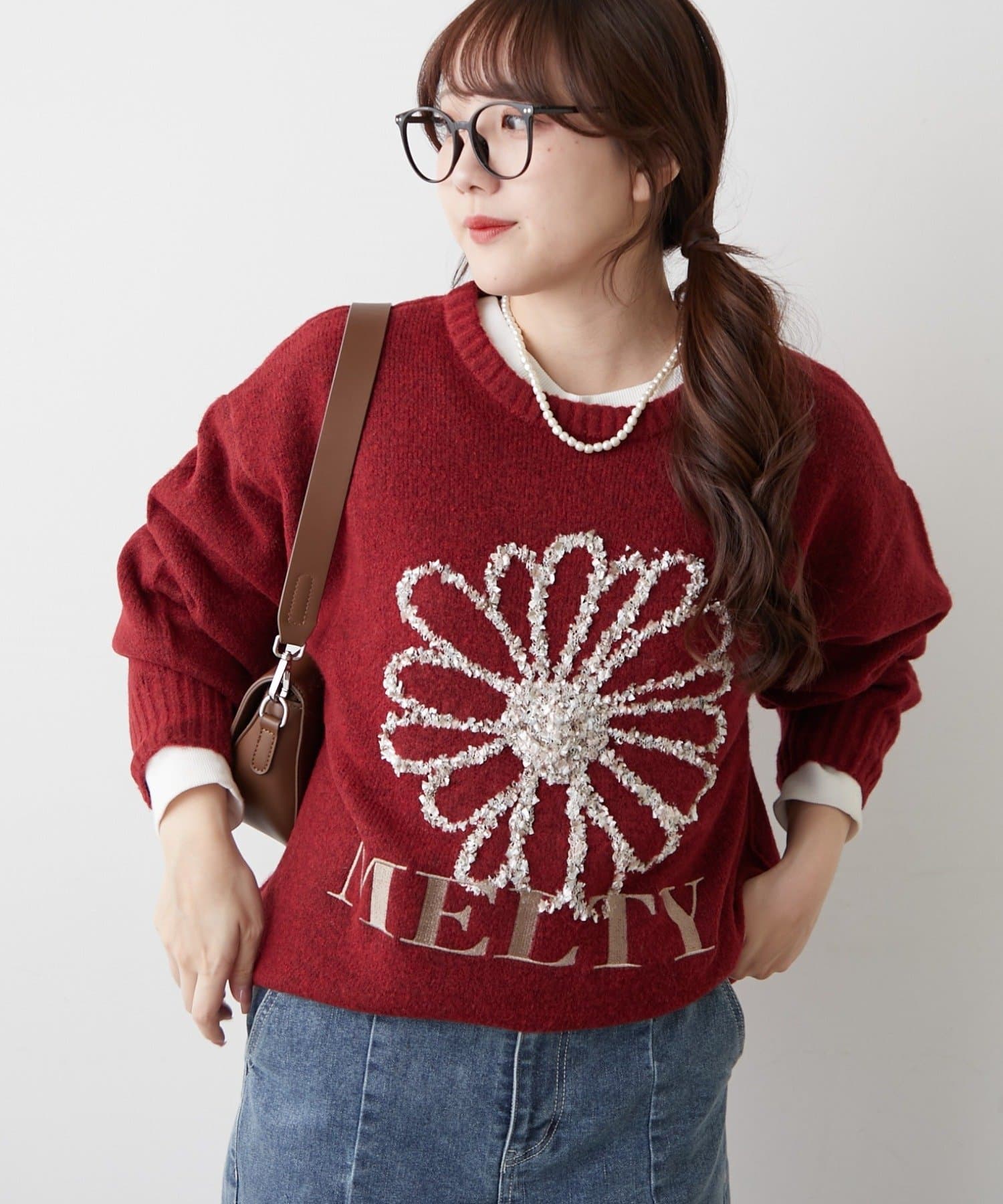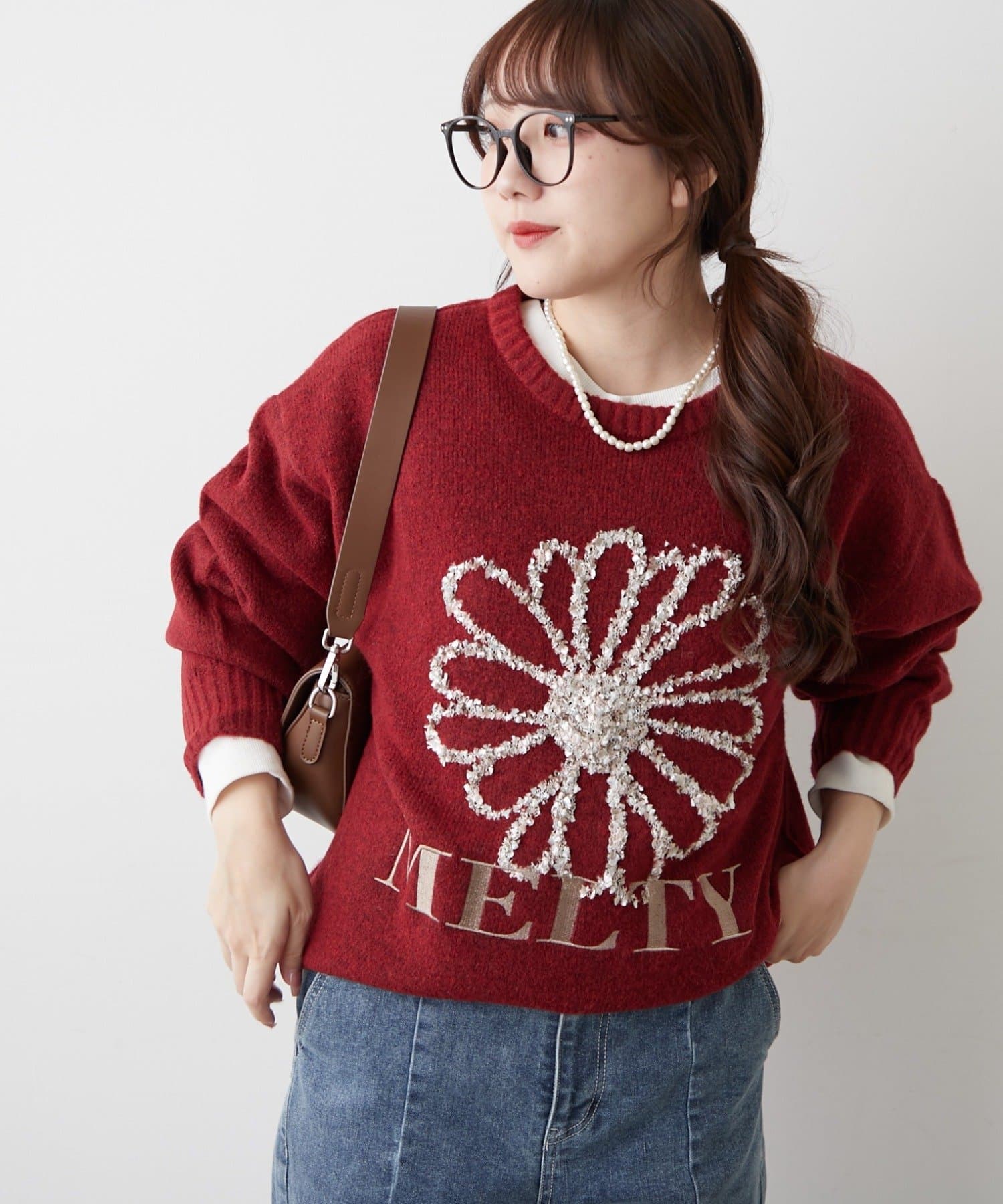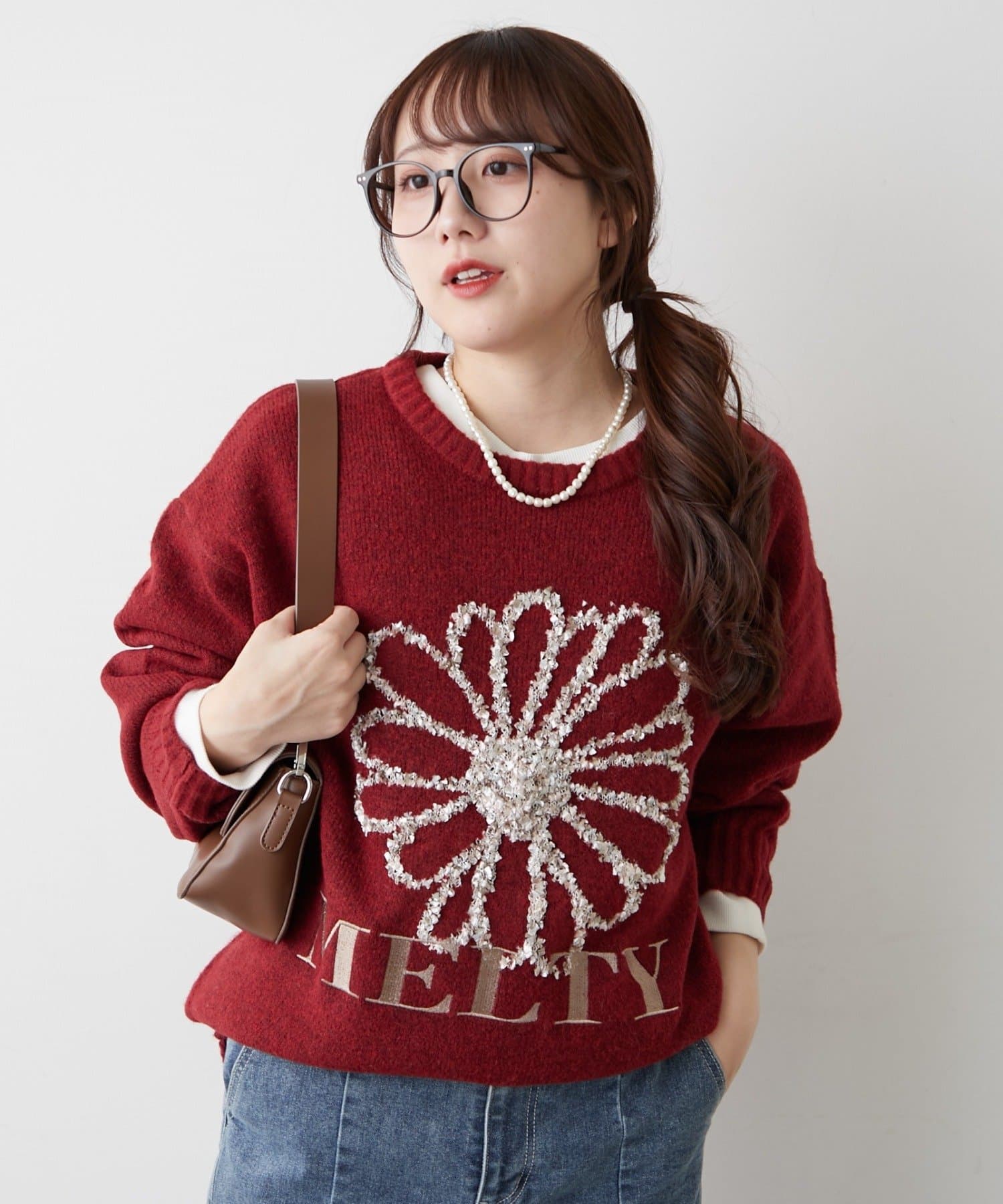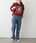 ・存在感のある花ジャガードが可愛いニットプルオーバー