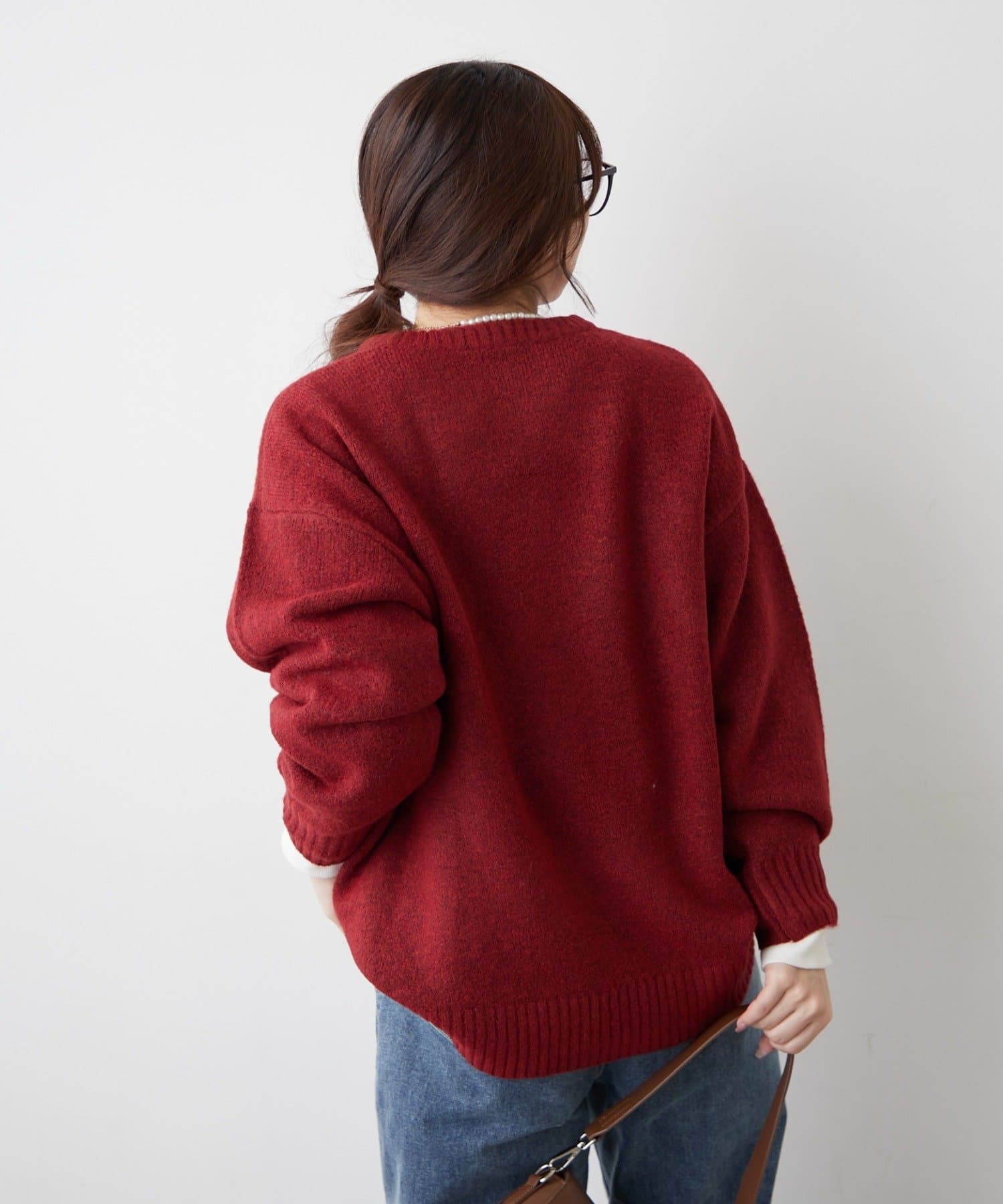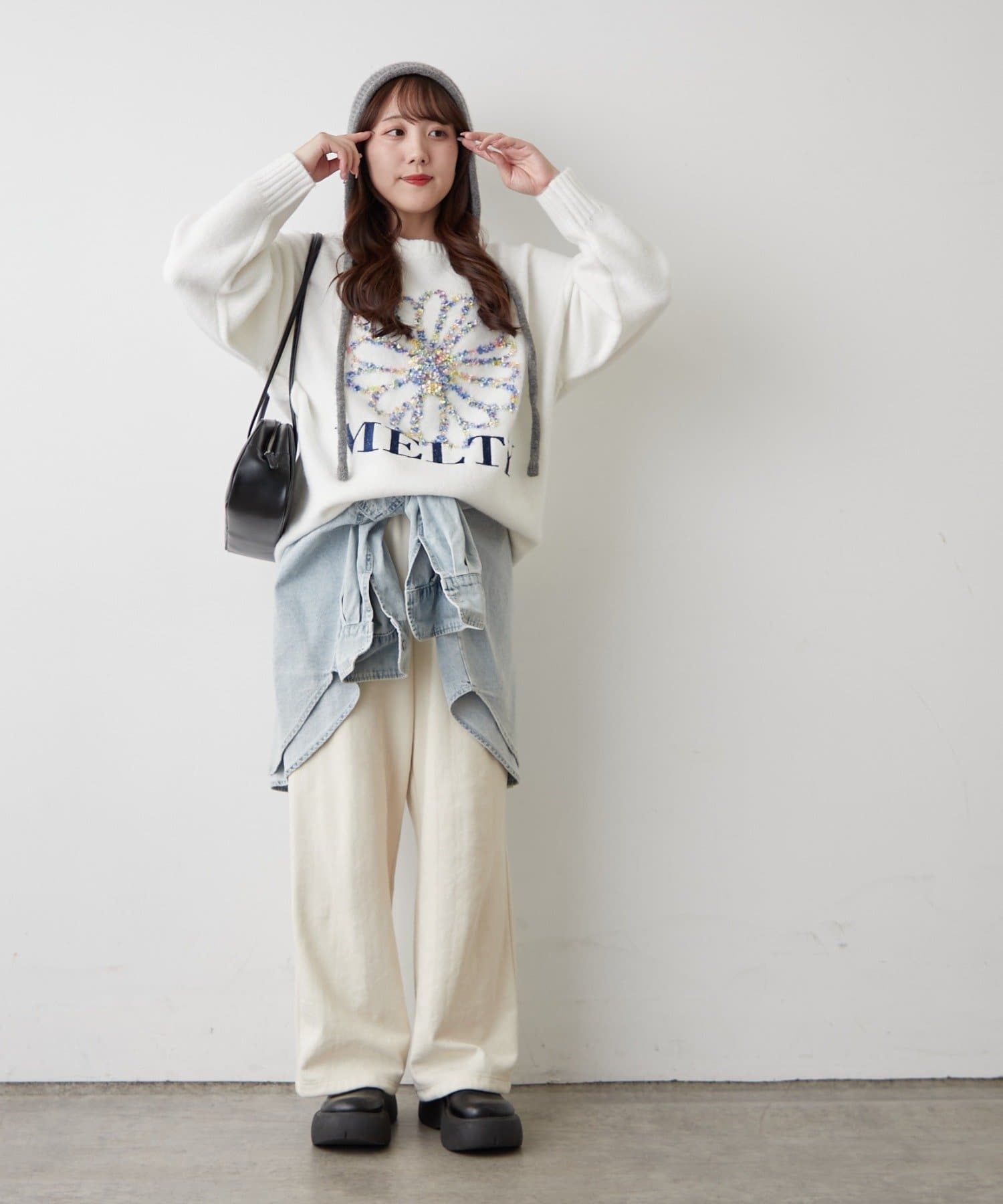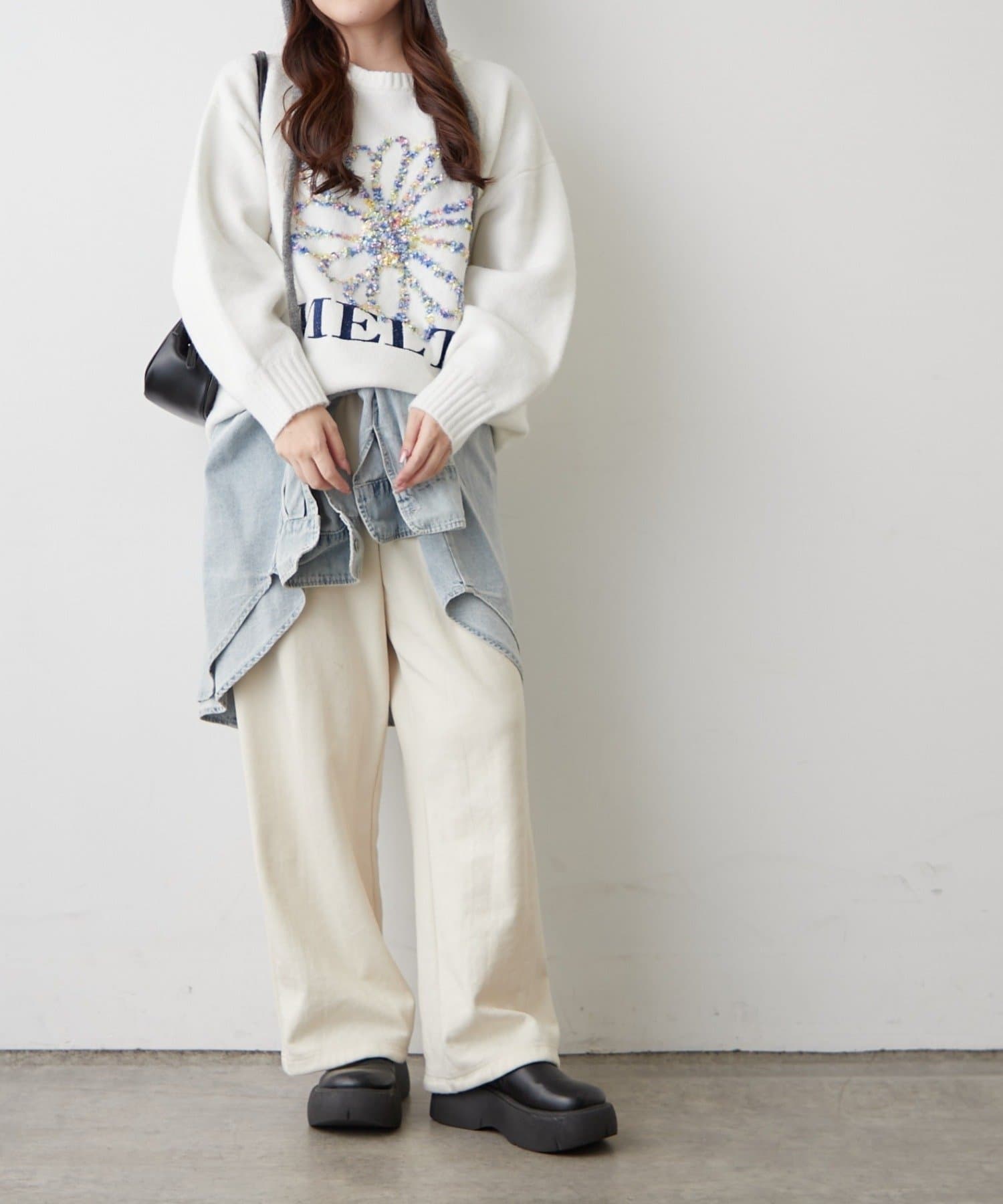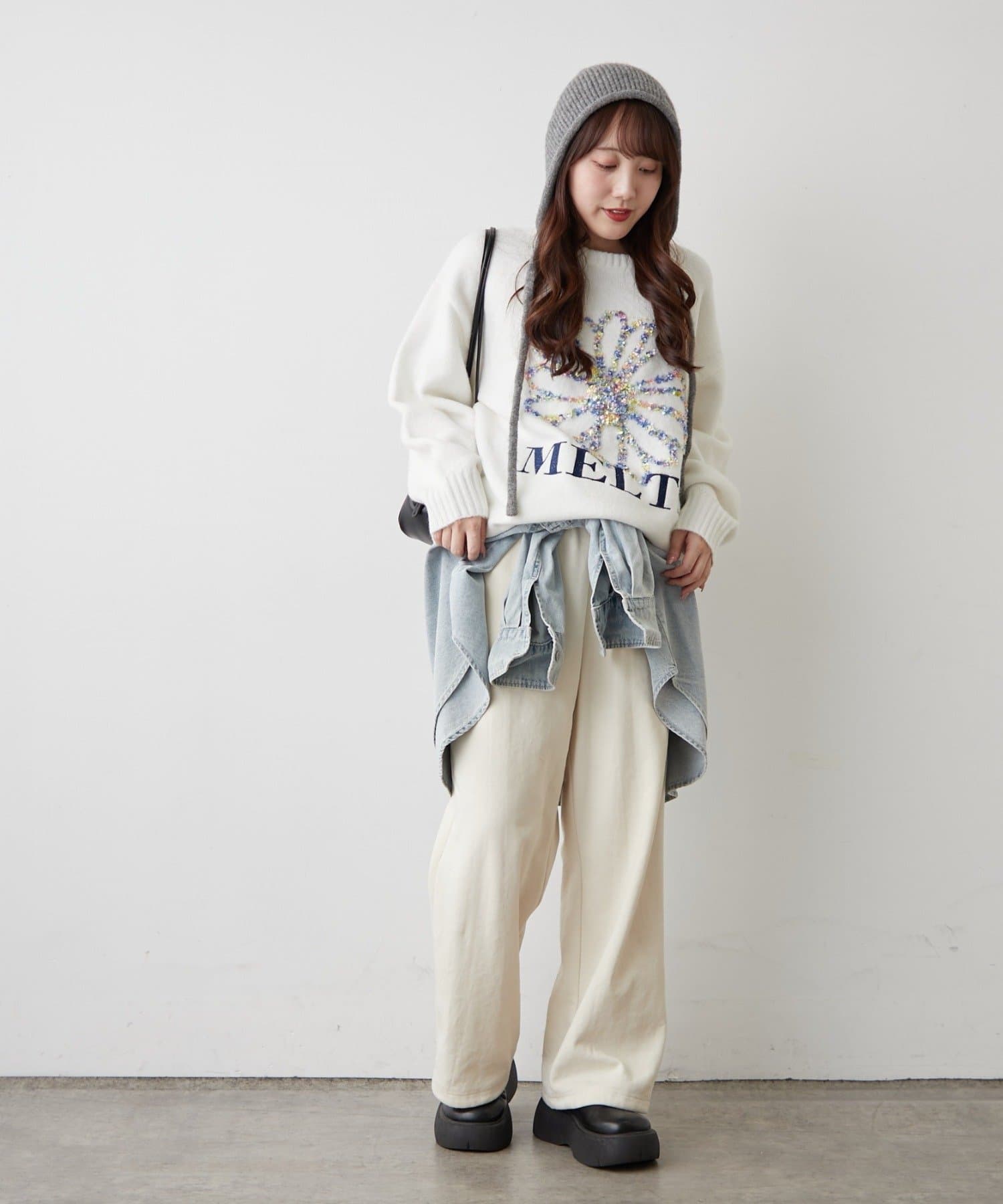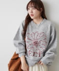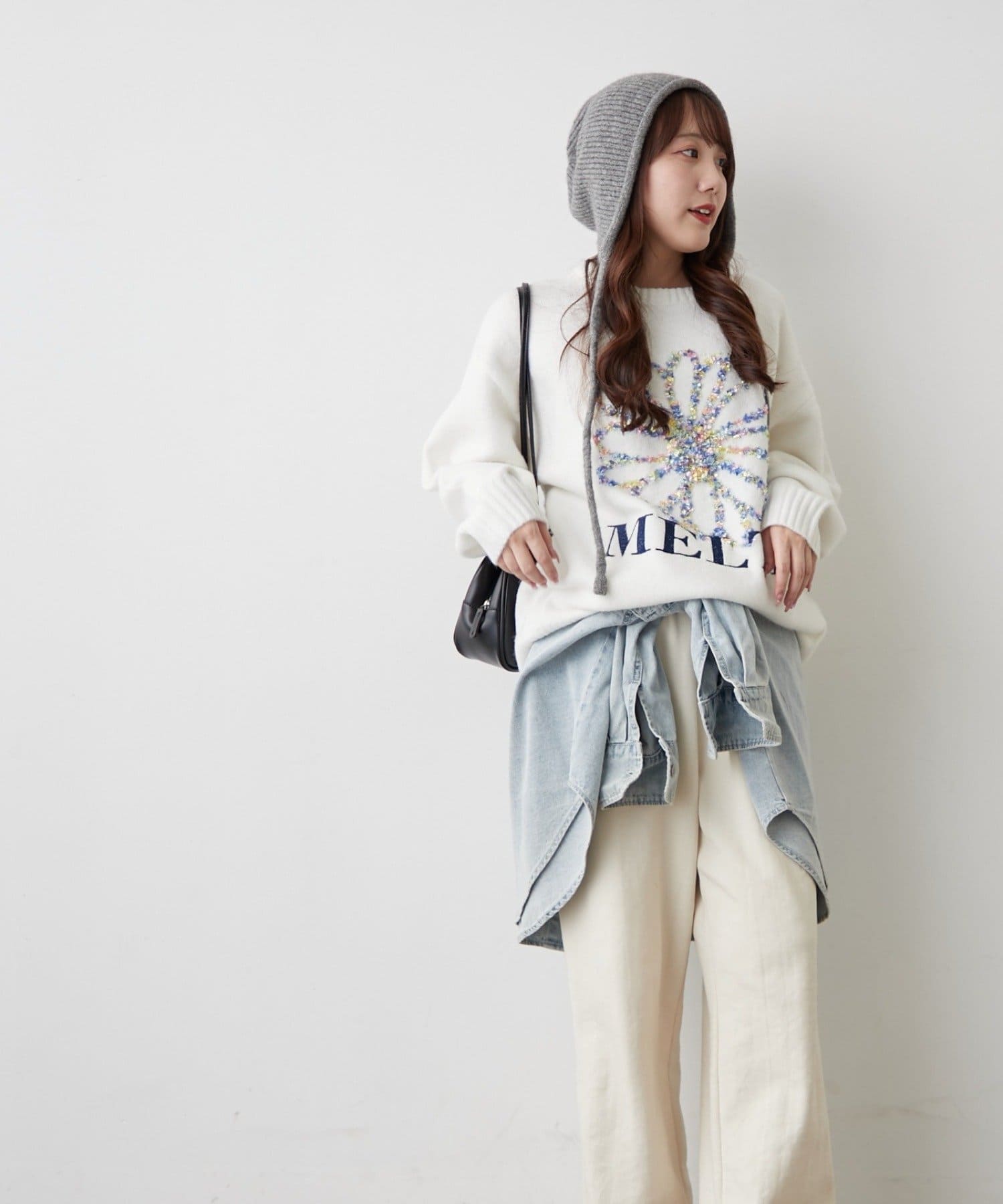 ・存在感のある花ジャガードが可愛いニットプルオーバー
