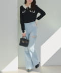 ・ハイウエストのフレアパンツで韓国カジュアルな着こなしも◎