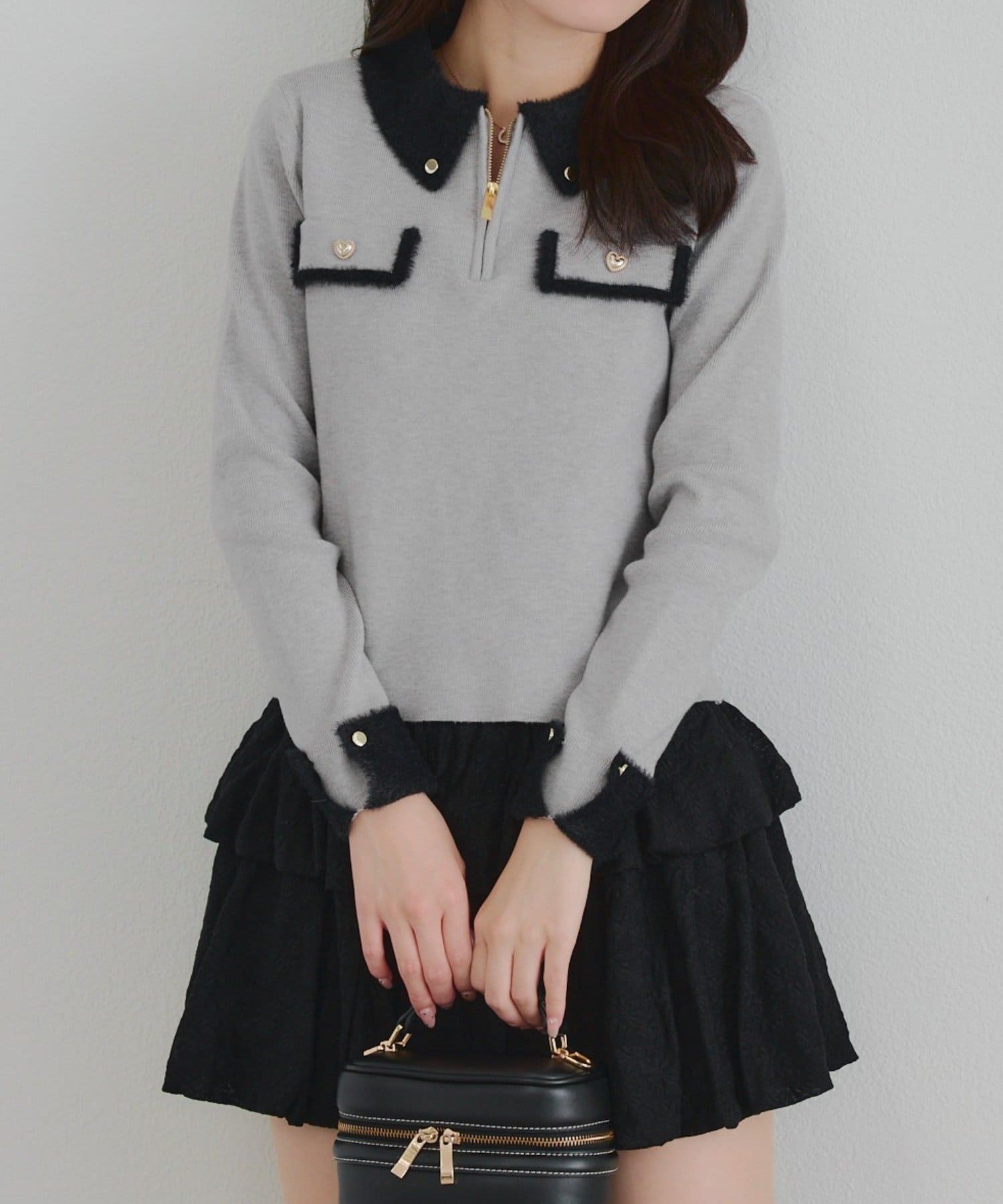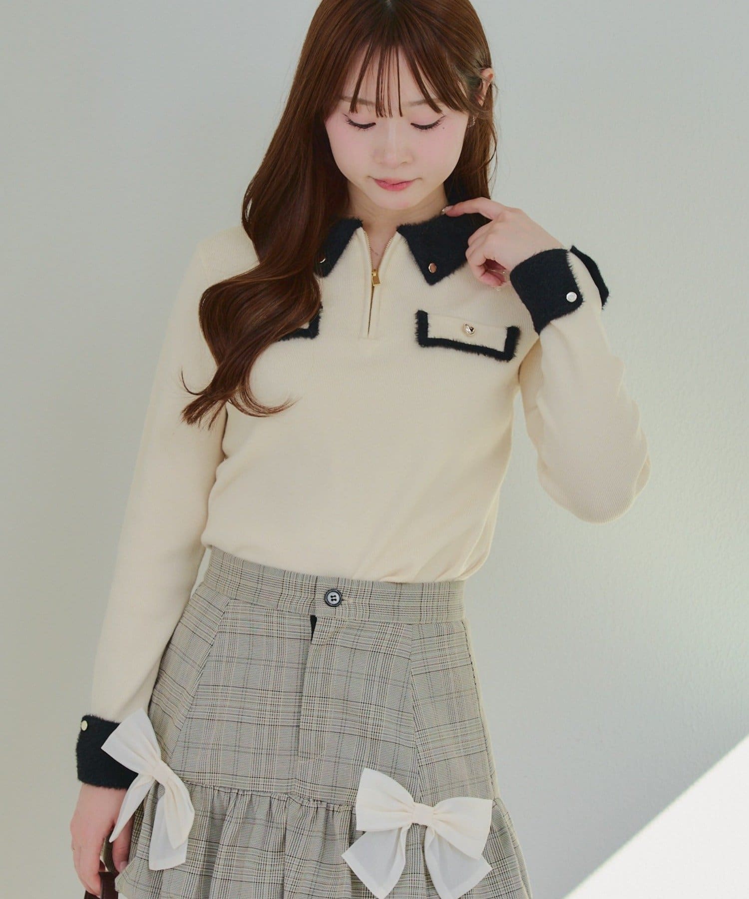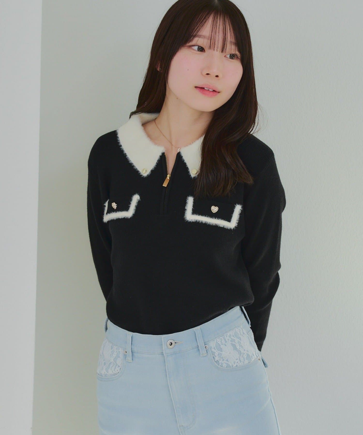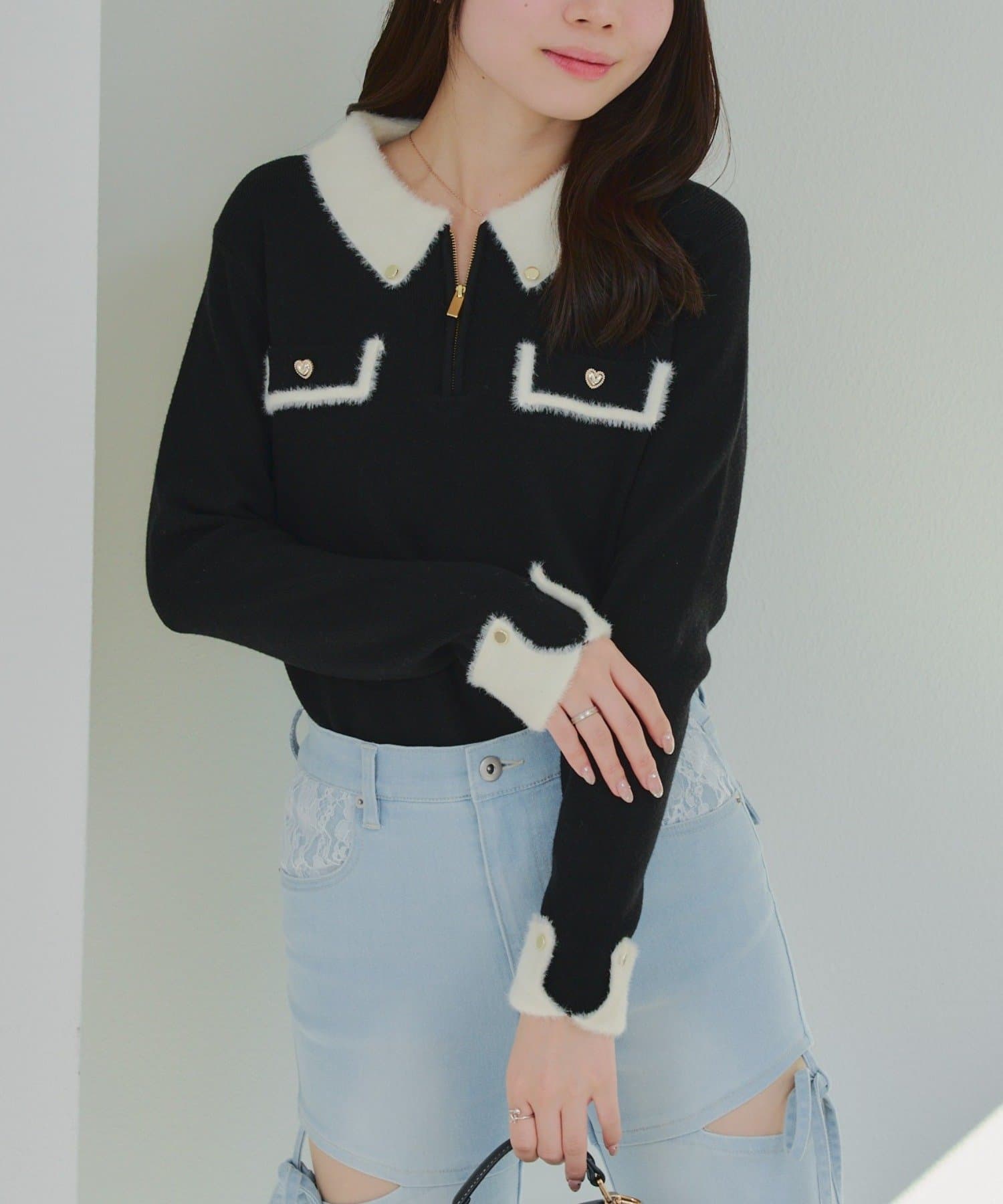 • Remind me and forever(リマインドミーアンドフォーエバー) 配色フェザーハーフジップニット