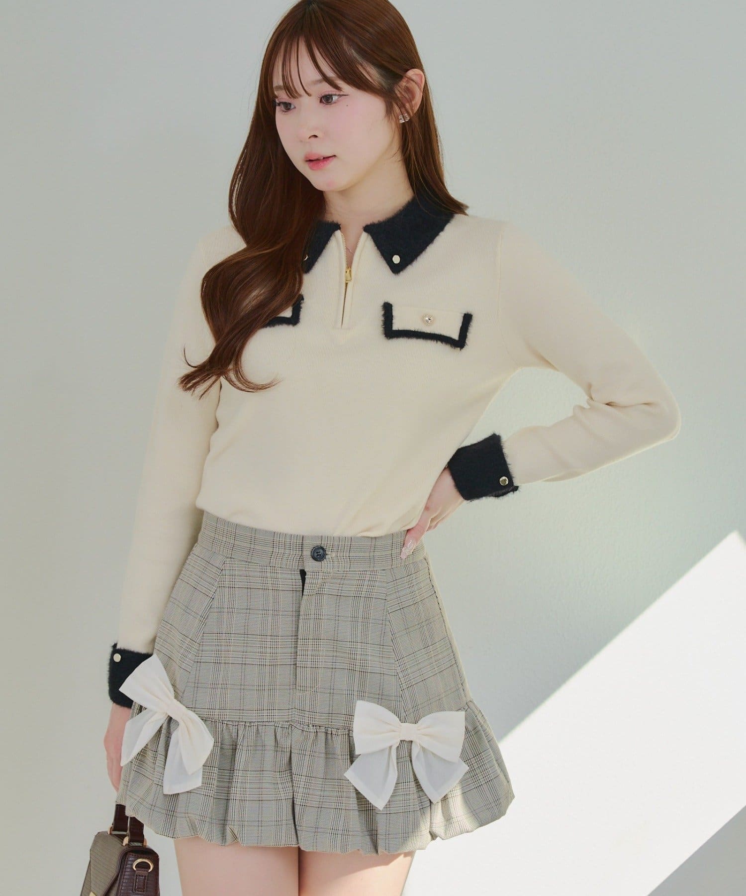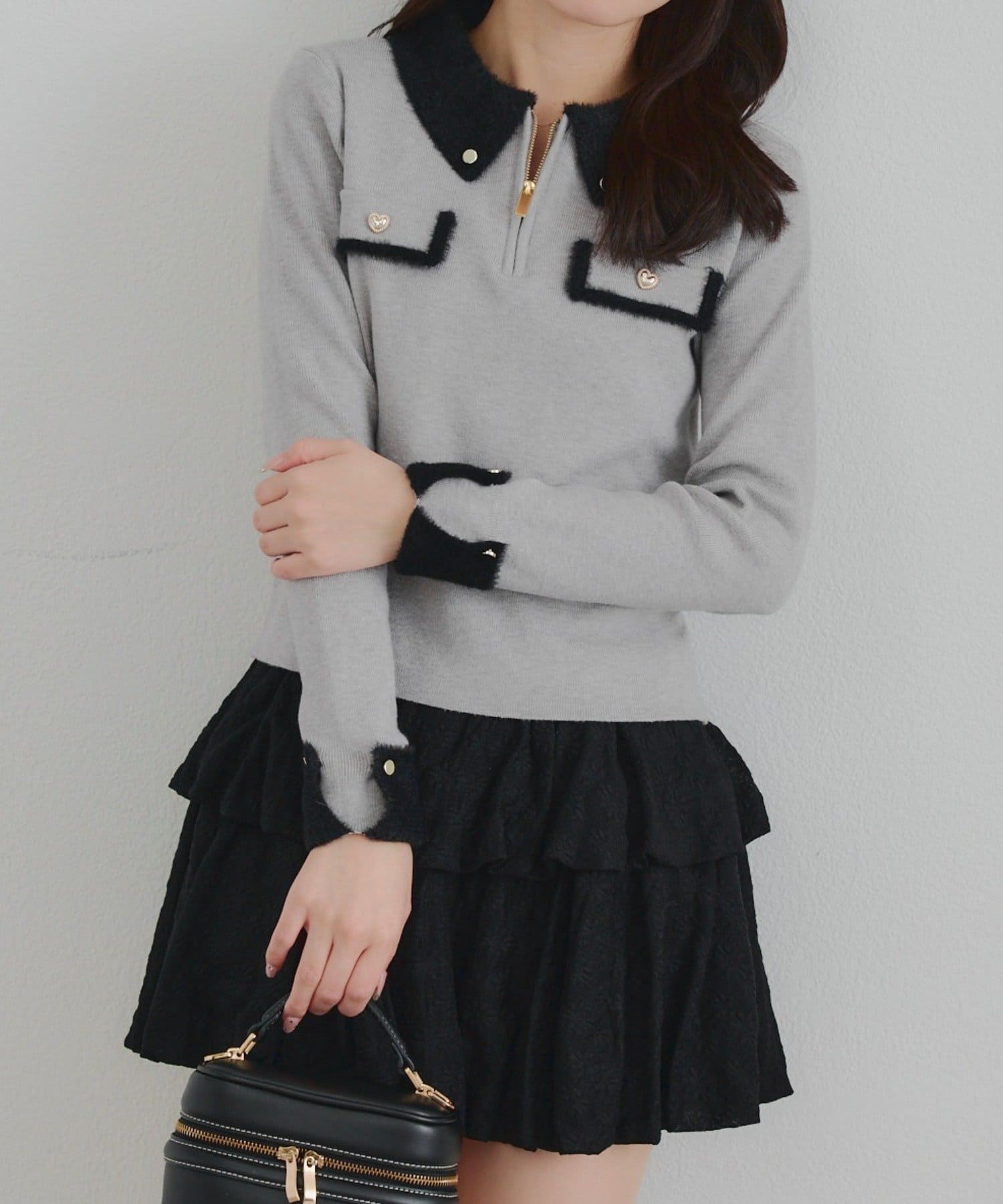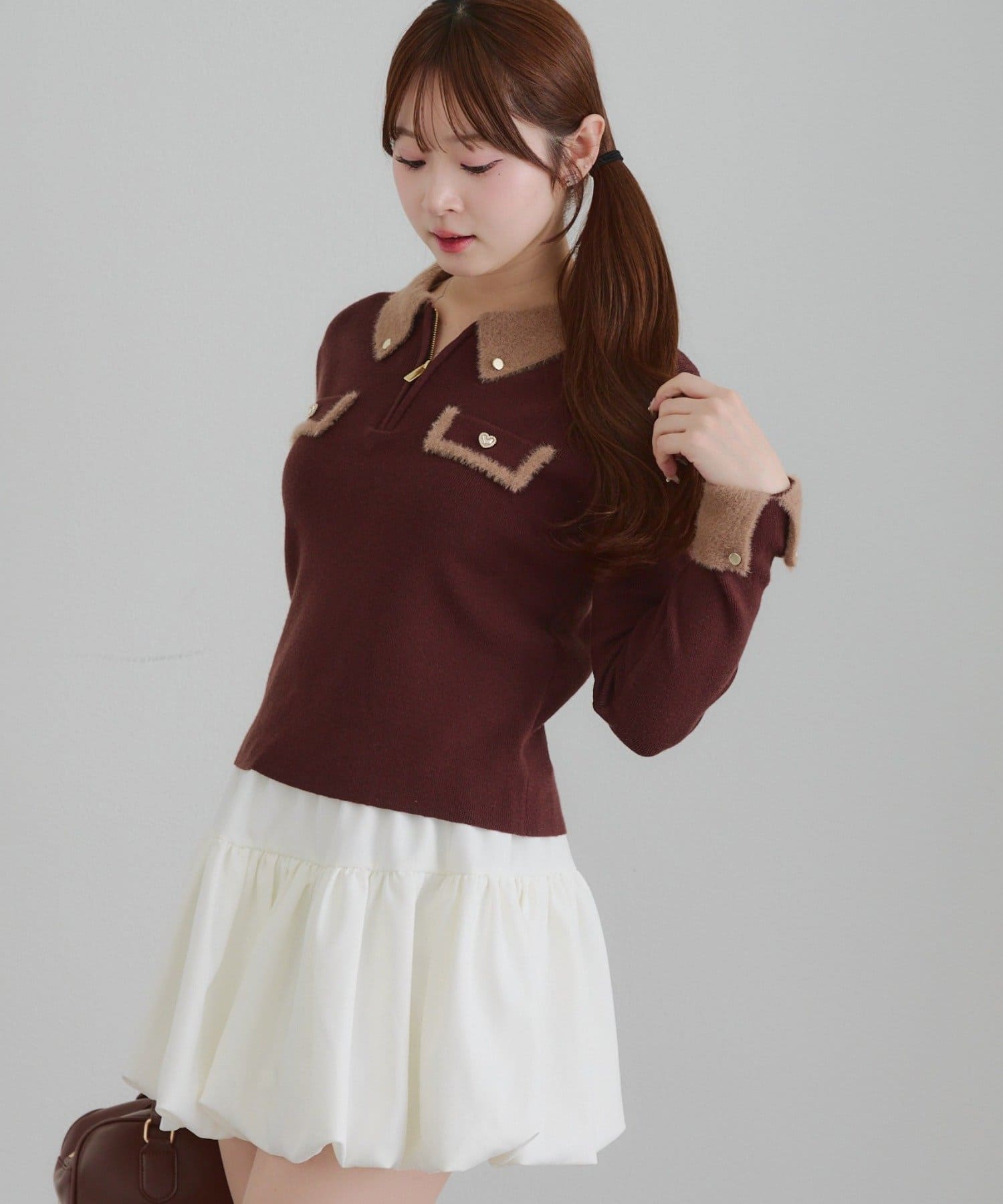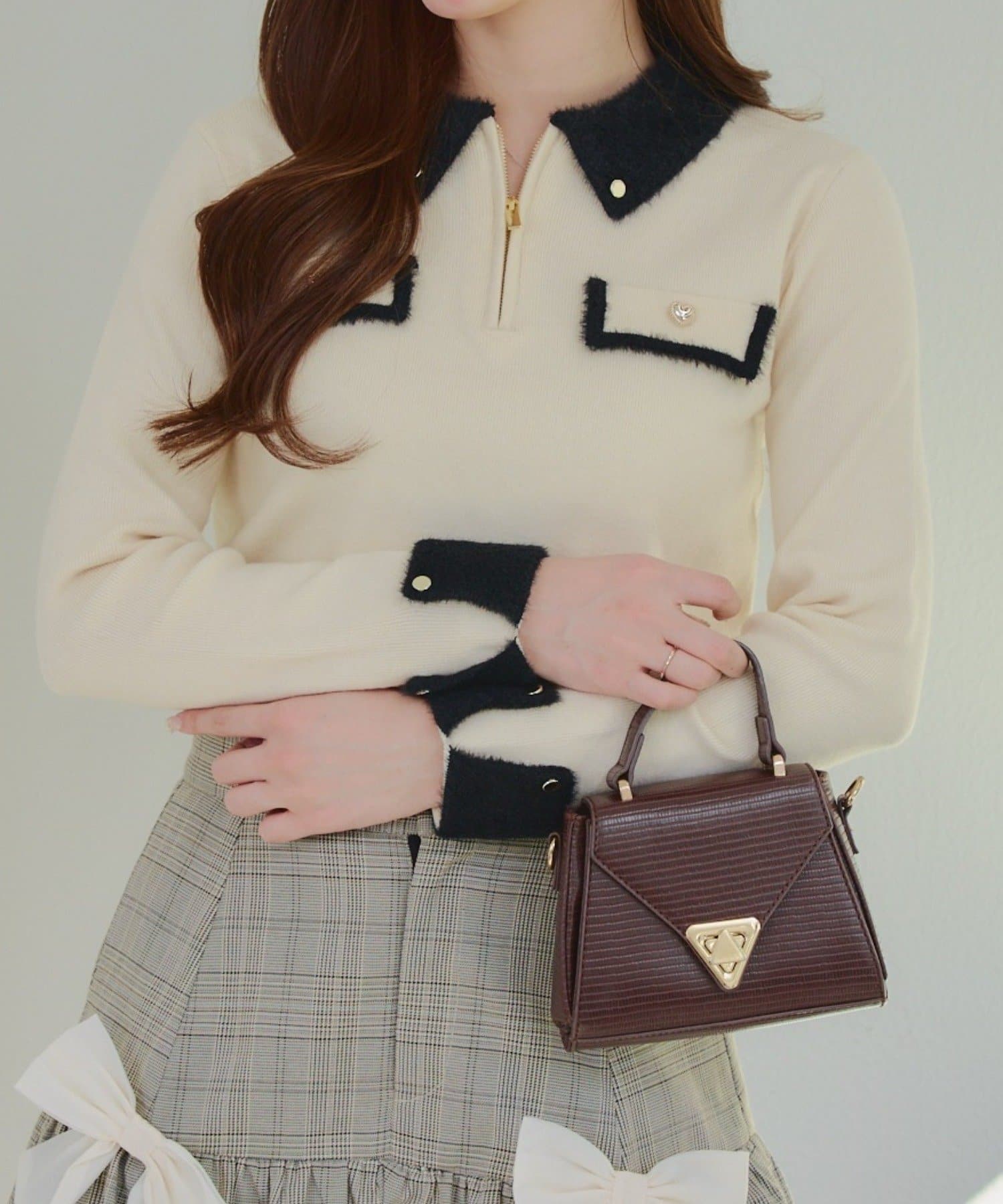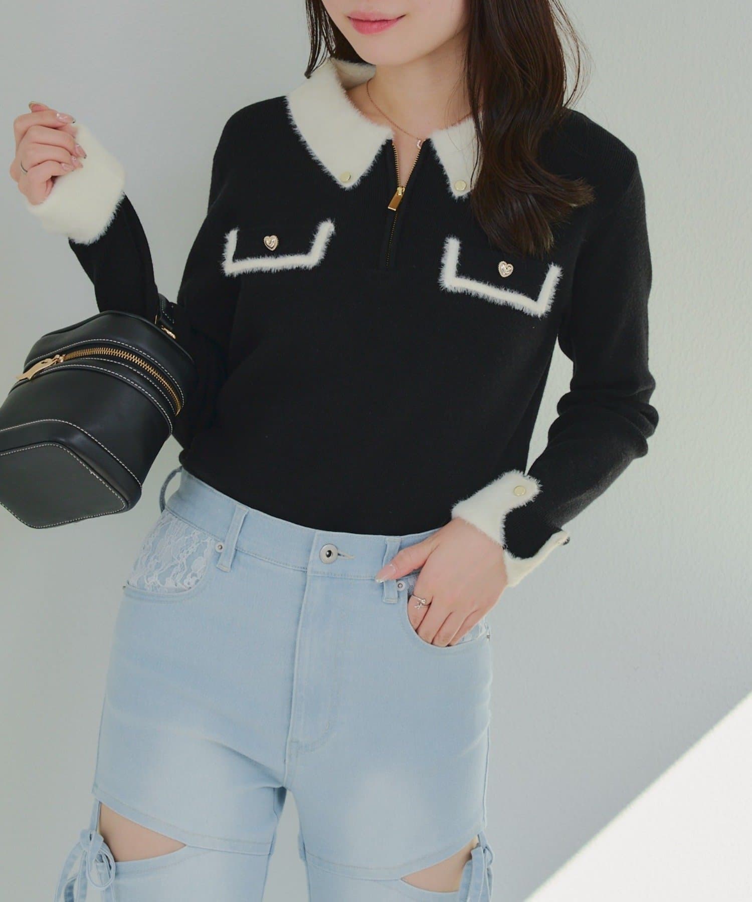 • Remind me and forever(リマインドミーアンドフォーエバー) 配色フェザーハーフジップニット