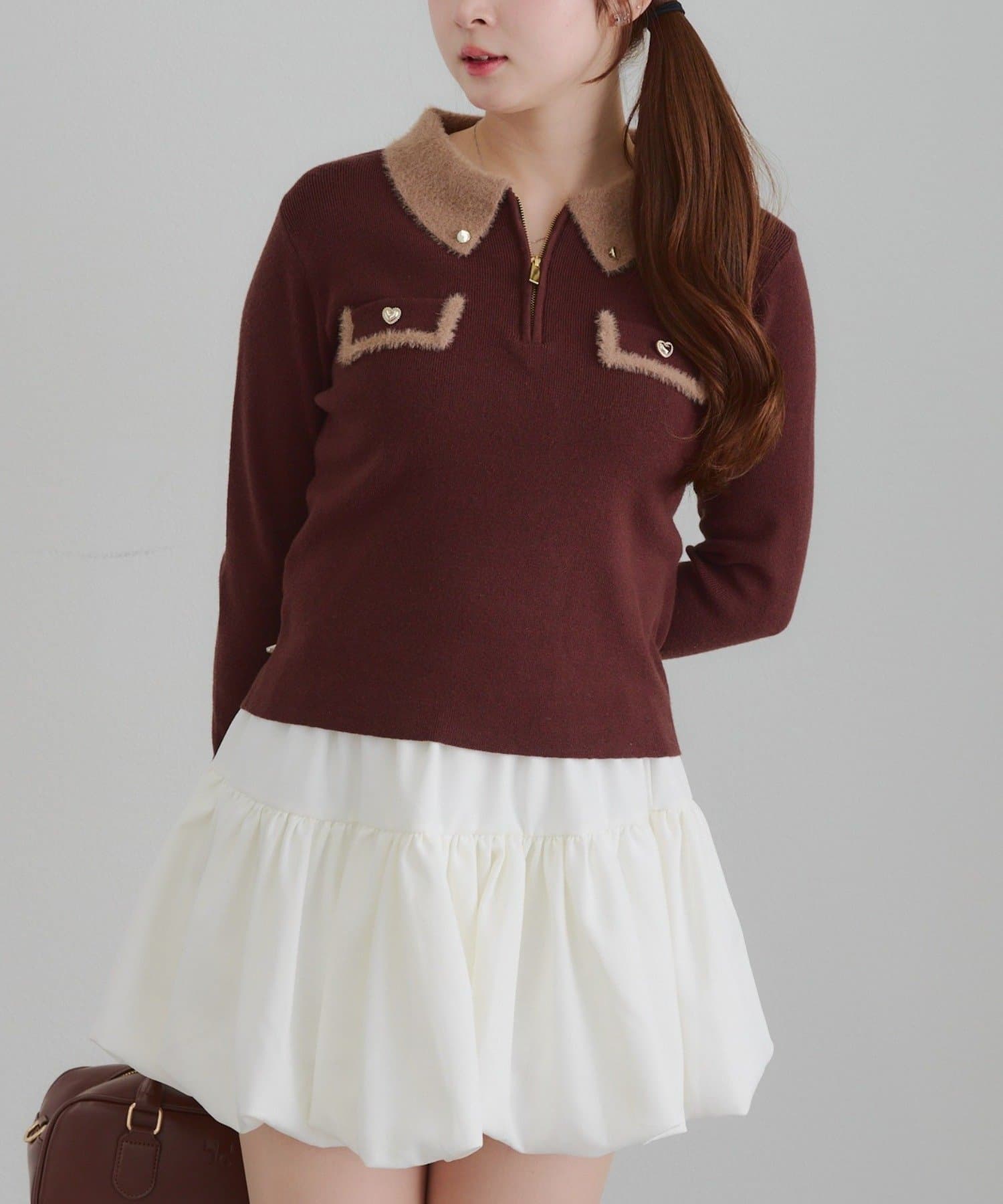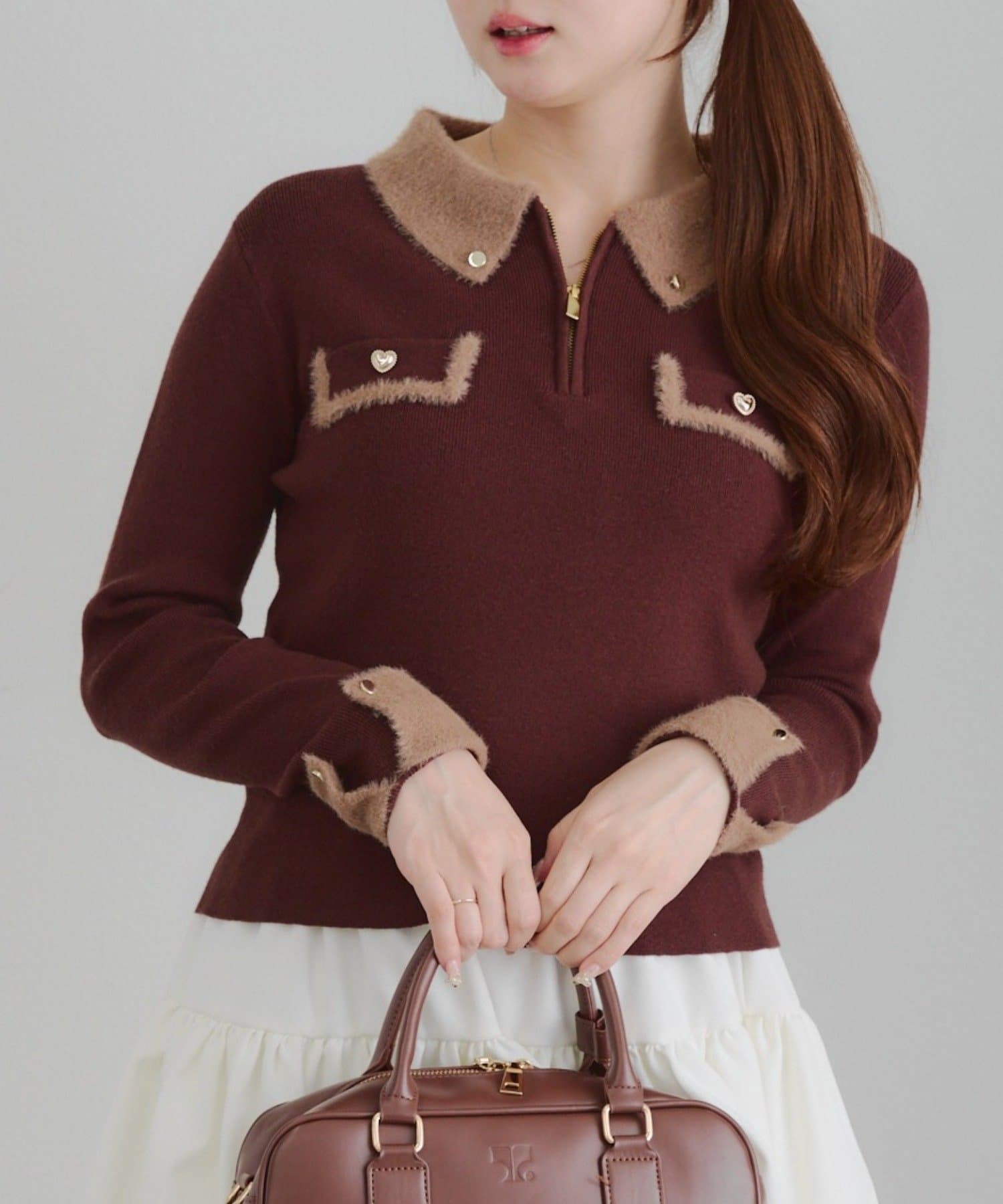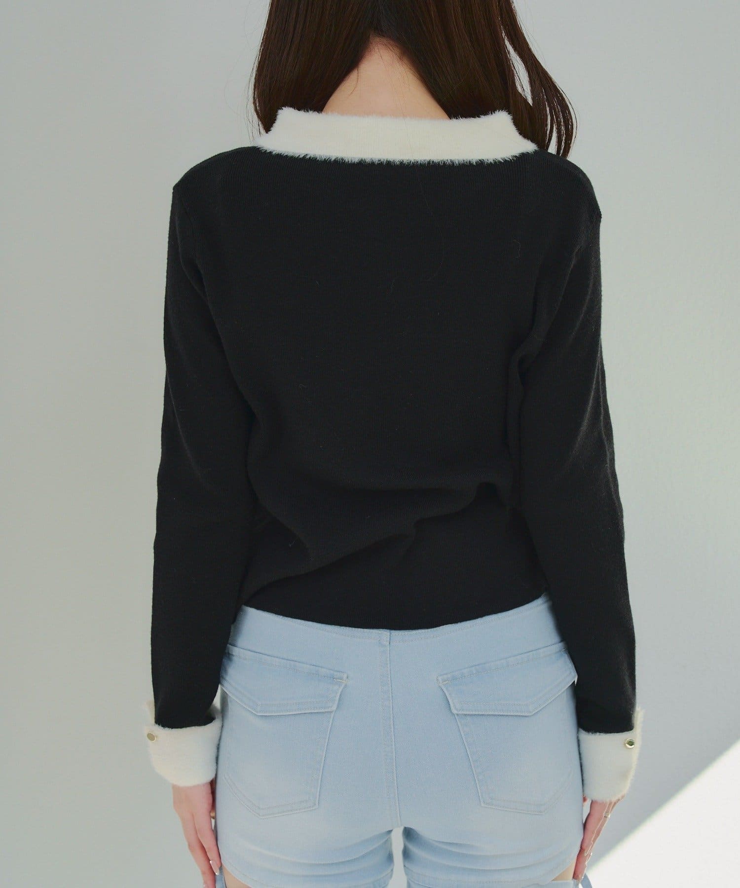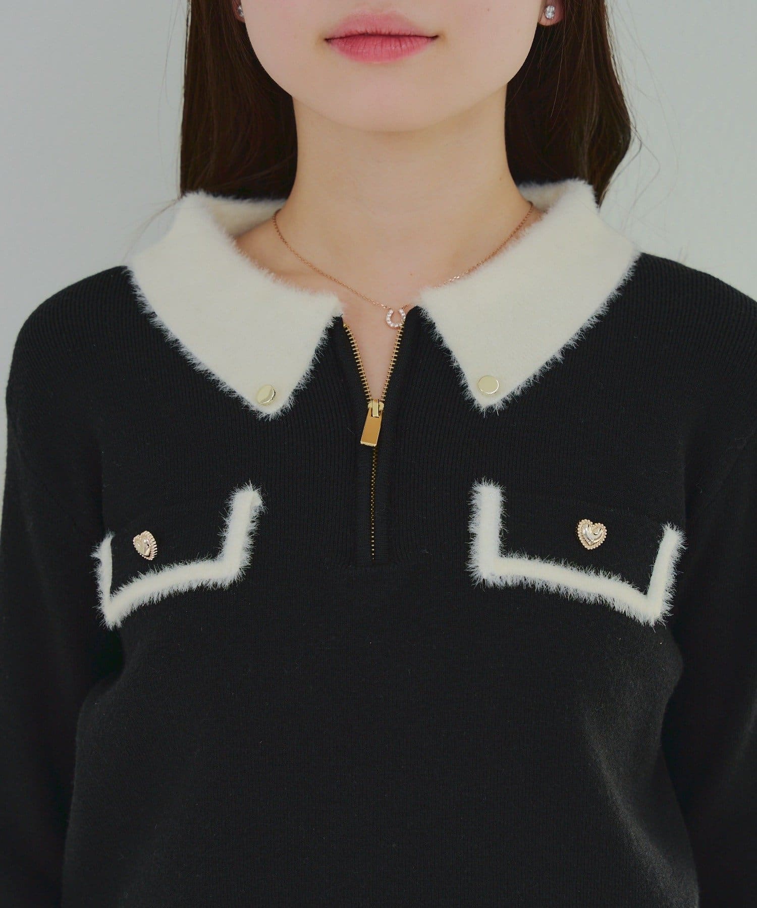 Remind me and forever(リマインドミーアンドフォーエバー) 配色フェザーハーフジップニット