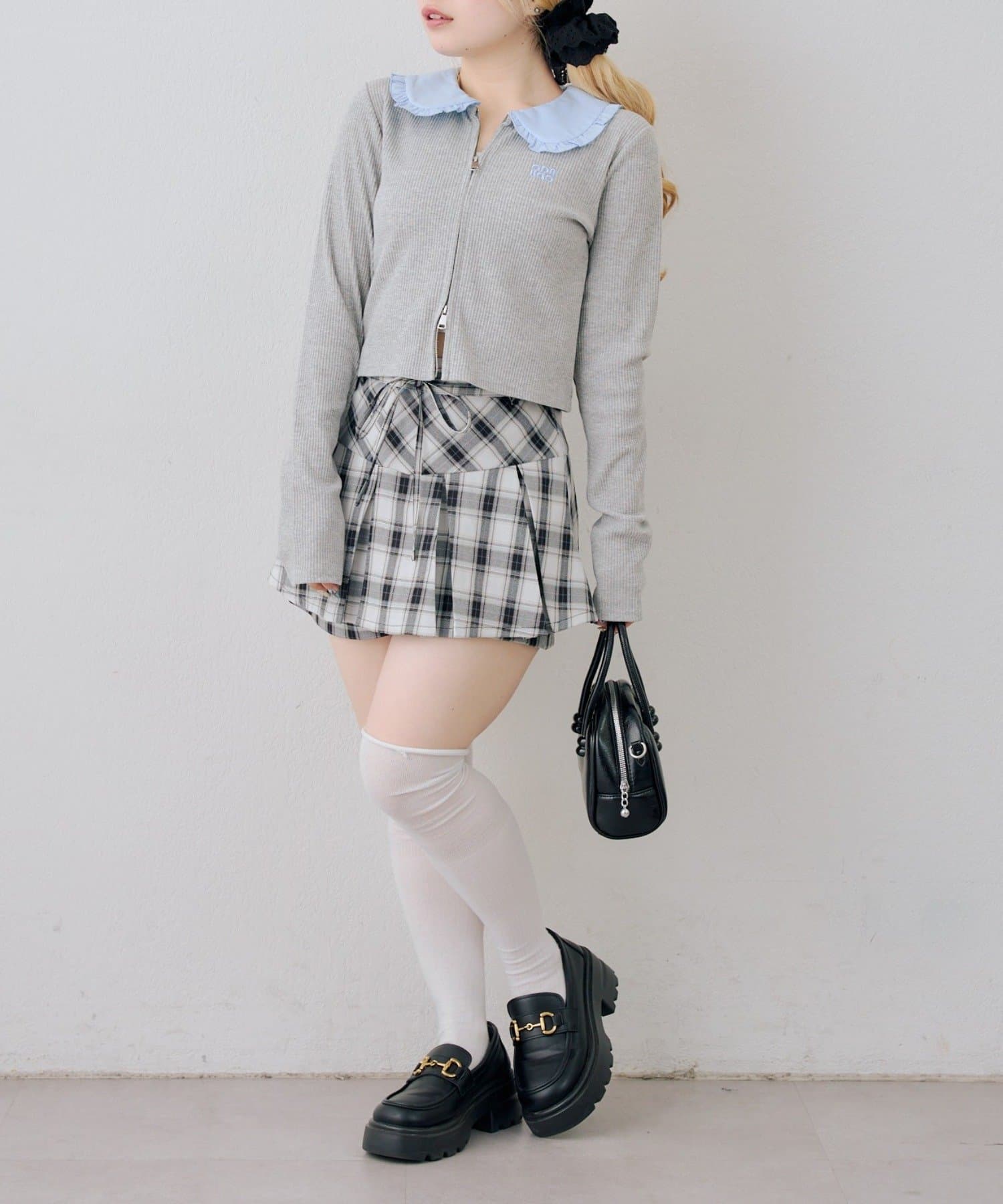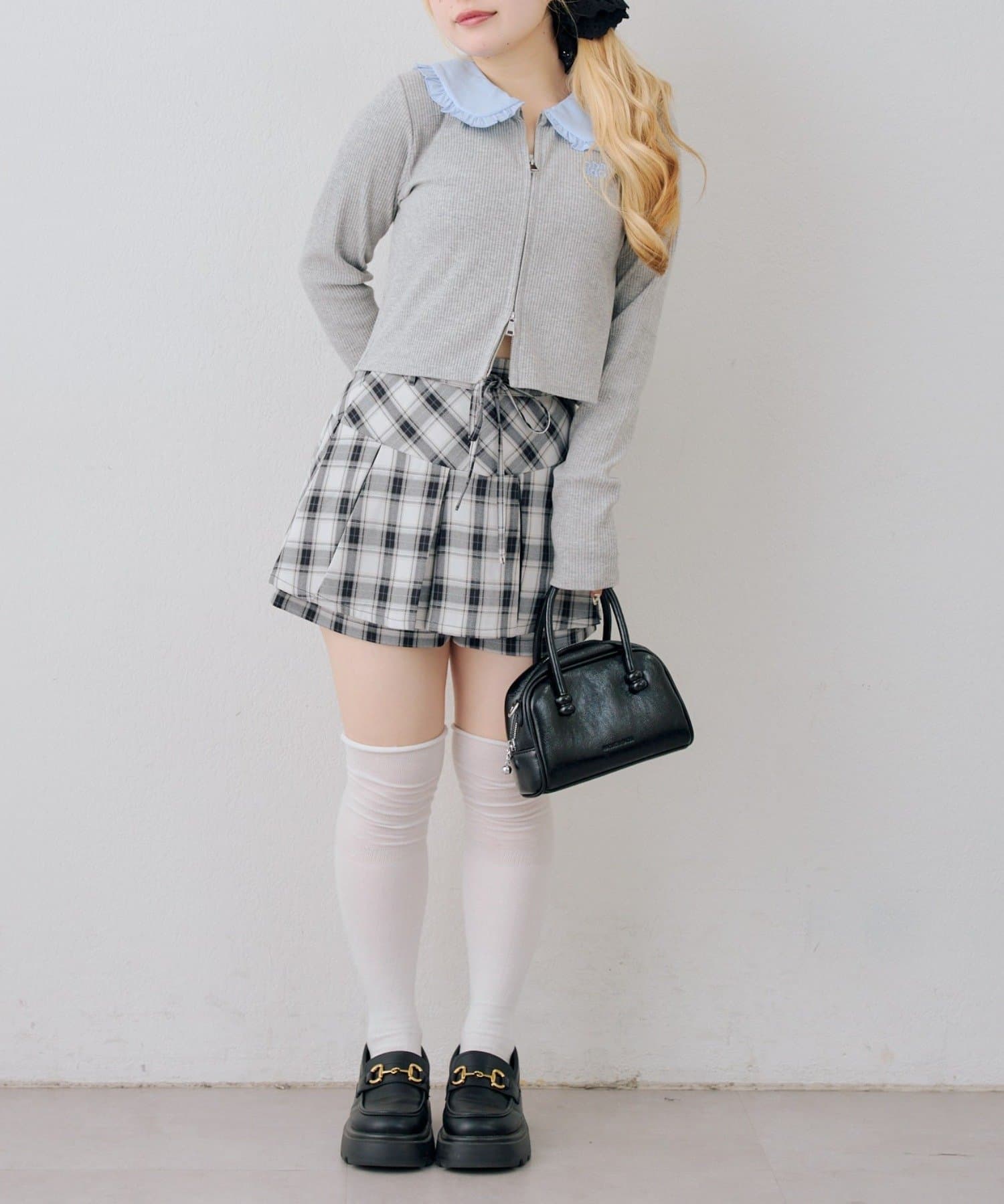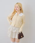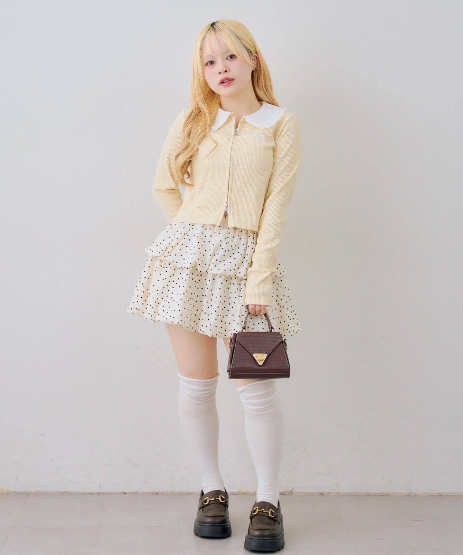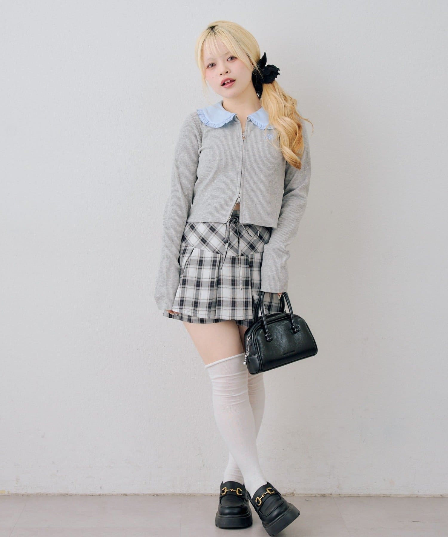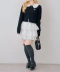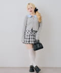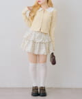 ・ミニスカートと合わせてガーリーに。足元はブーツでバランスを取ると◎