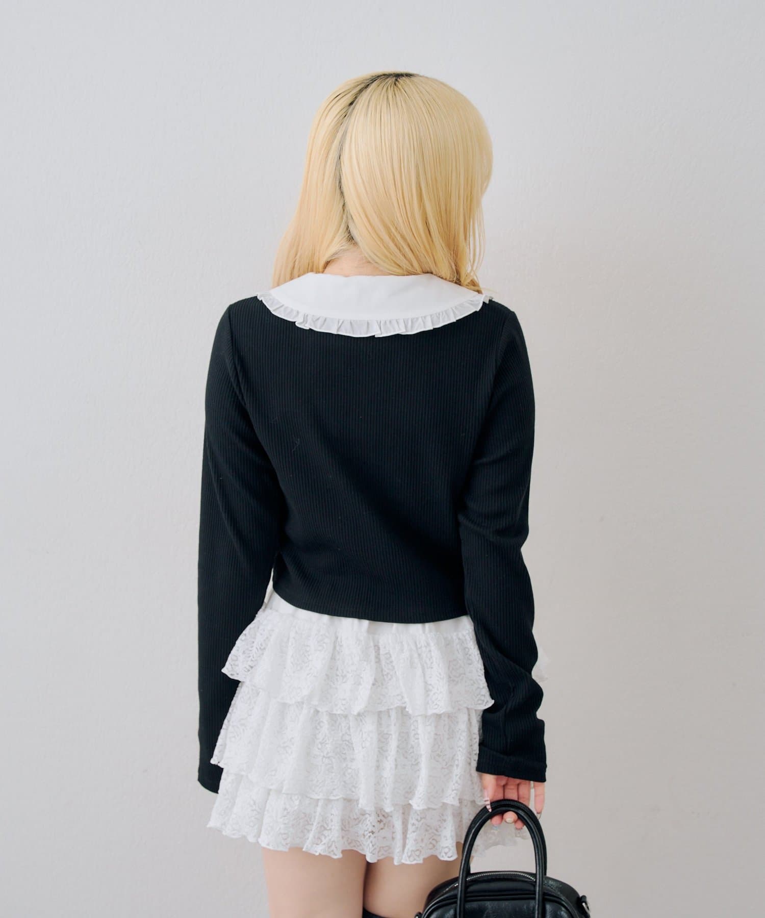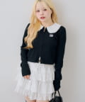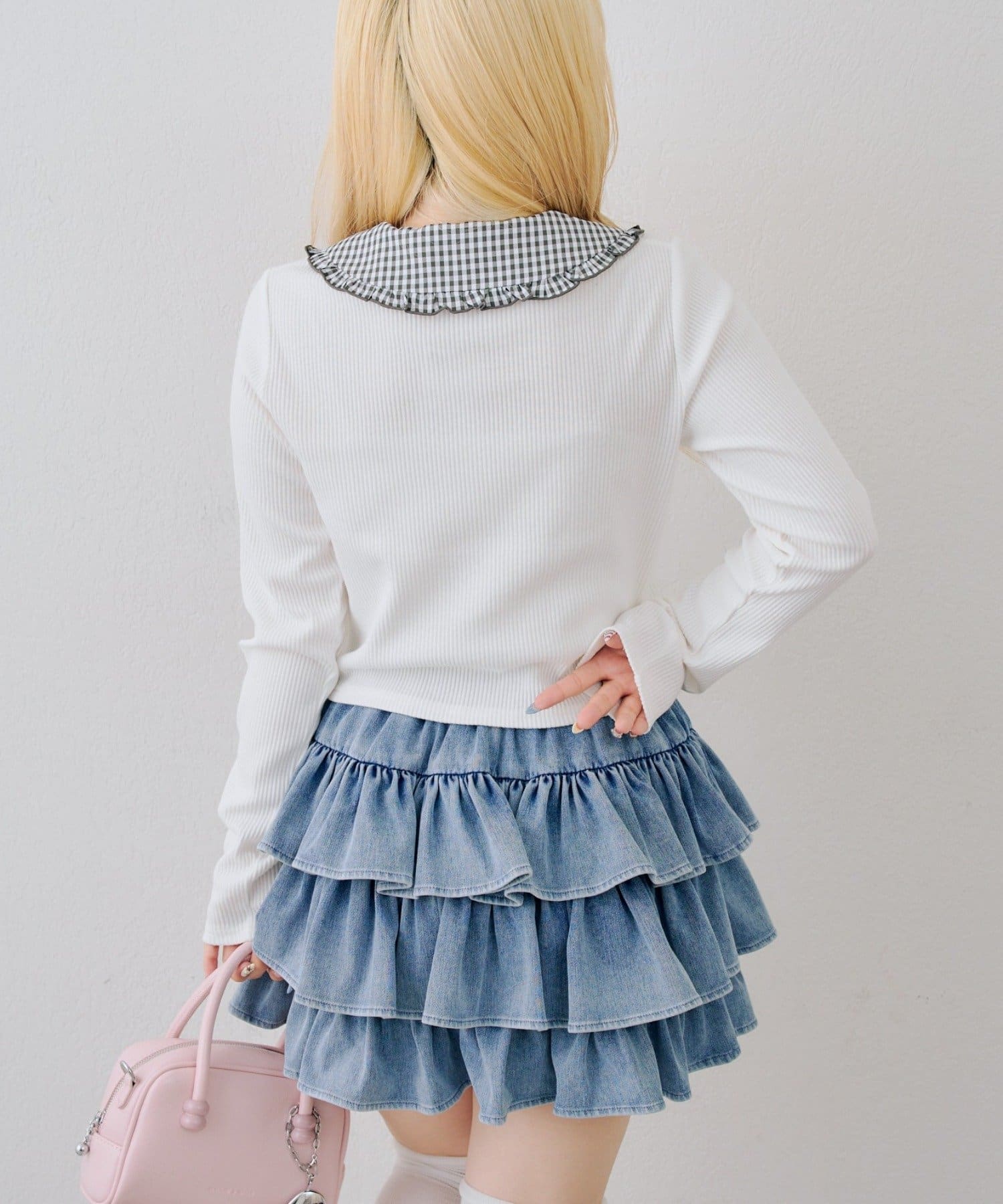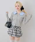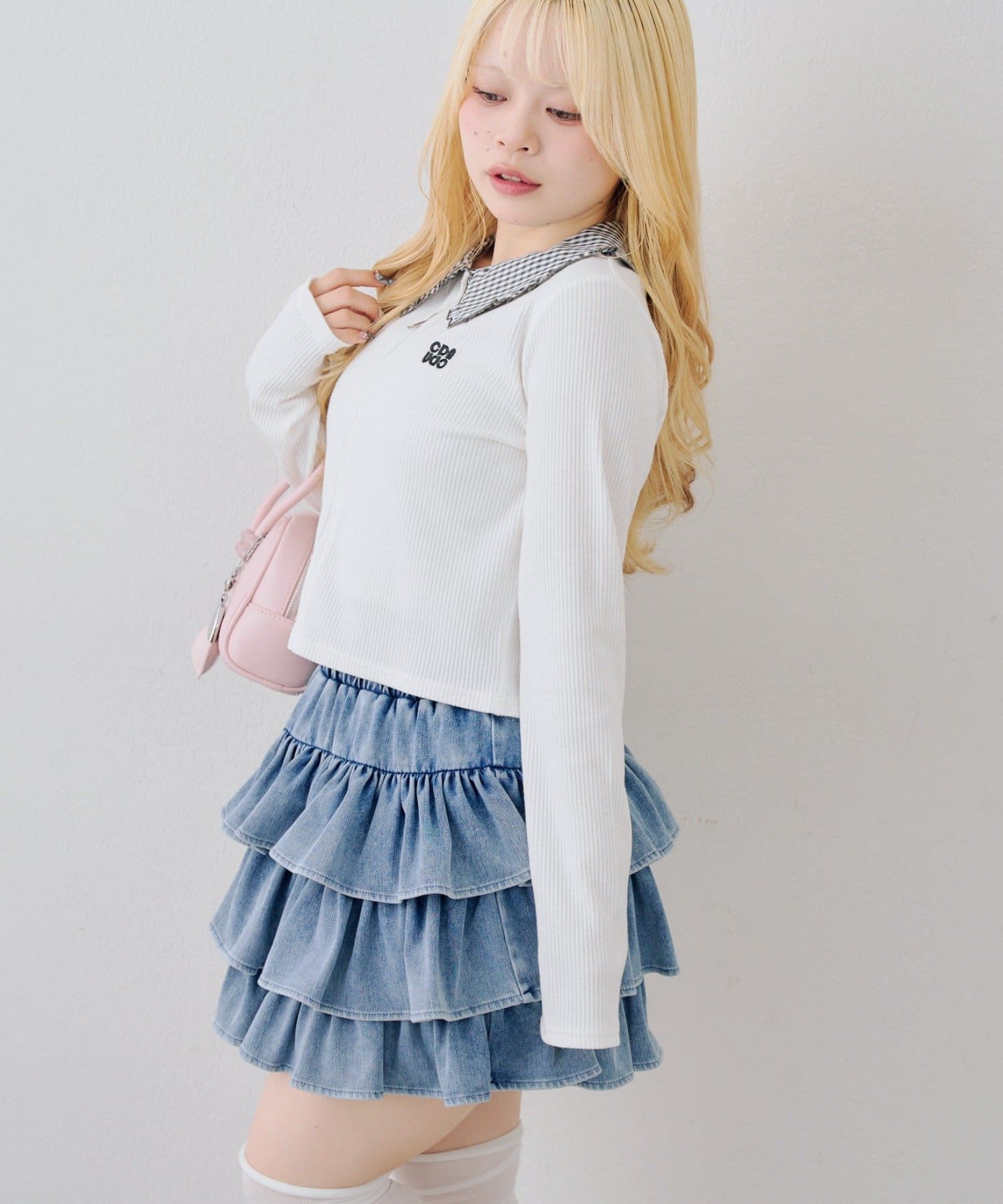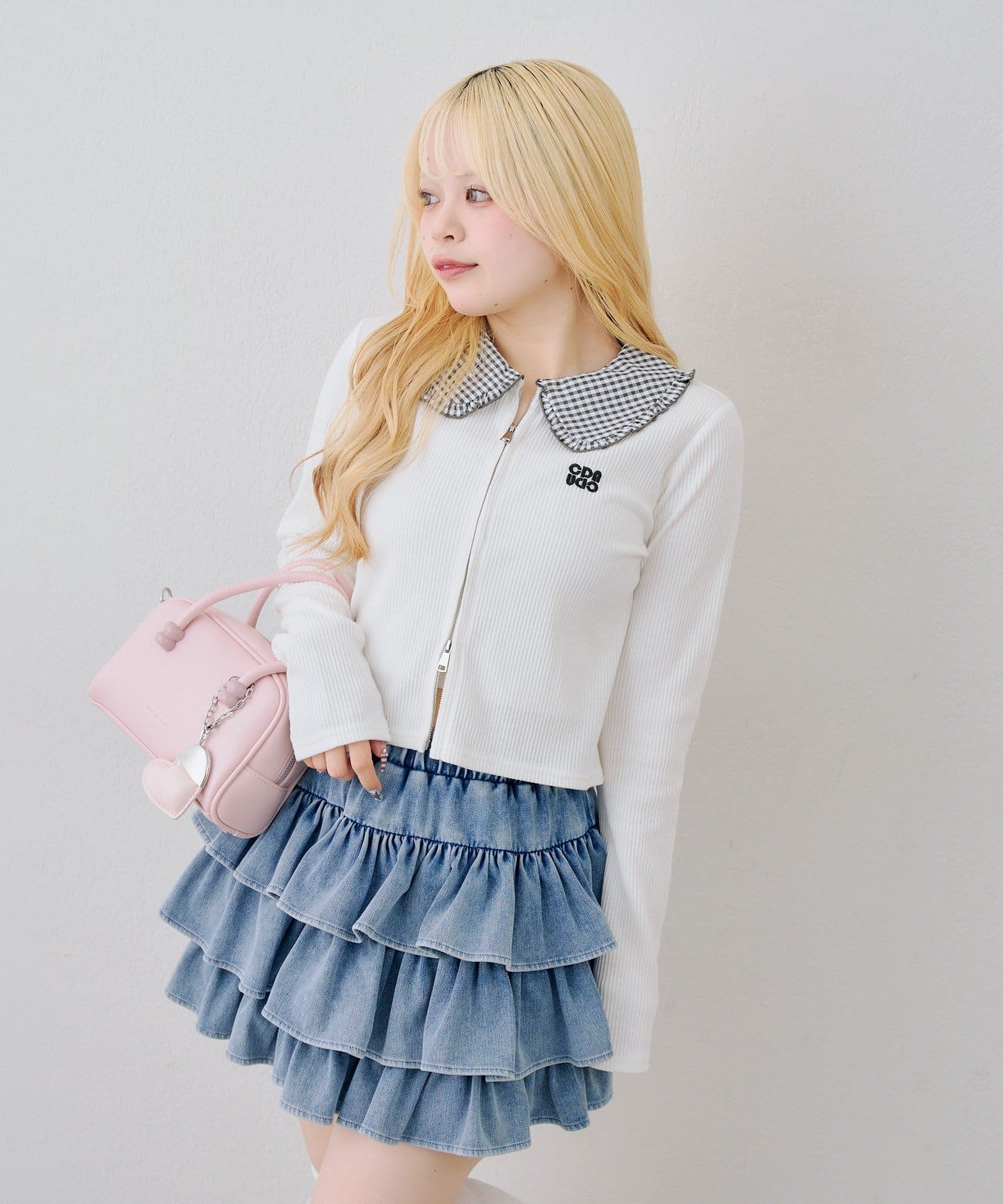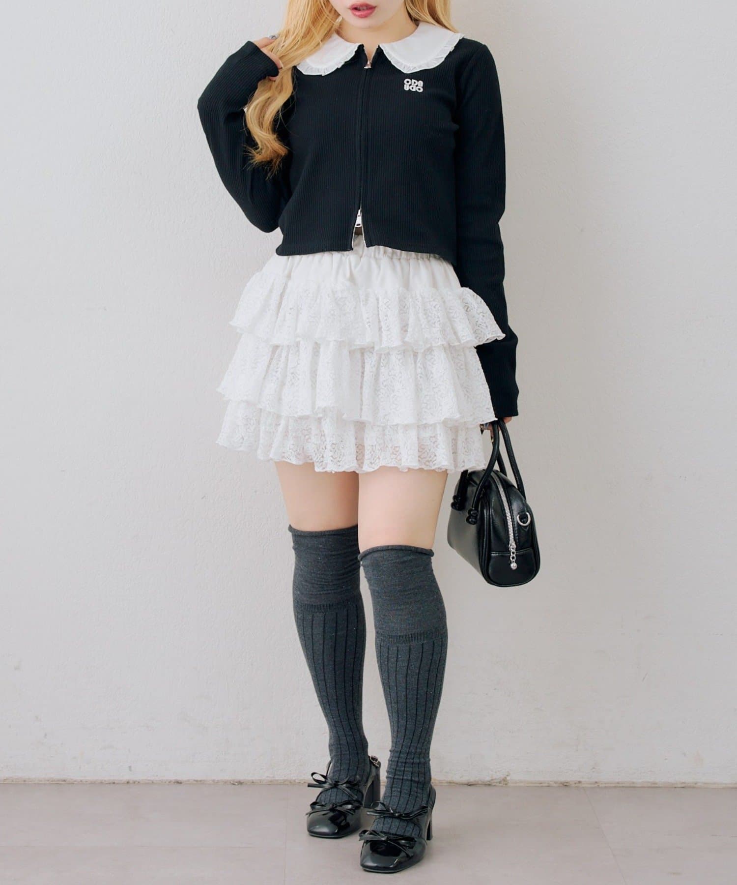 ・ミニスカートと合わせてガーリーに。足元はブーツでバランスを取ると◎