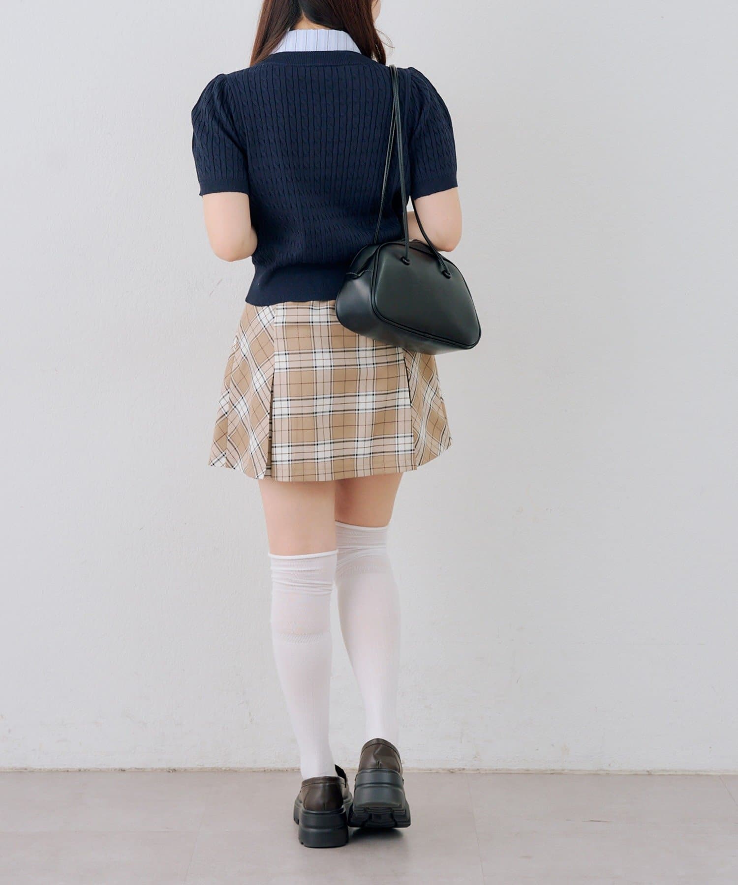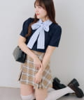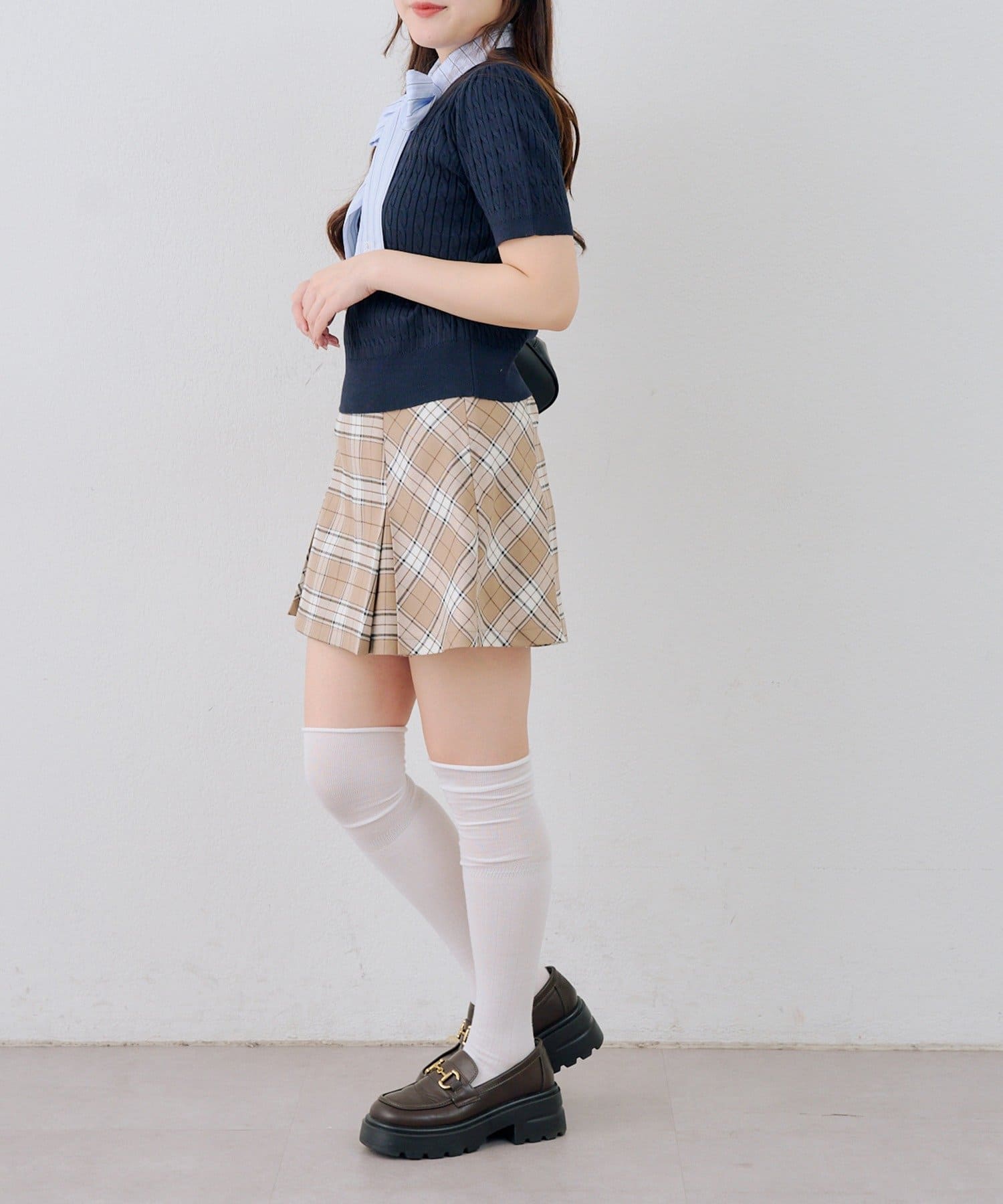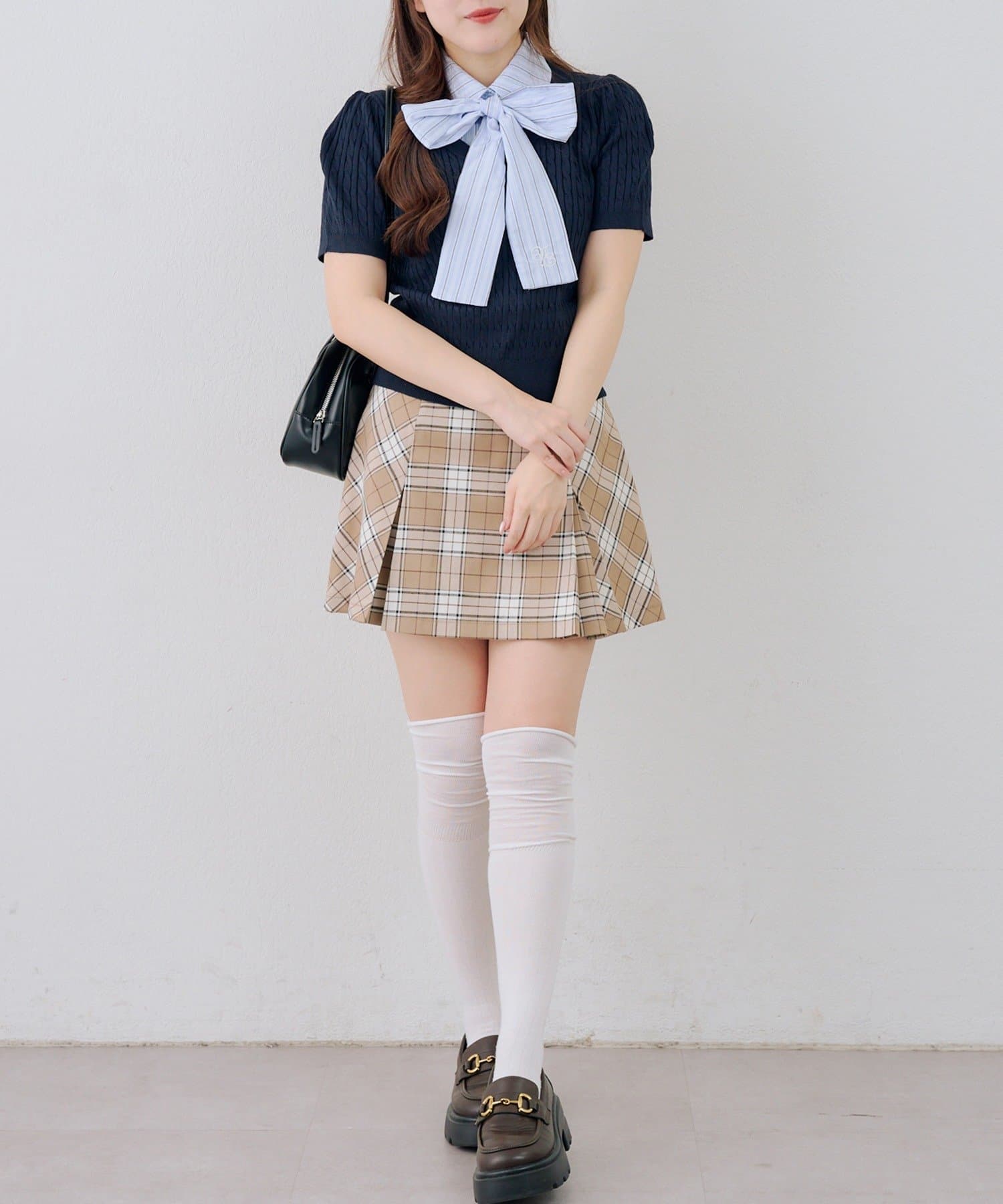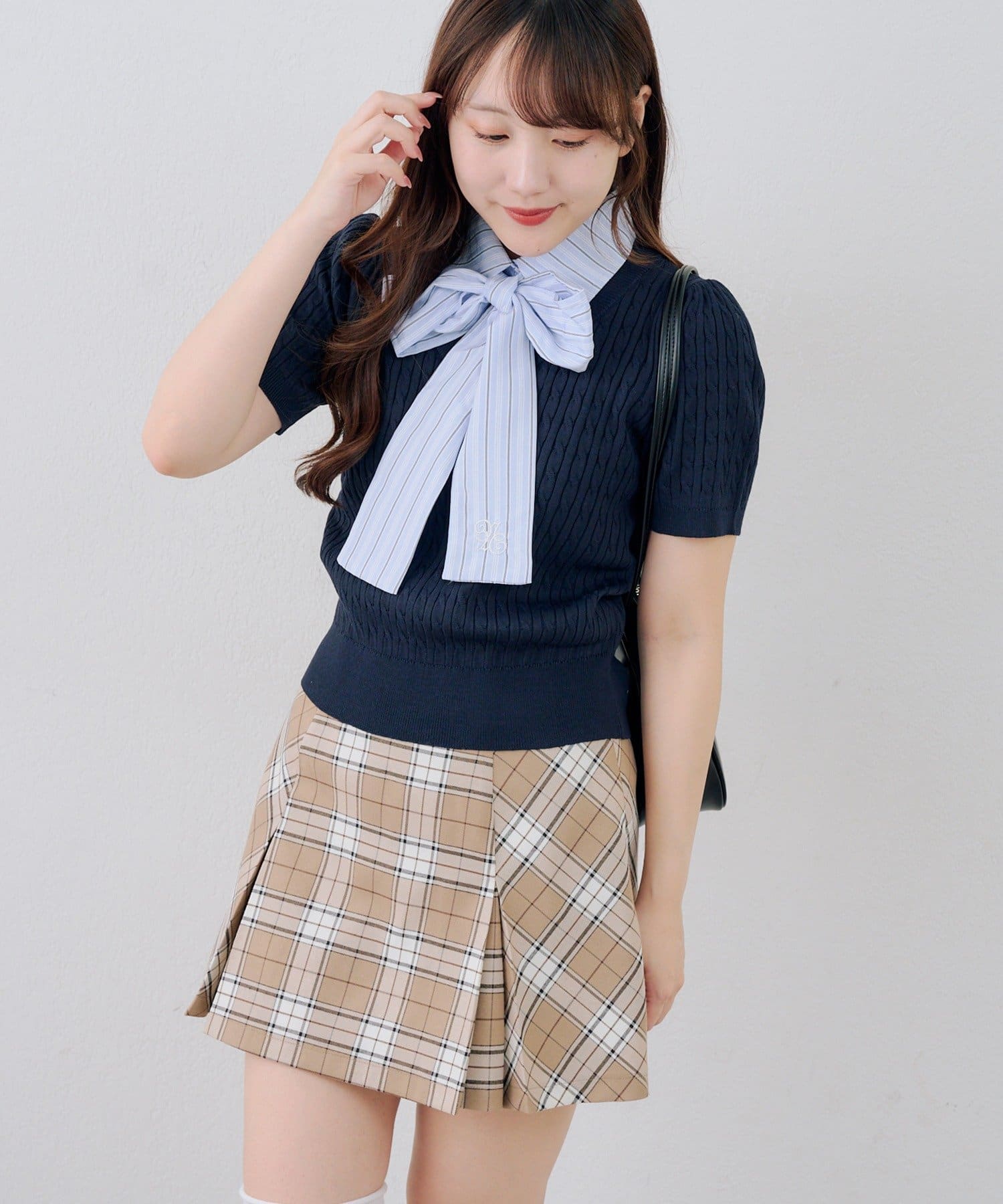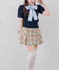 ・チェック柄のスカートと合わせて、とことんガーリーに