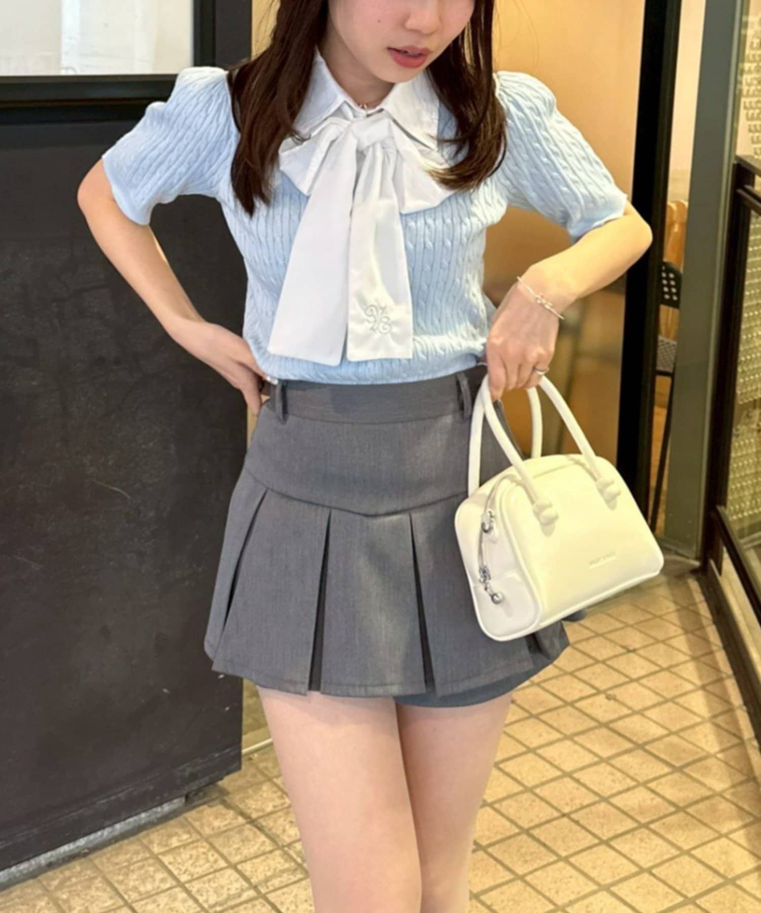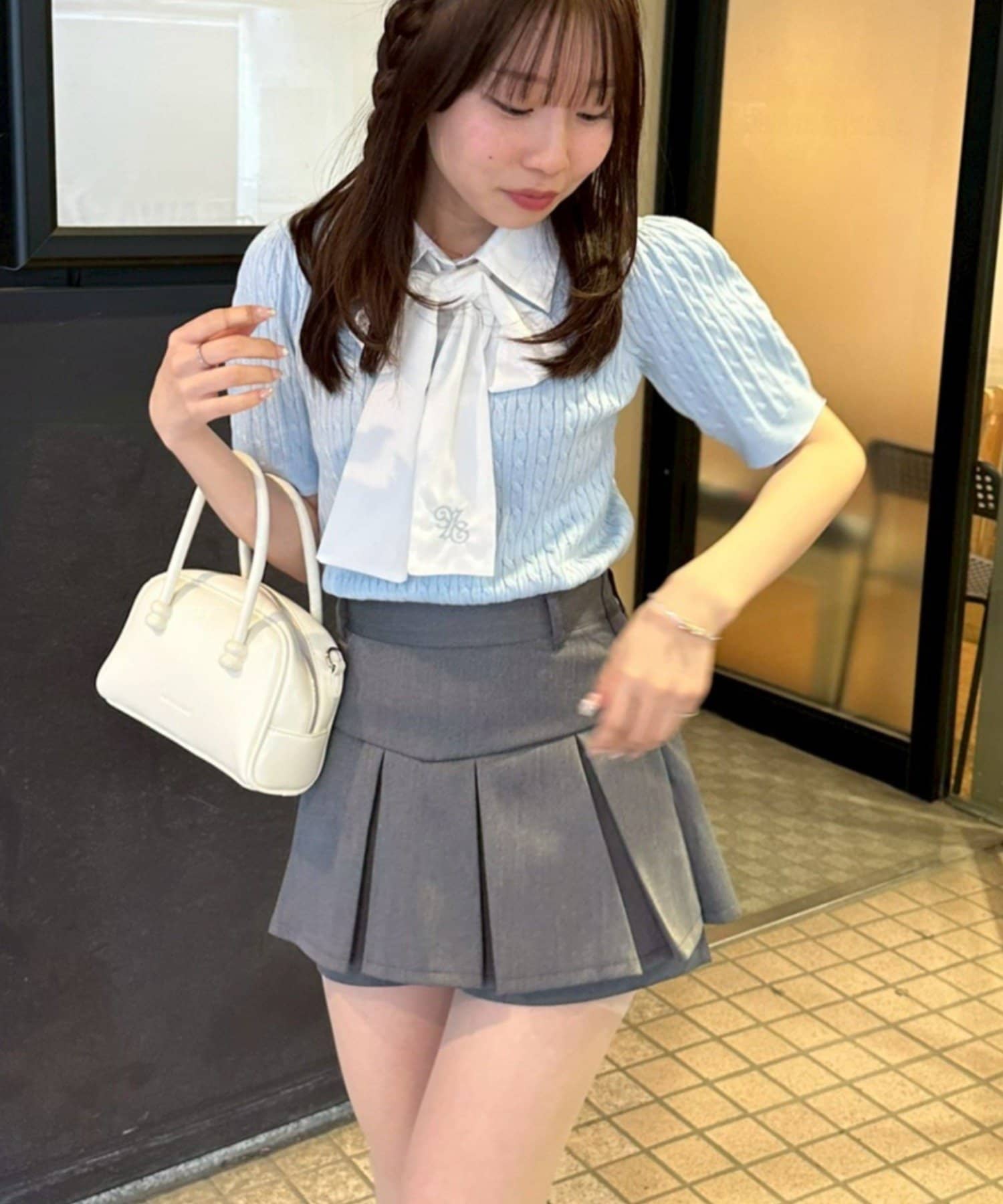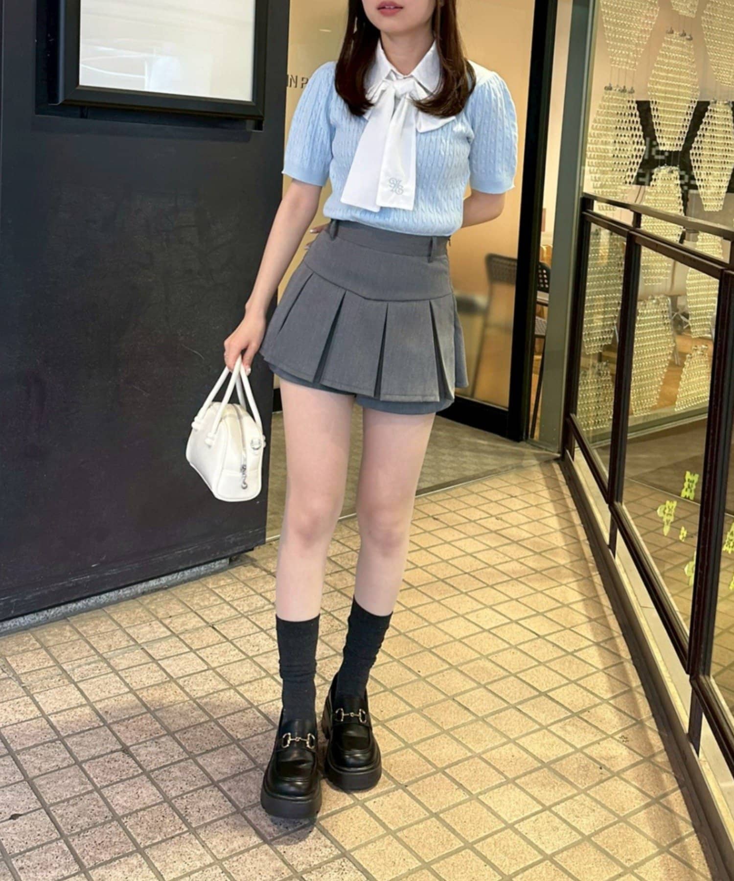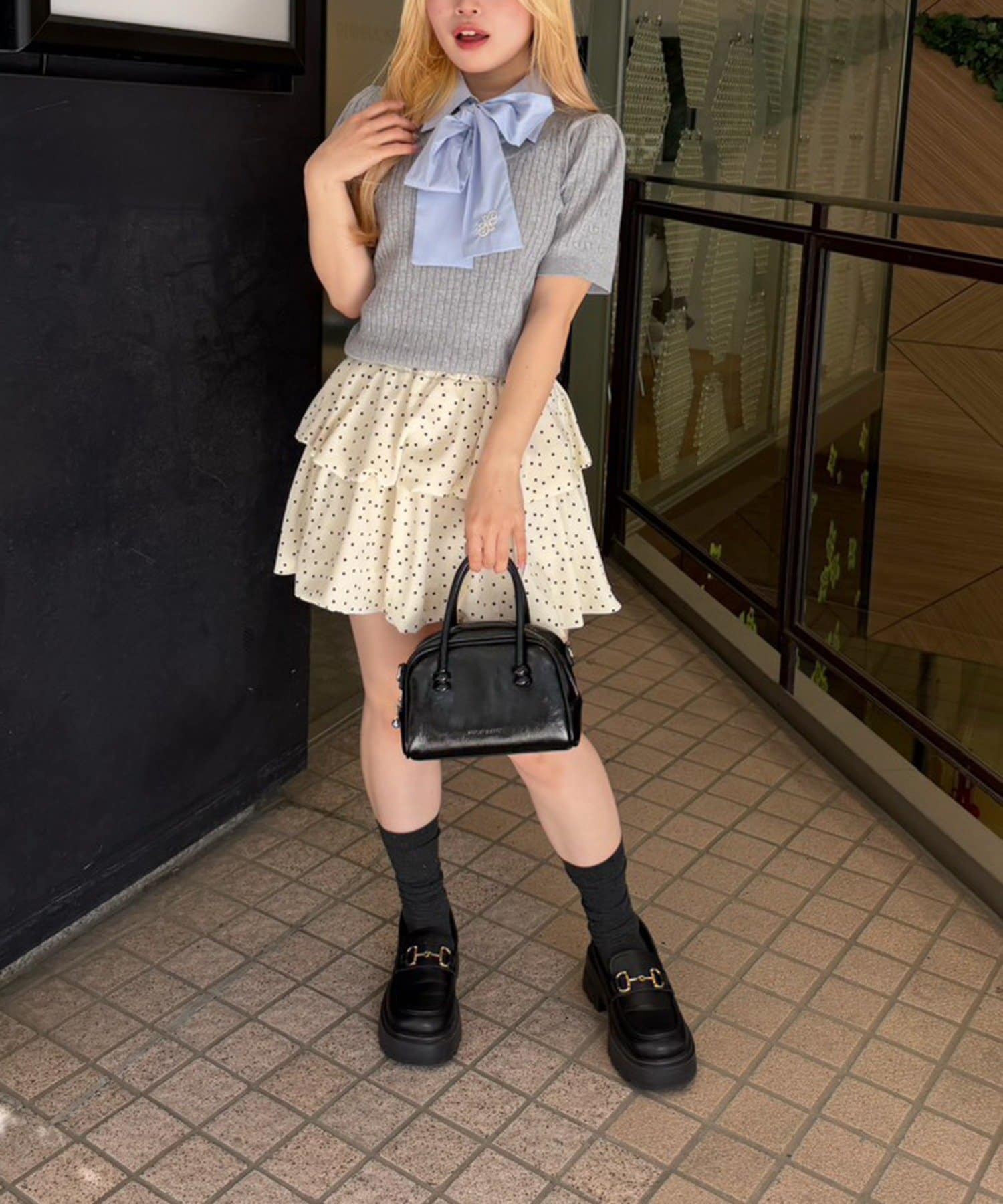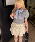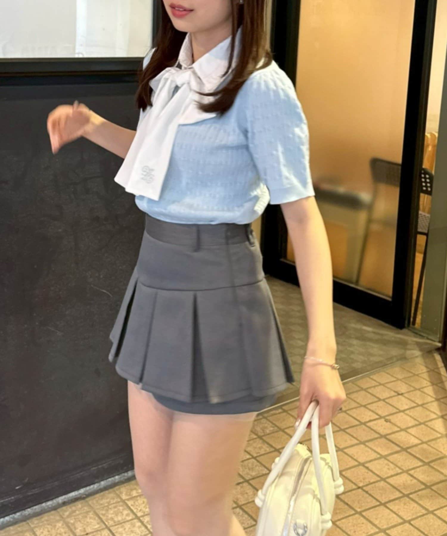 ・チェック柄のスカートと合わせて、とことんガーリーに
