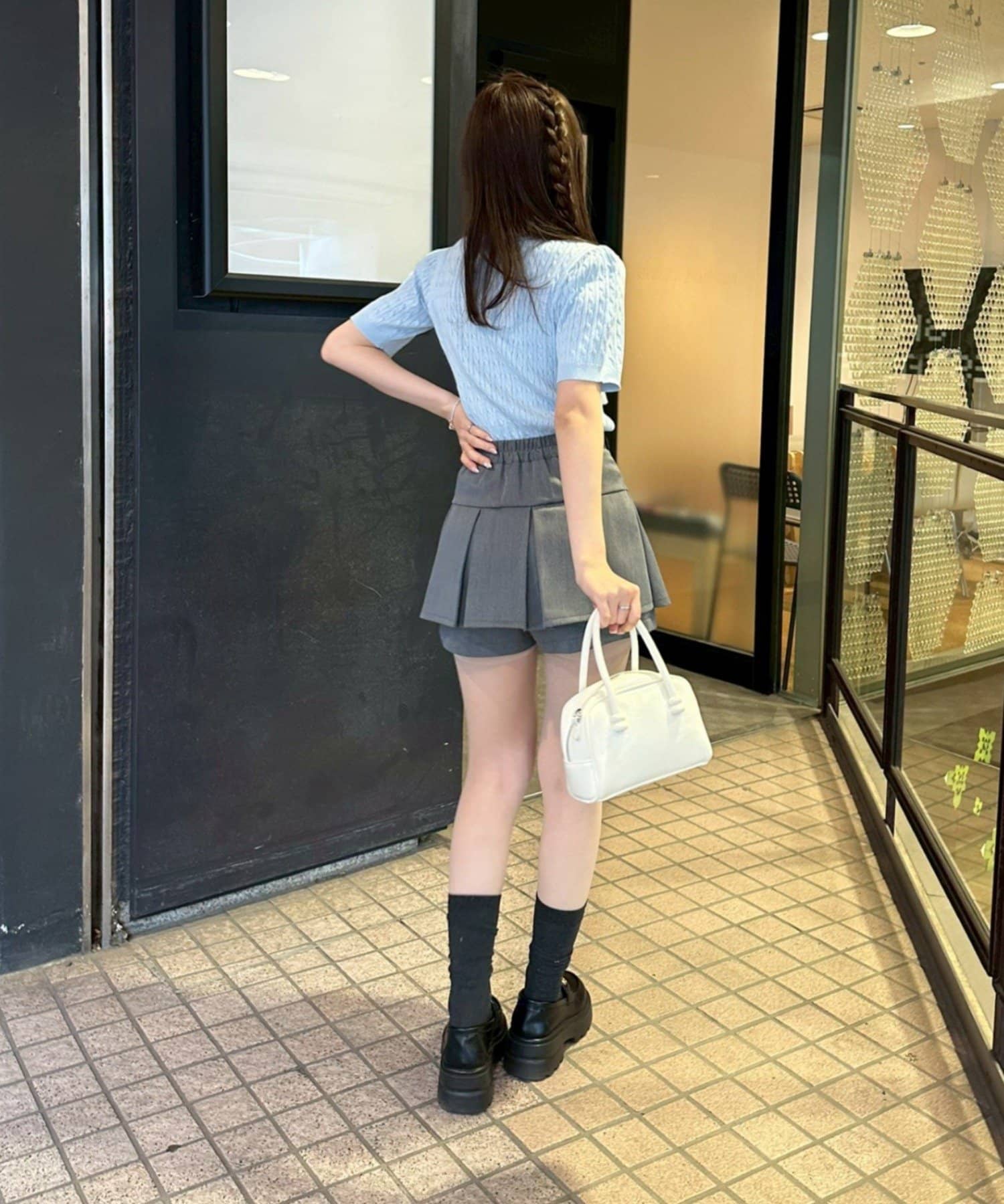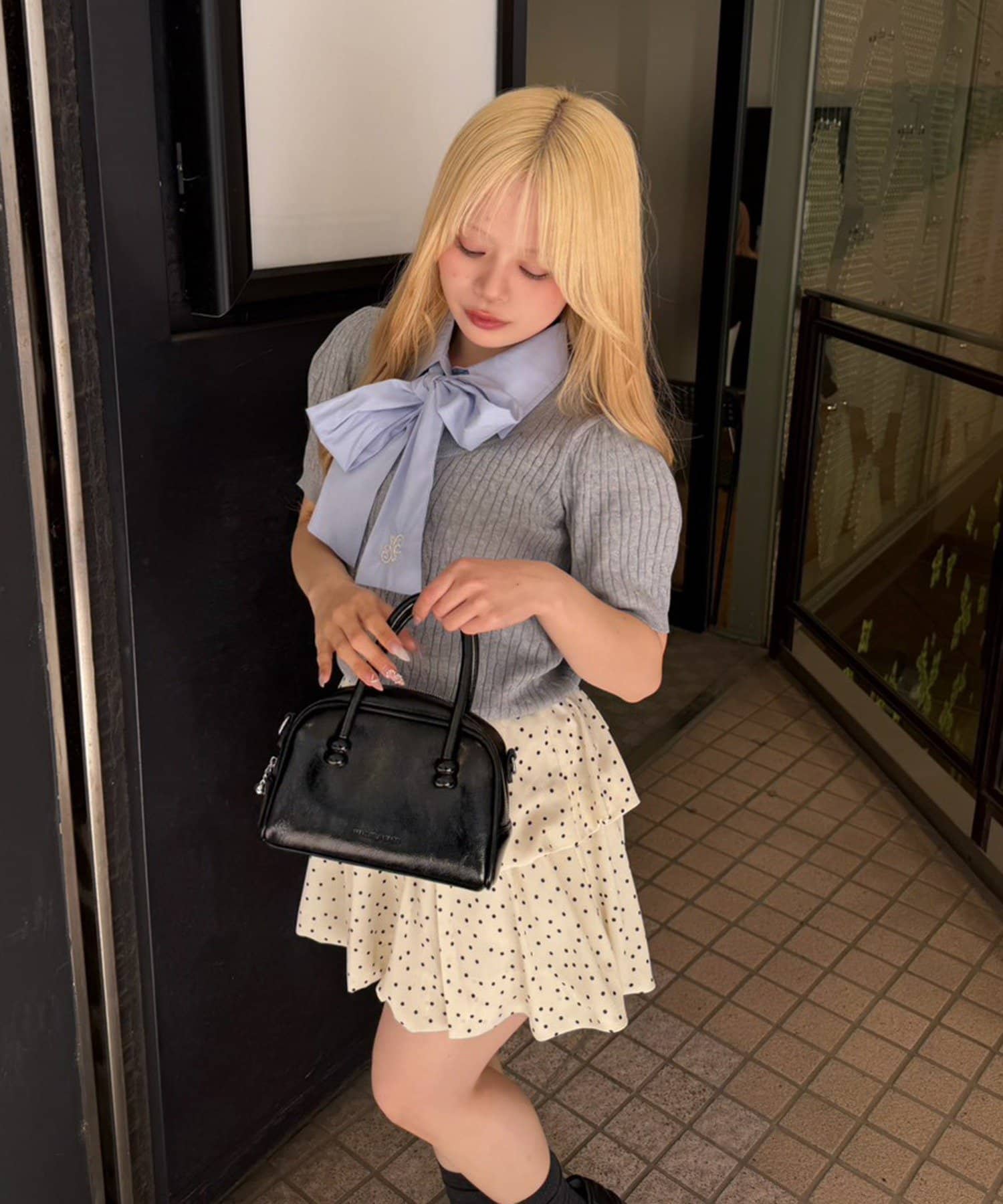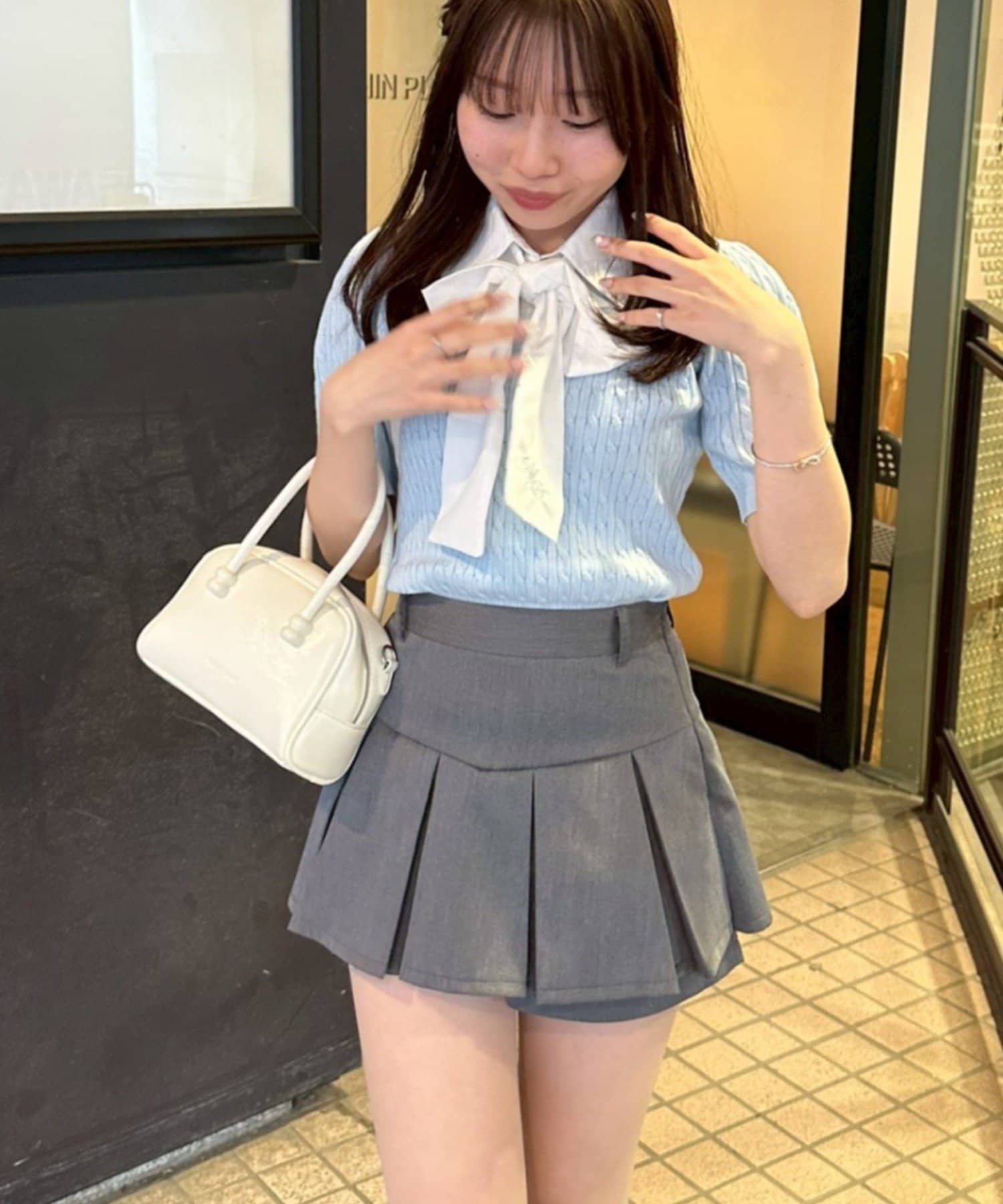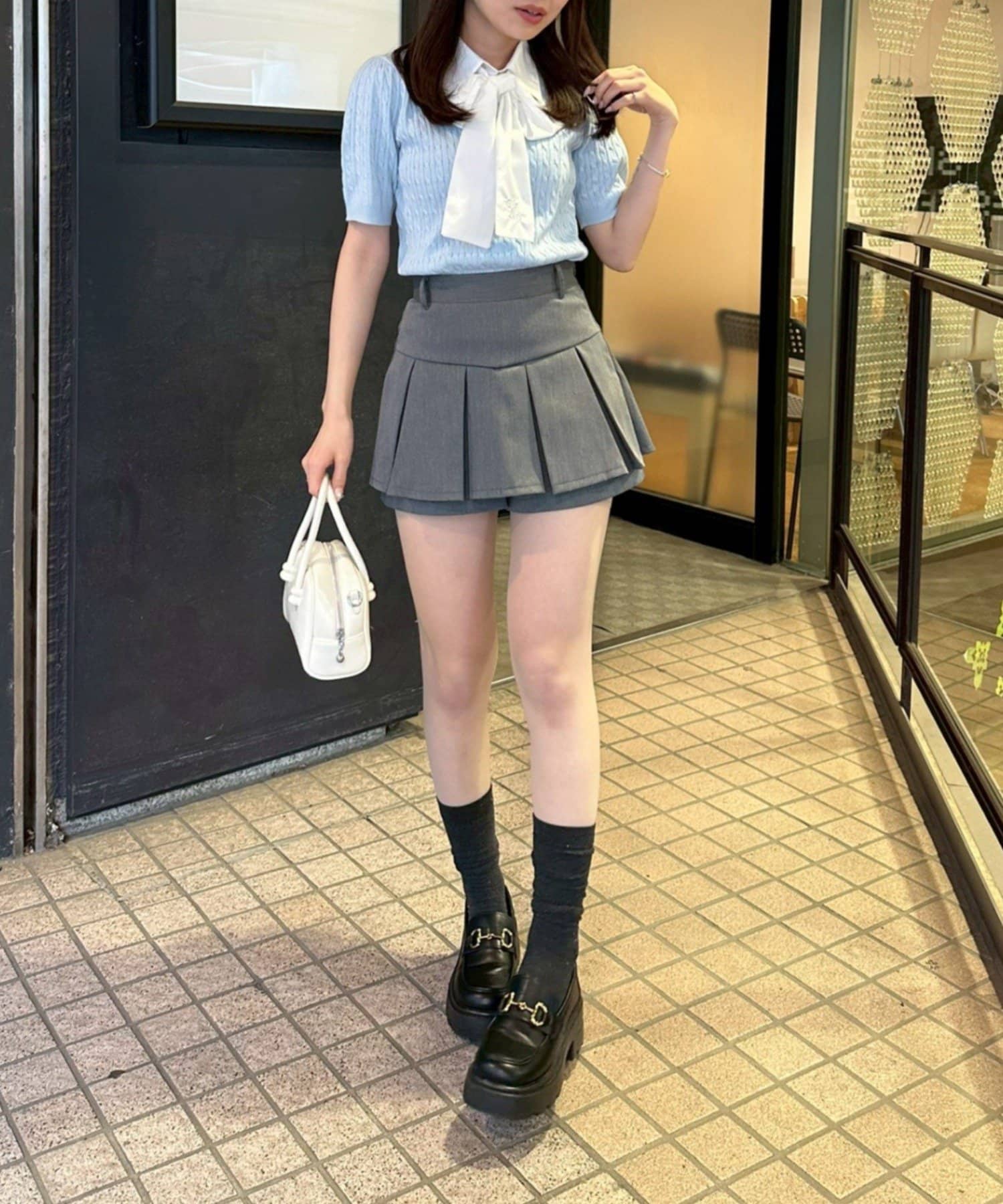 ・チェック柄のスカートと合わせて、とことんガーリーに