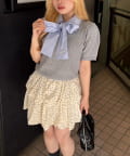 • NICE CLAUP / OLIVE des OLIVE OUTLET(ナイスクラップ  / オリーブ デ オリーブ アウトレット) 【continuer】リボン取り外し可能!ケーブル半袖ニット