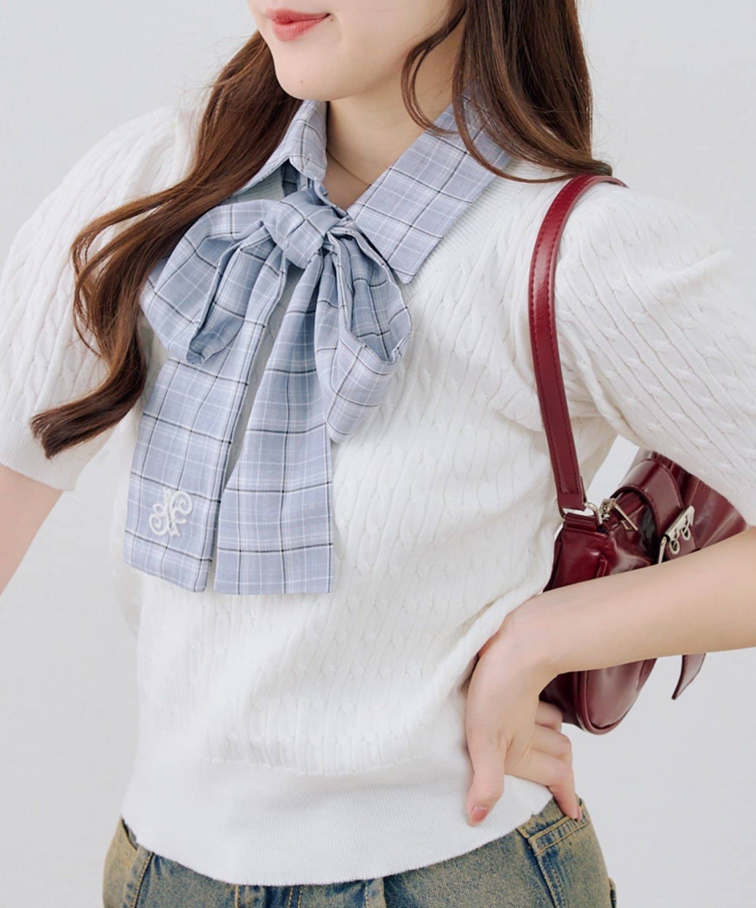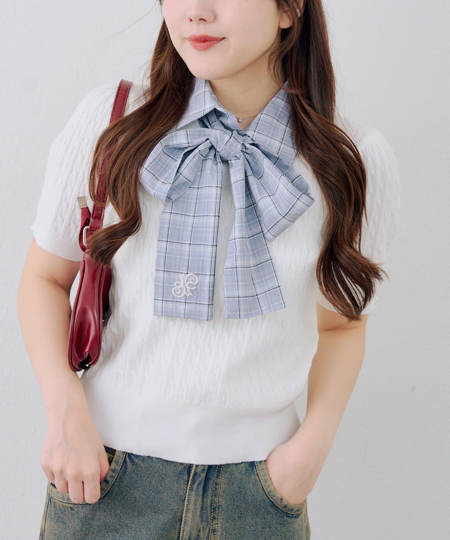 ・上品な着こなしを叶える、リボン付きニットトップス