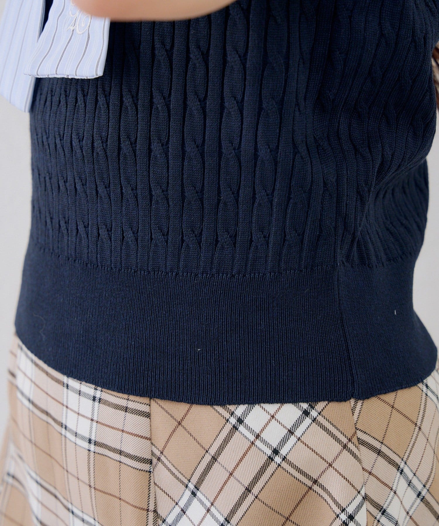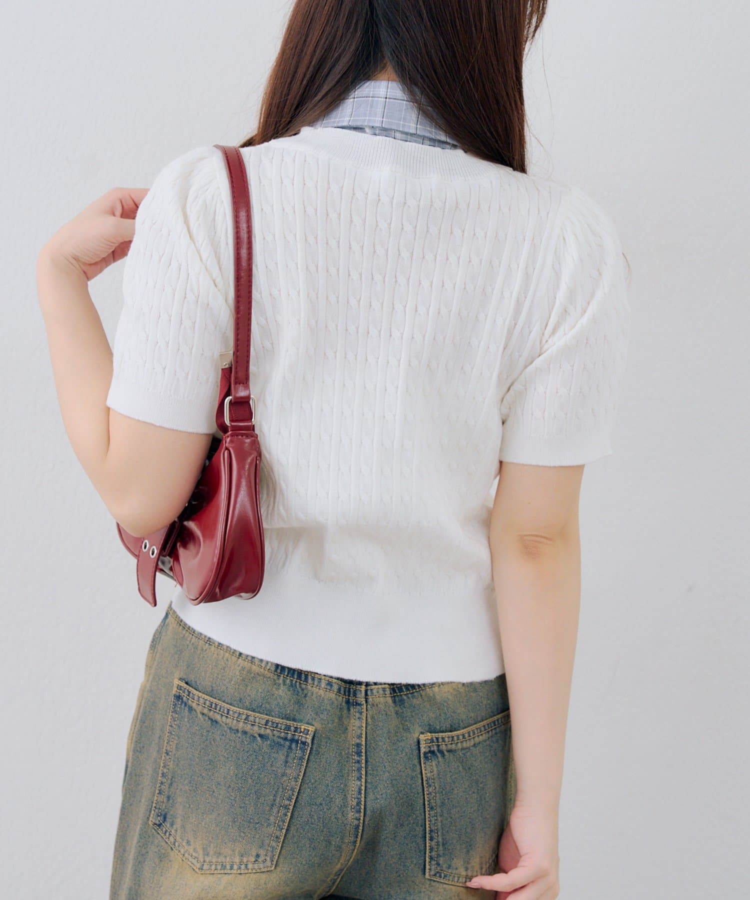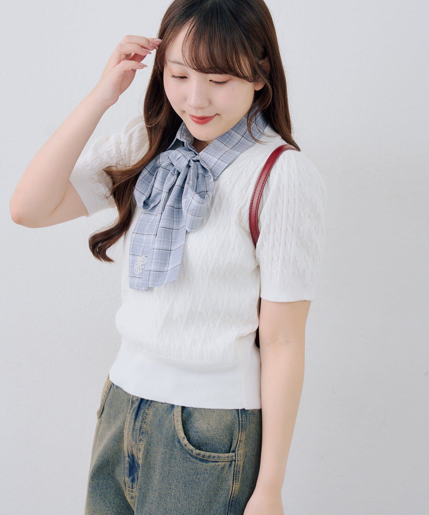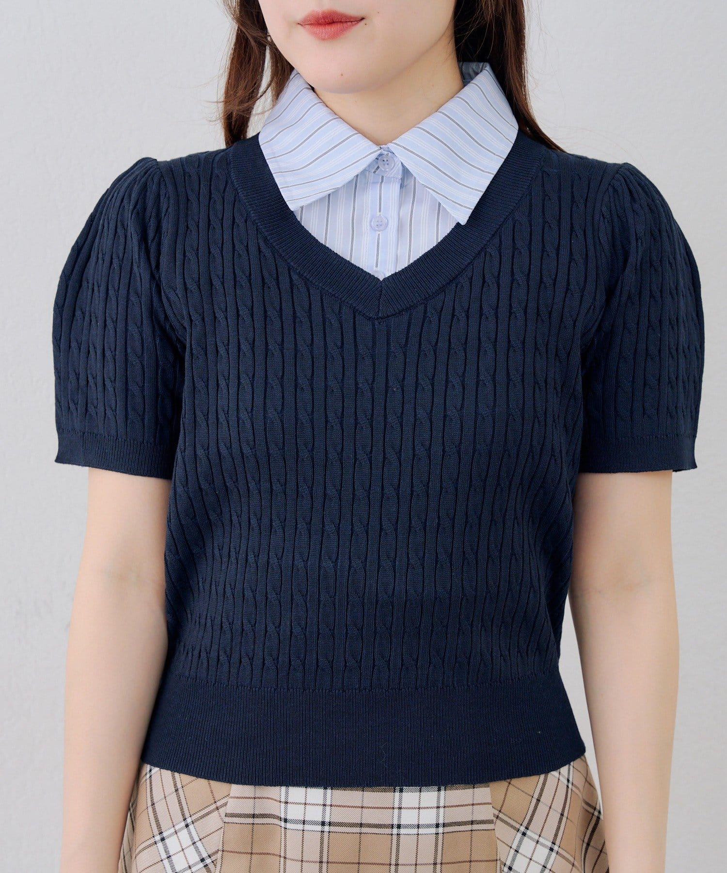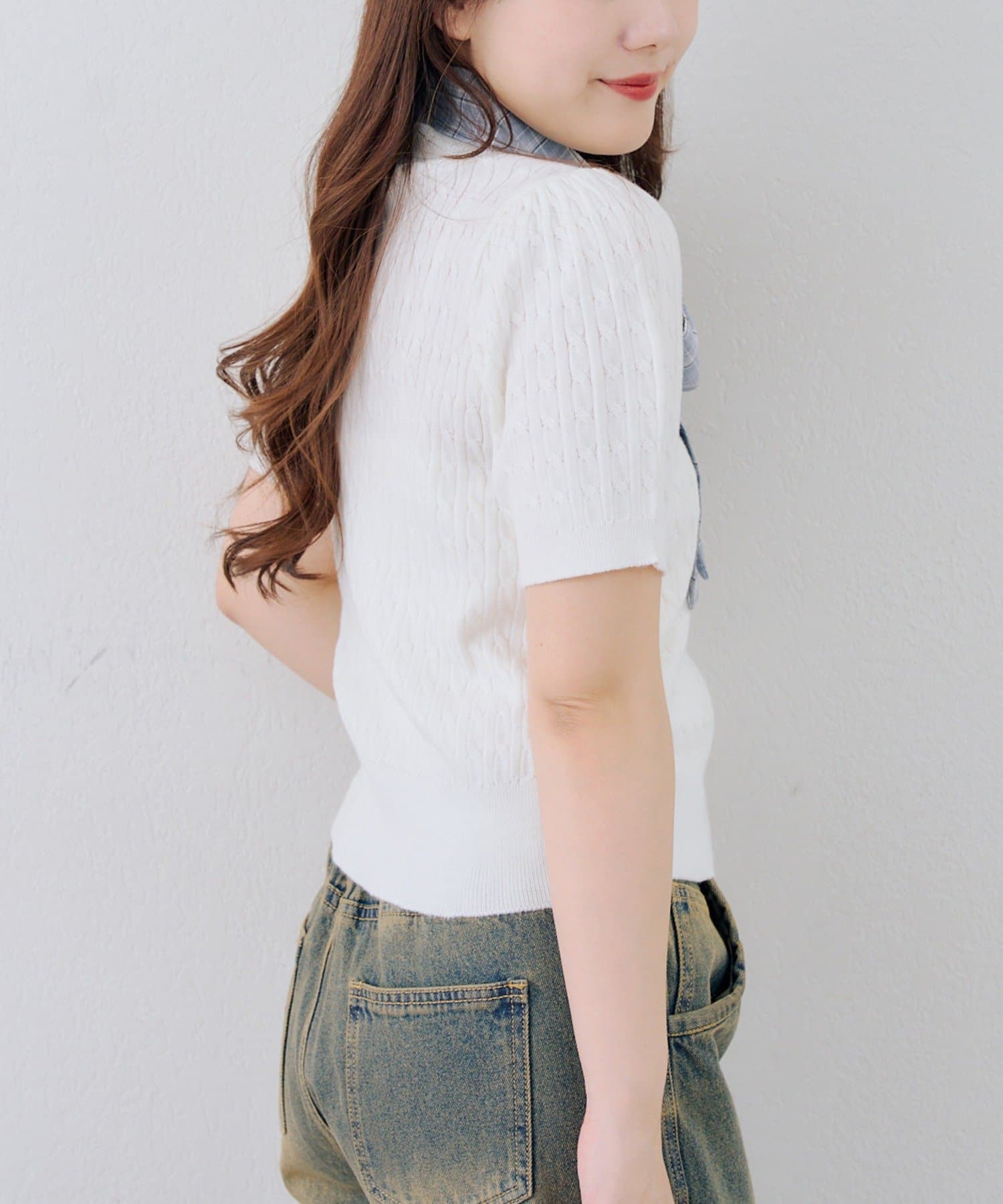 【continuer】リボン取り外し可能!ケーブル半袖ニット