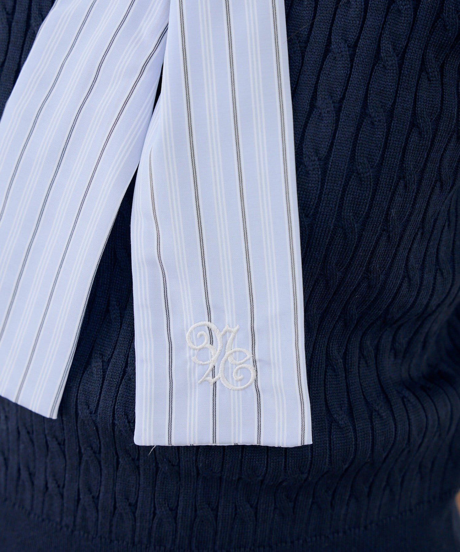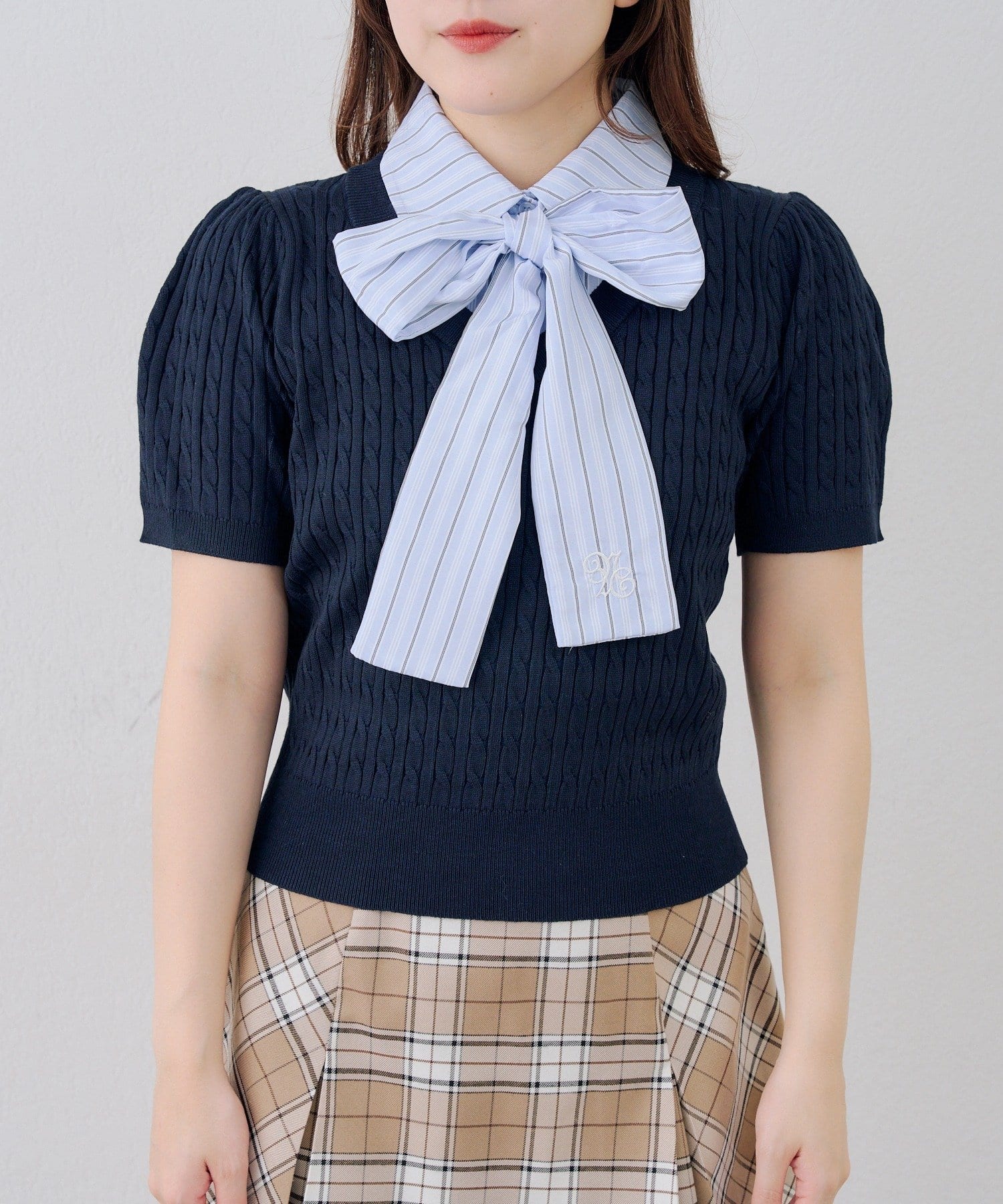 ・ニットにストライプのリボンが、清楚でクラシカルな印象を与えます