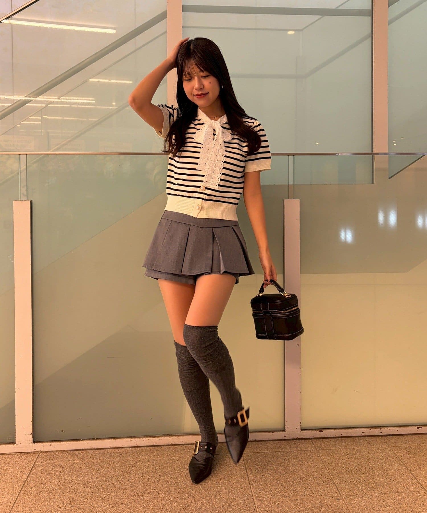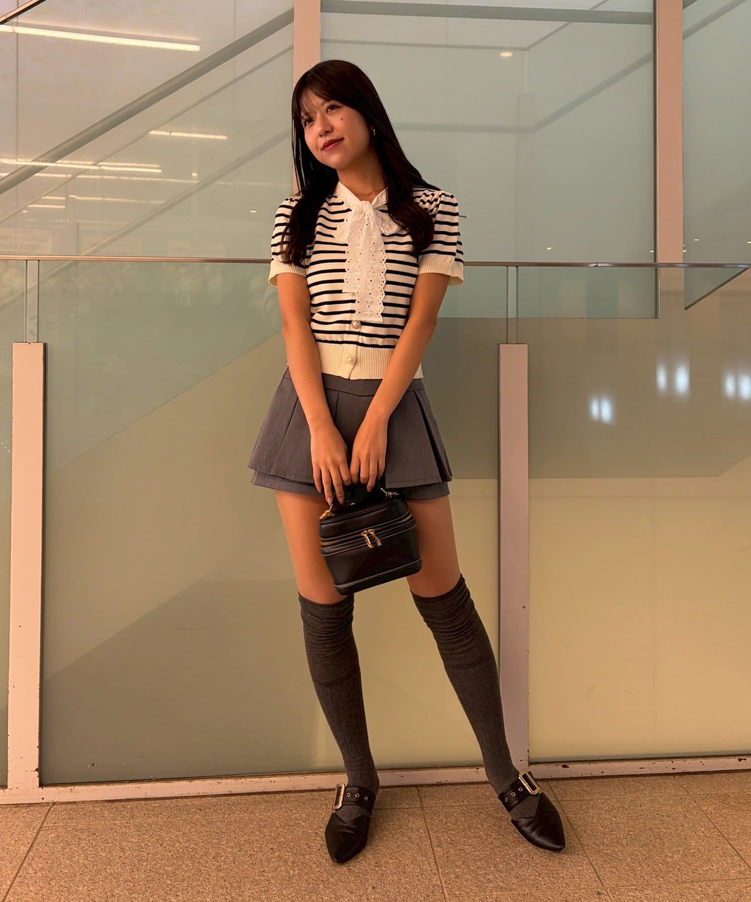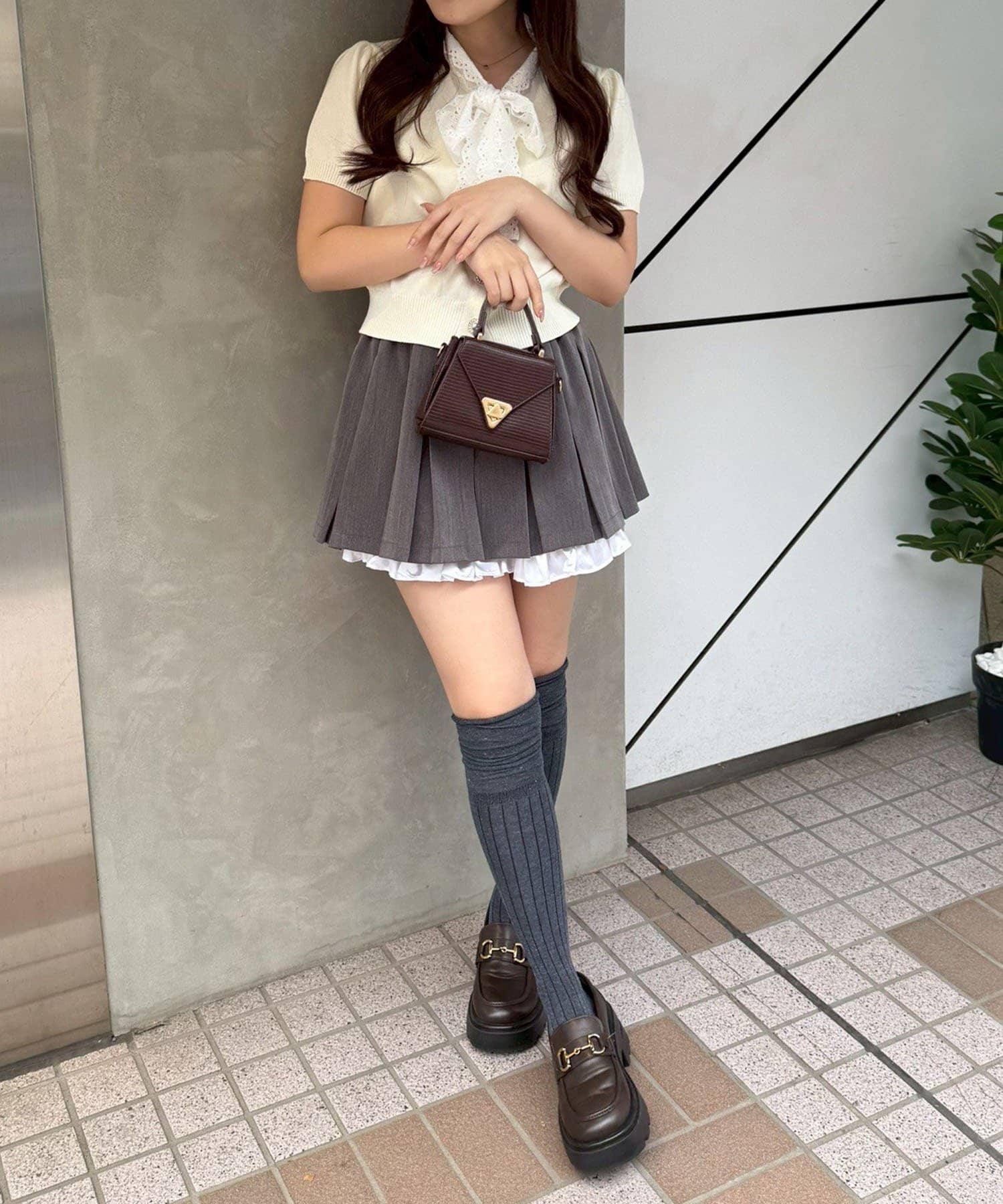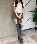 ・きれいめパンツやタイトスカートと合わせて、オフィスにもぴったりの上品なスタイルに。パンプスで大人っぽくまとめて