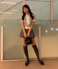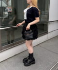 ・デニムやカットソーと合わせて、ラフでカジュアルな着こなしに。足元はスニーカーで軽快さをプラス