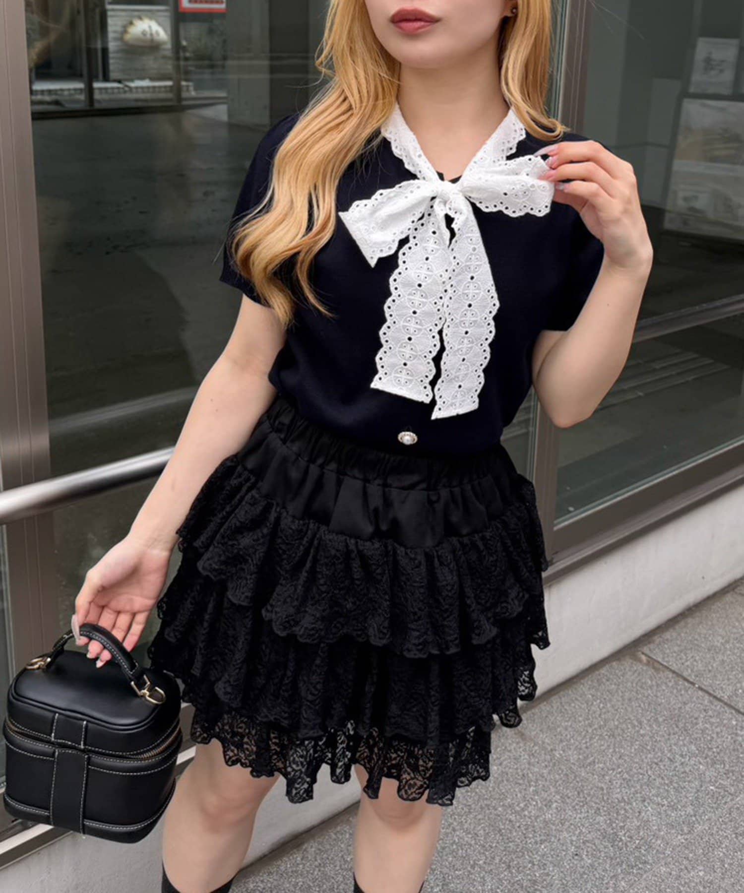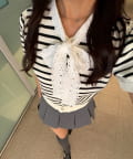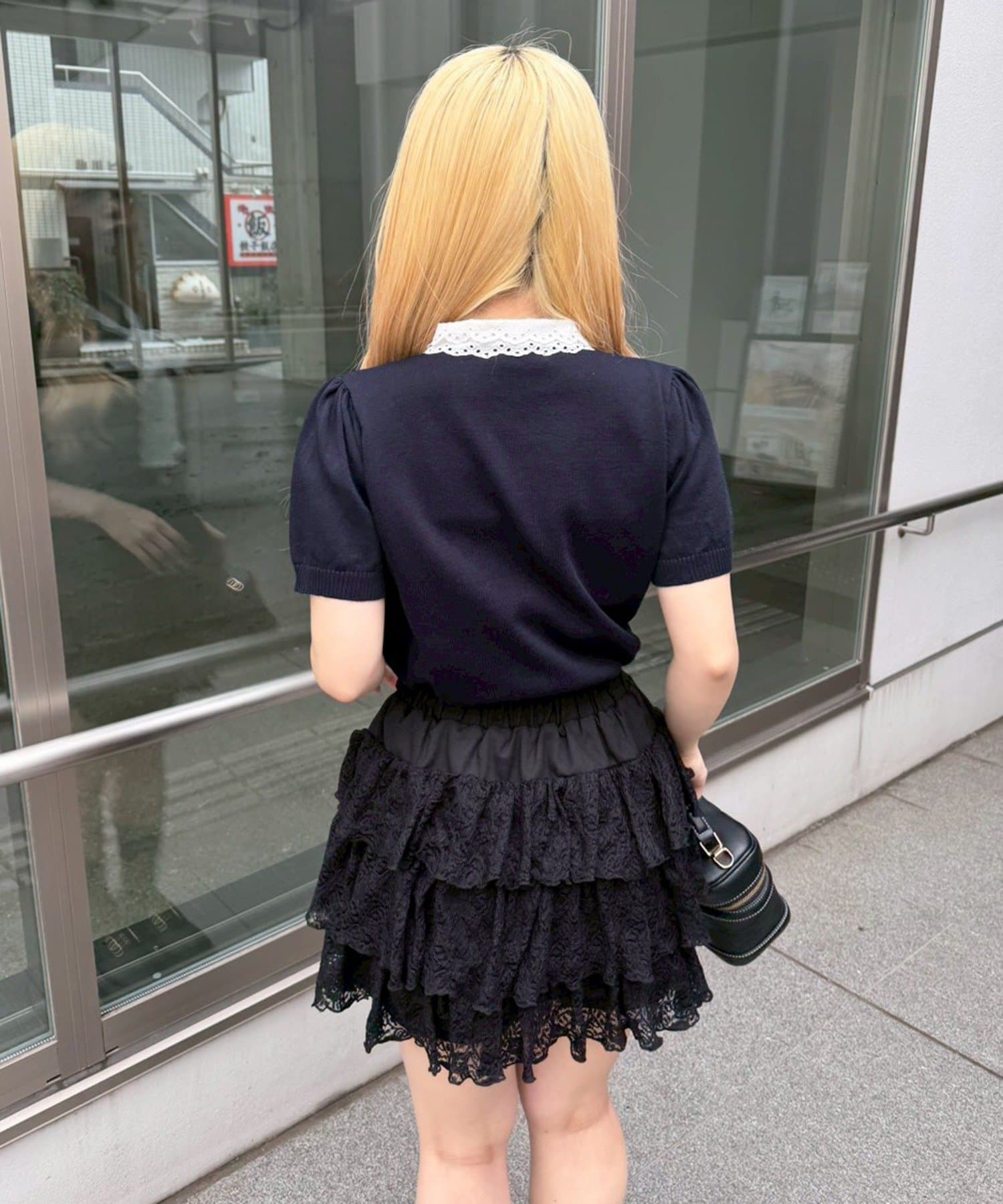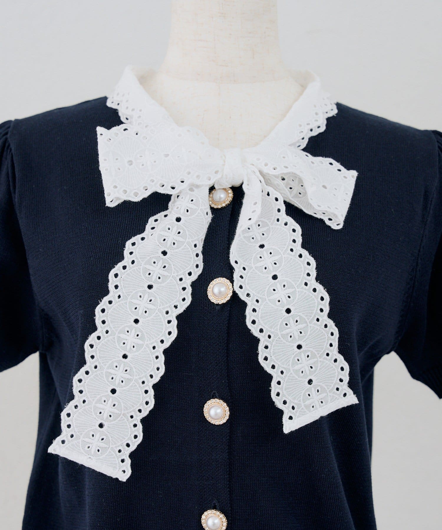 【continuer】レースボウタイニット