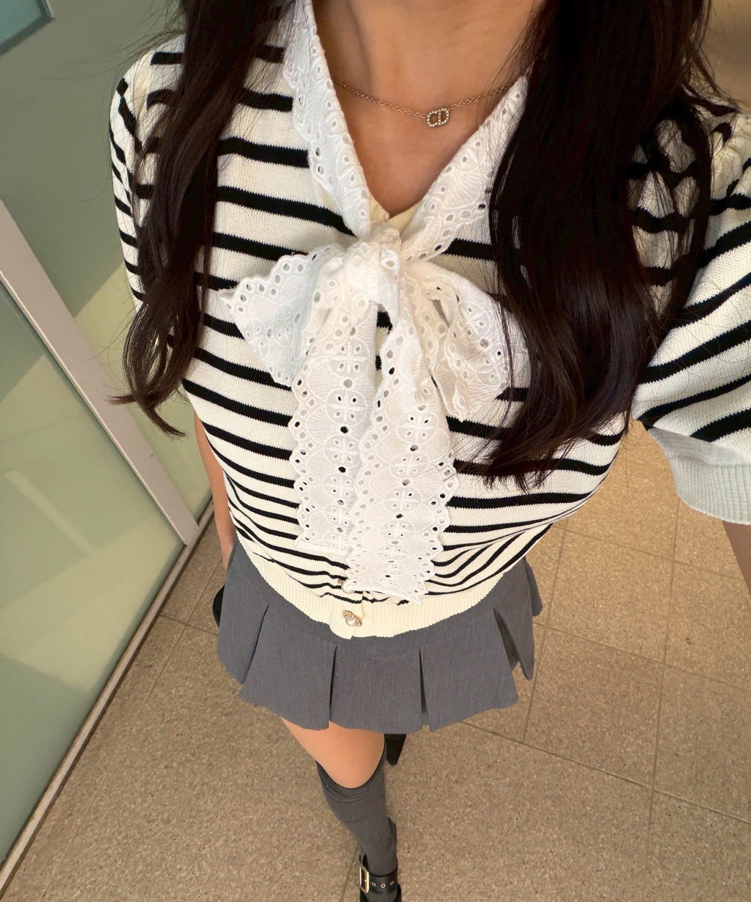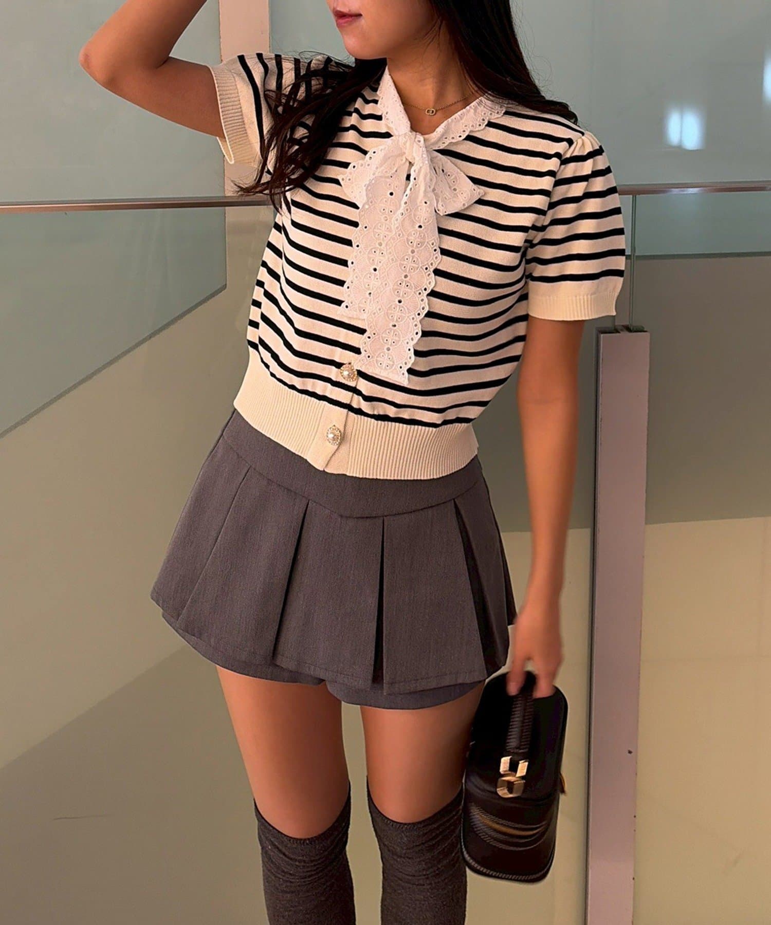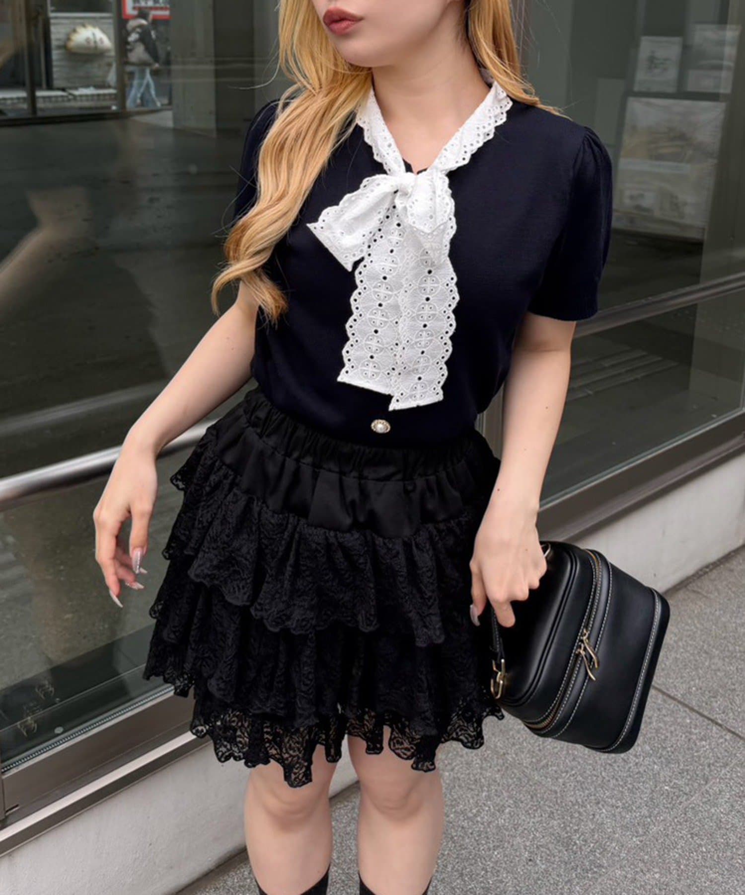 【continuer】レースボウタイニット