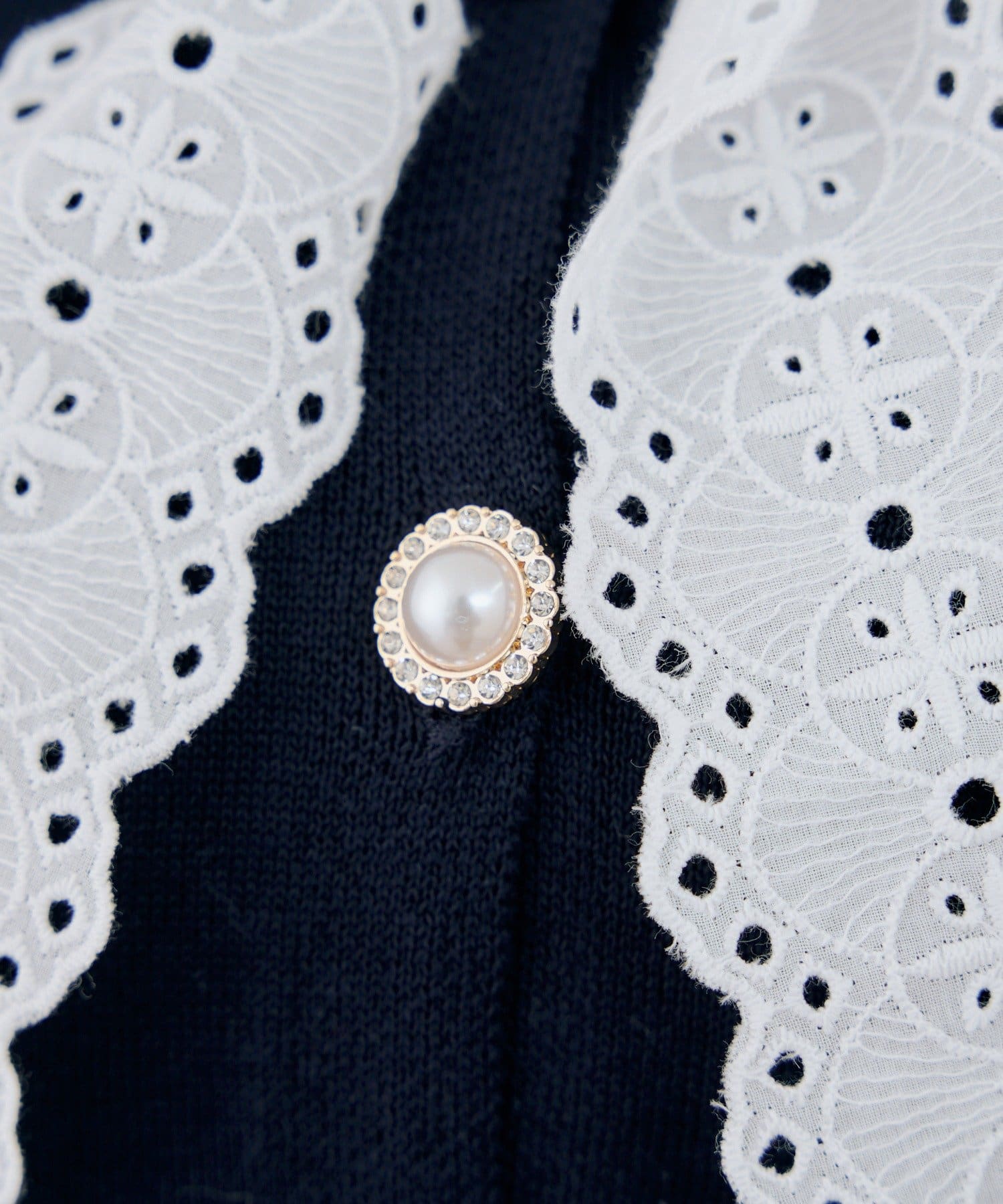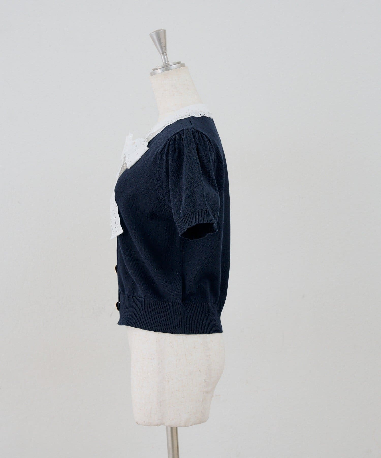 ・繊細なレースがアクセントになり、上品な印象をプラスするカーディガン