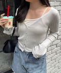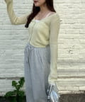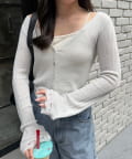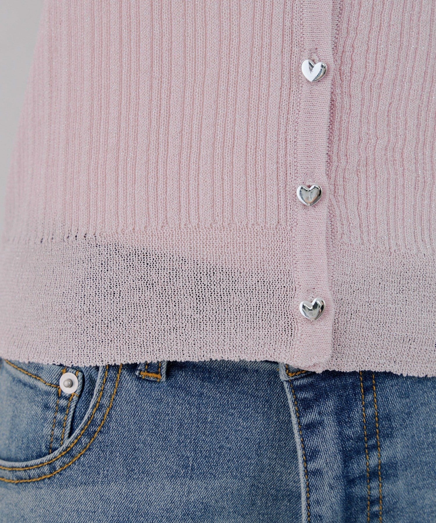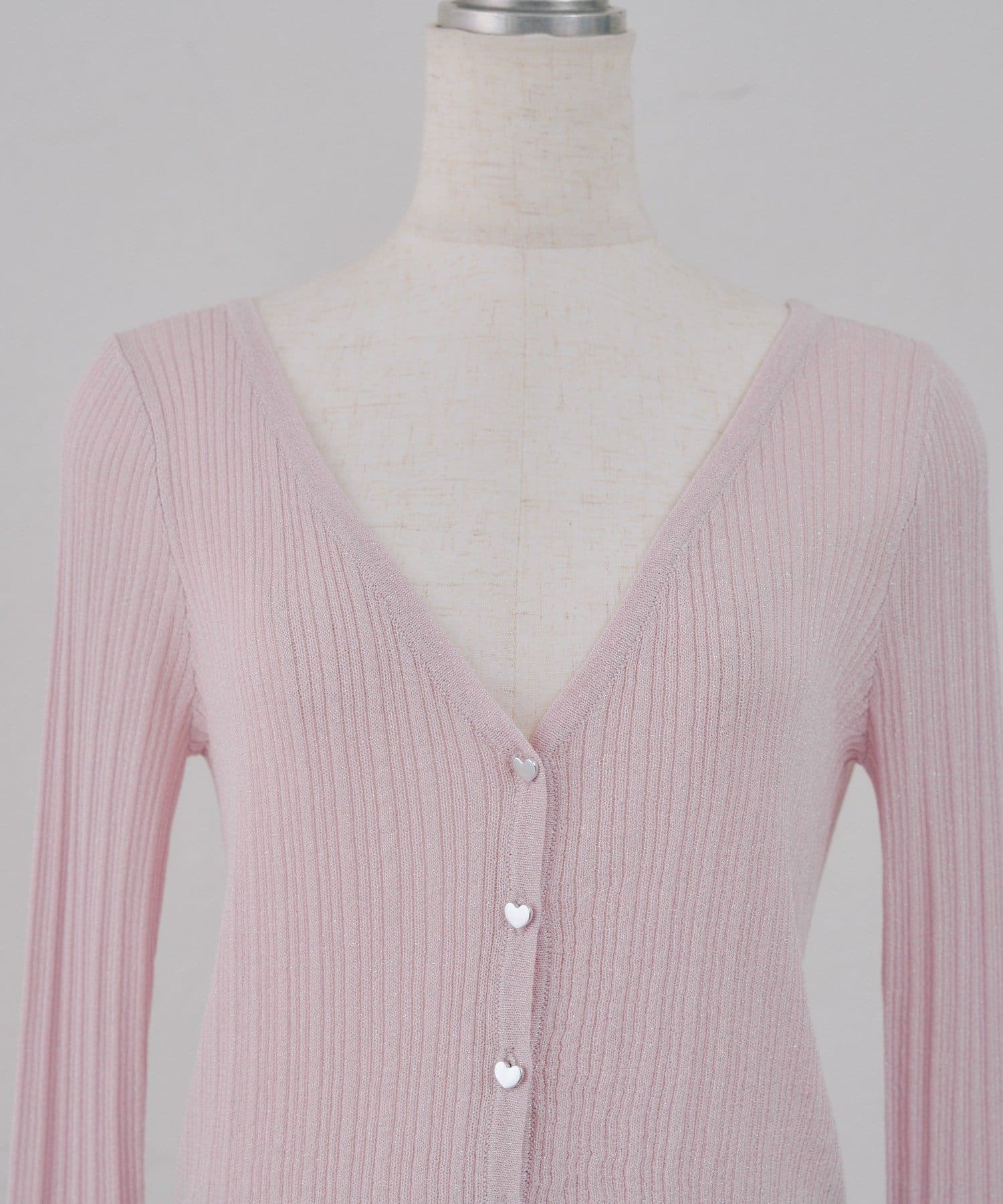 ・ラメ素材の透け感とハートボタンにときめく長袖カーディガン