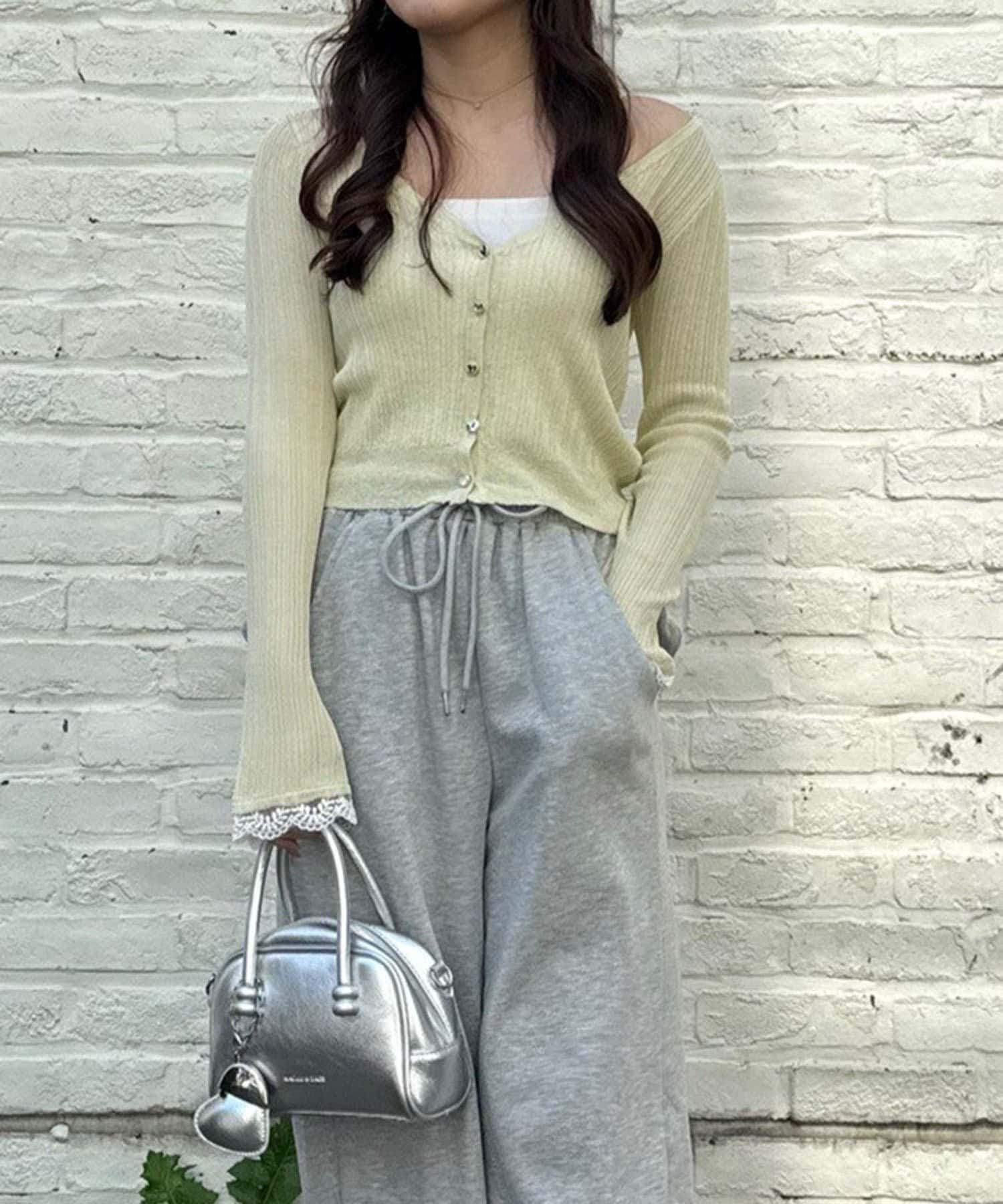 TOP > Remind me and forever > レディース > トップス > カーディガン/ボレロ > 【chipiセレクト】ハートボタン袖レースラメカーデ