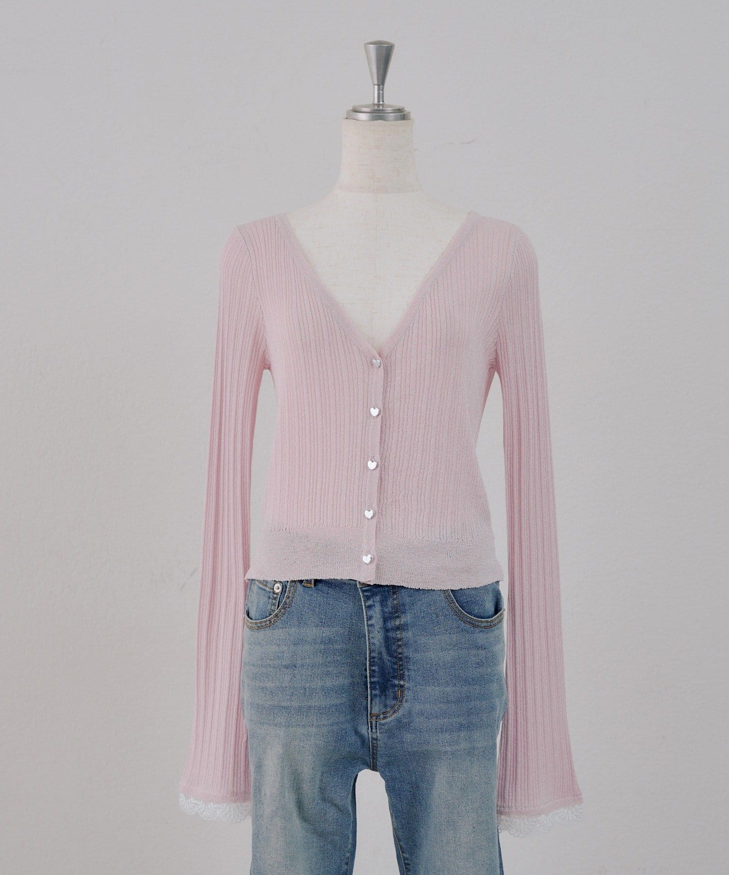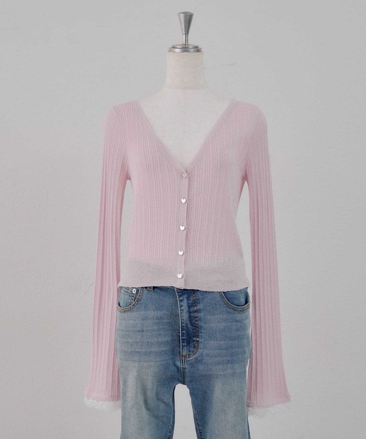 Remind me and forever(リマインドミーアンドフォーエバー) 【chipiセレクト】ハートボタン袖レースラメカーデ