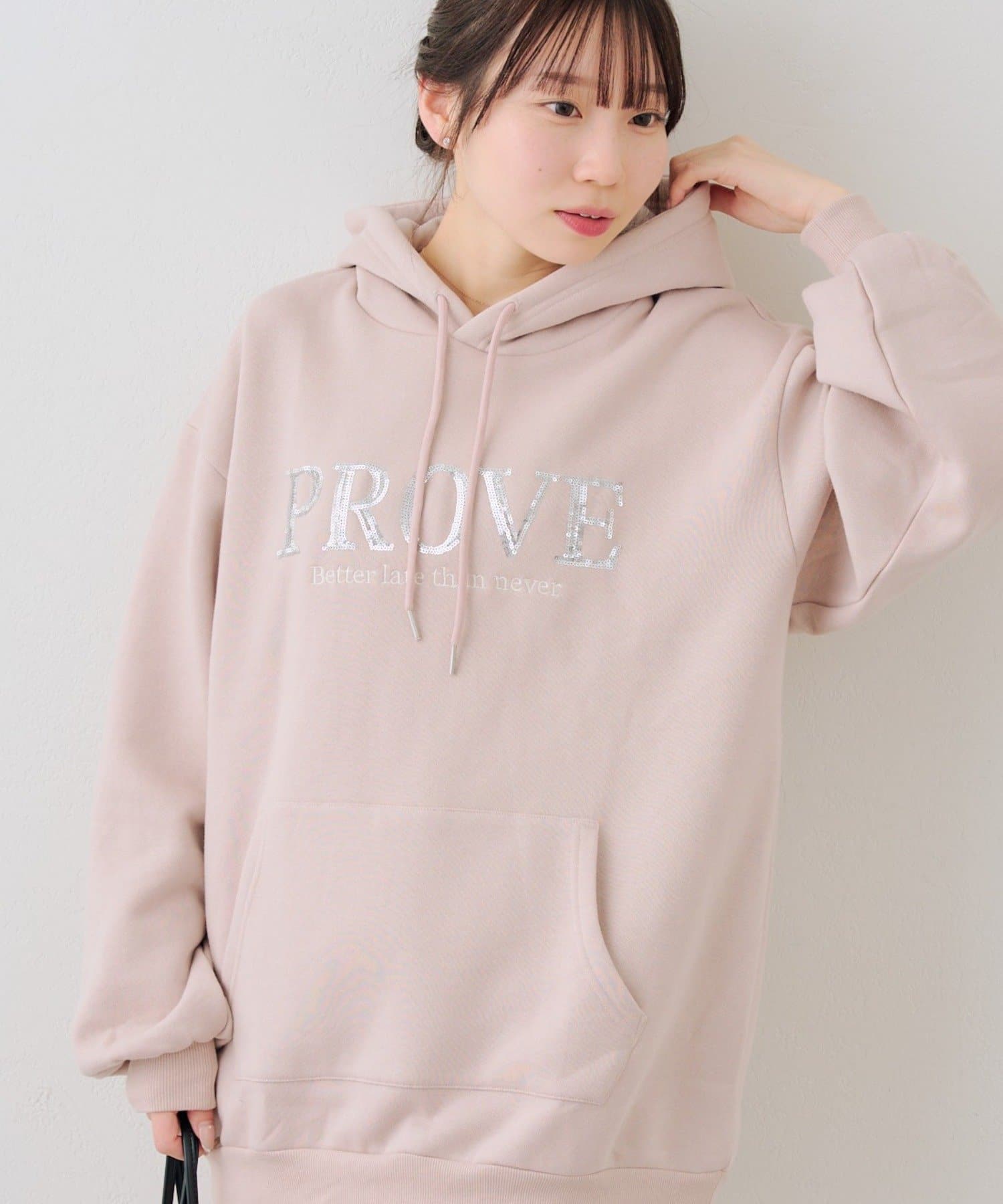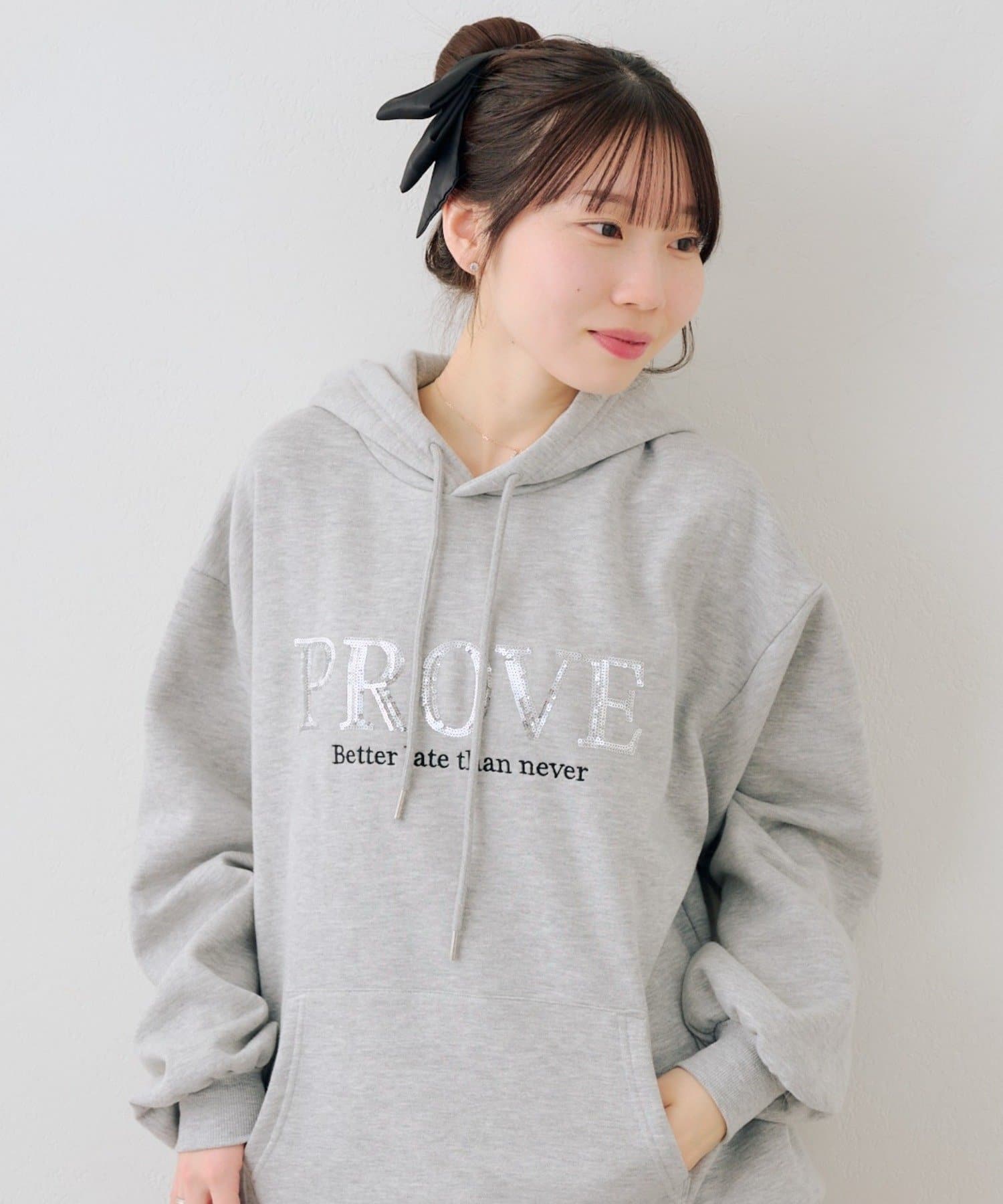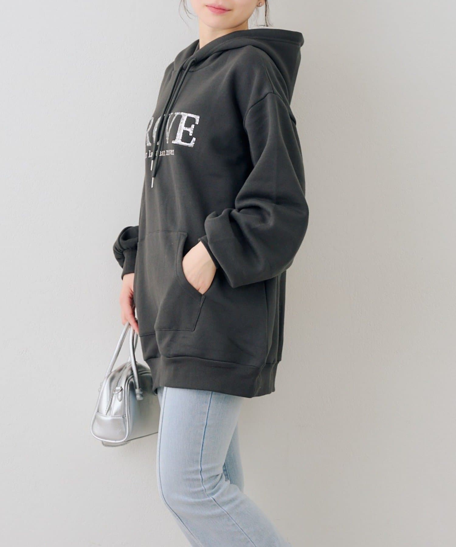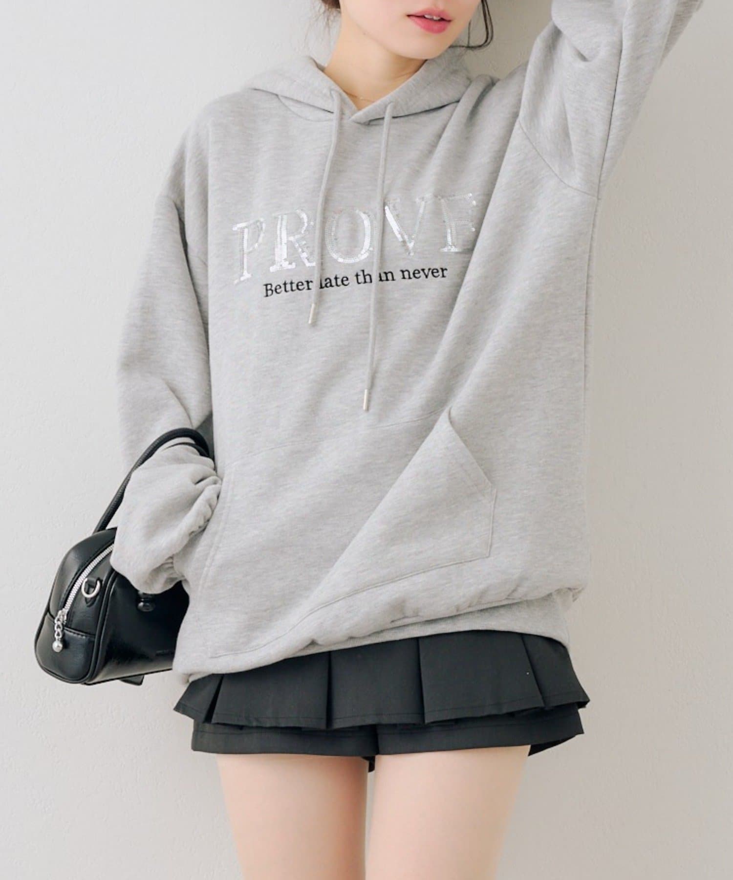 ・胸元のスパンコールロゴが可愛いパーカー