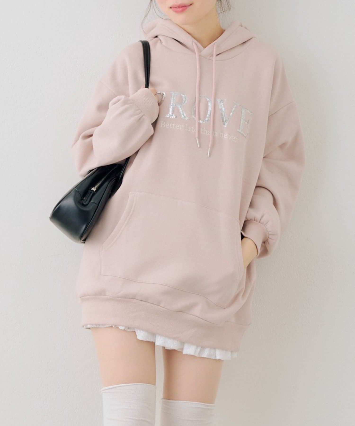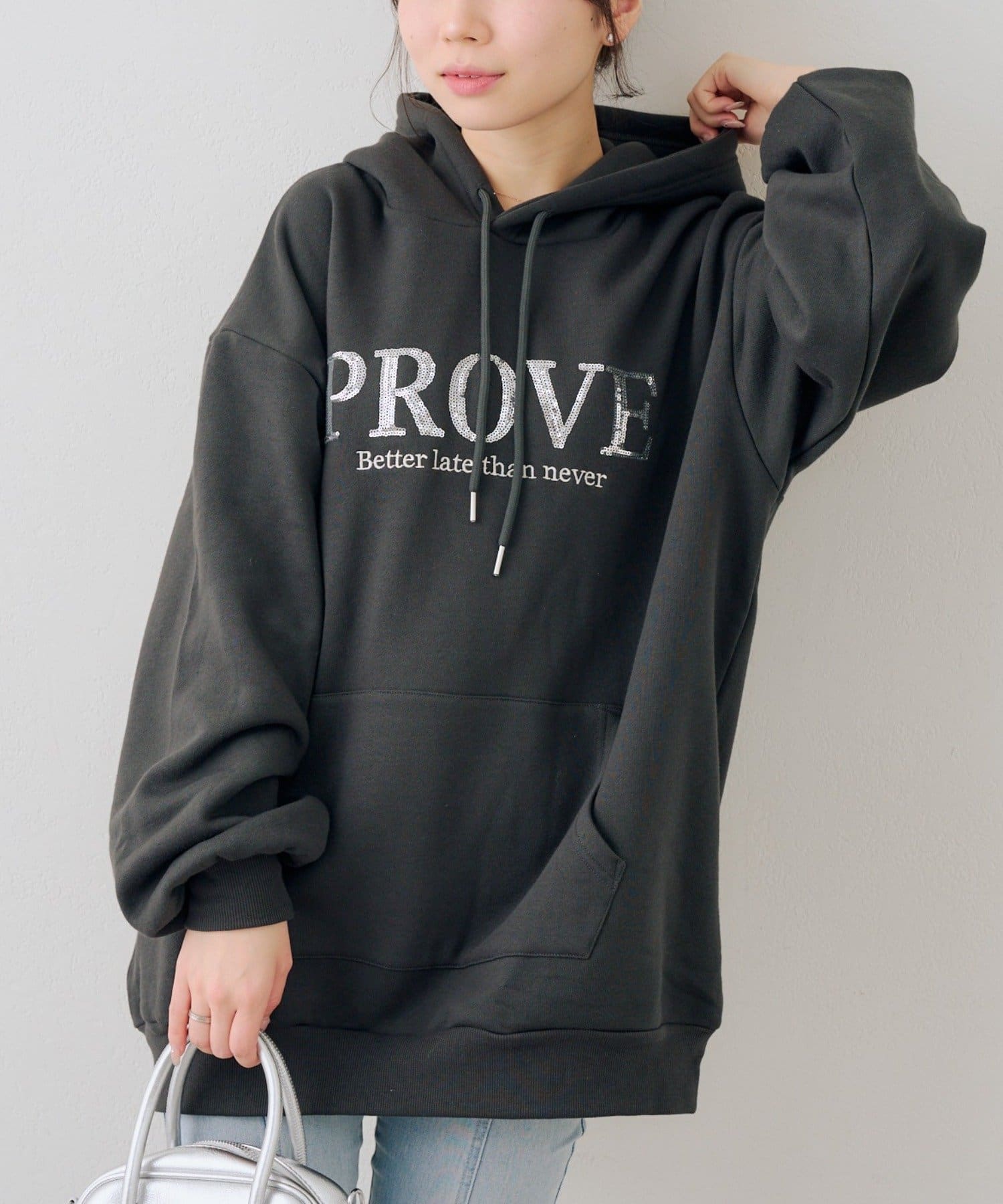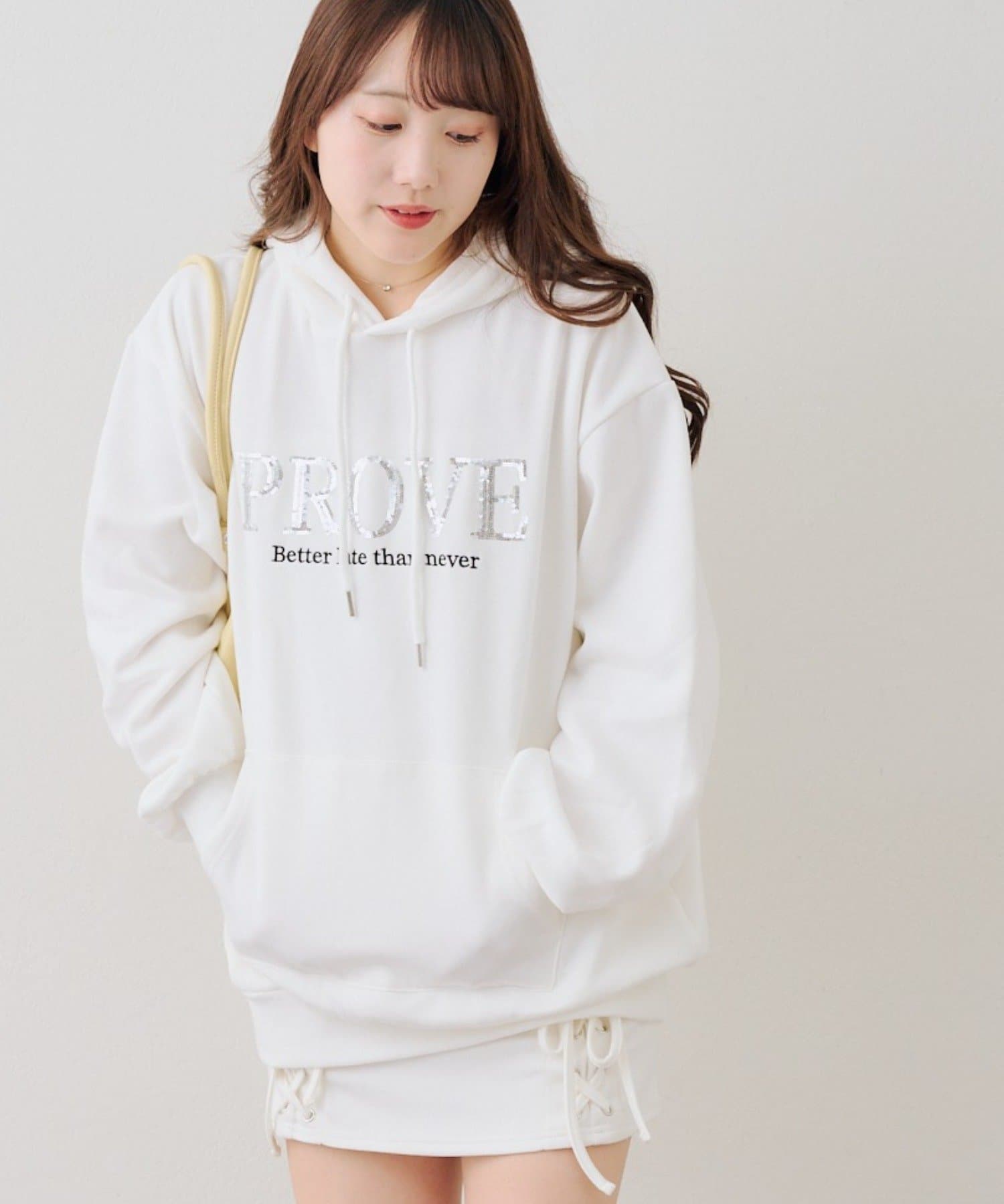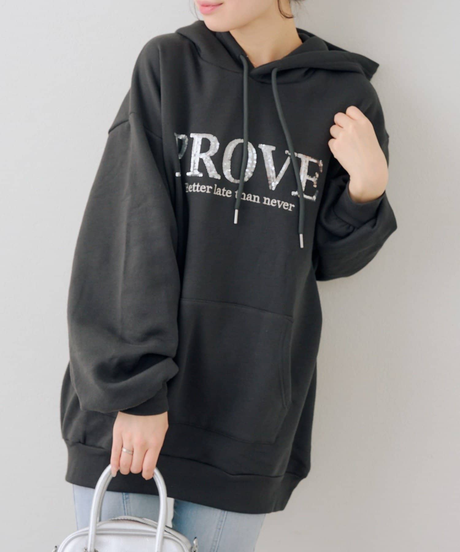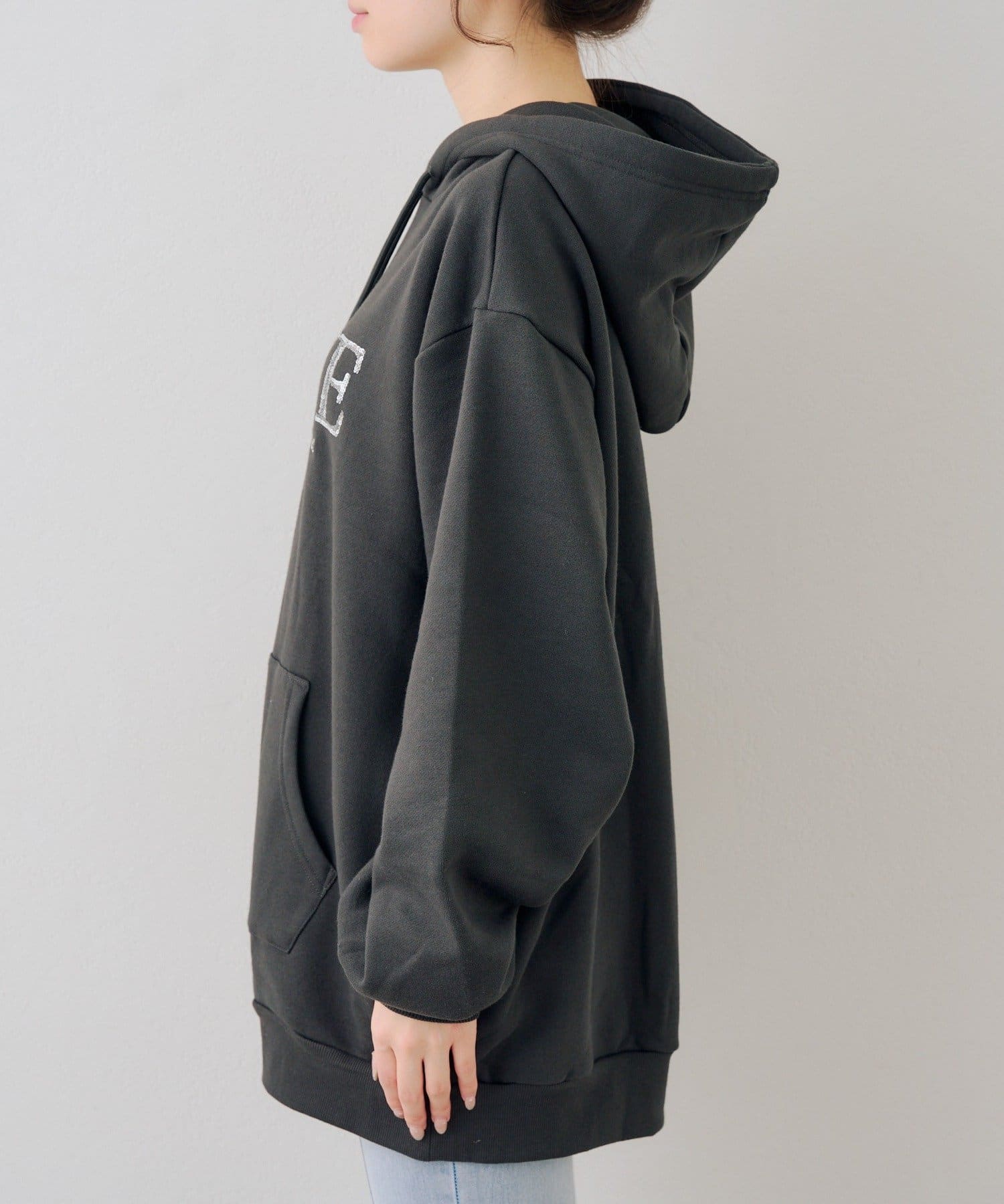 ・胸元のスパンコールロゴが可愛いパーカー
