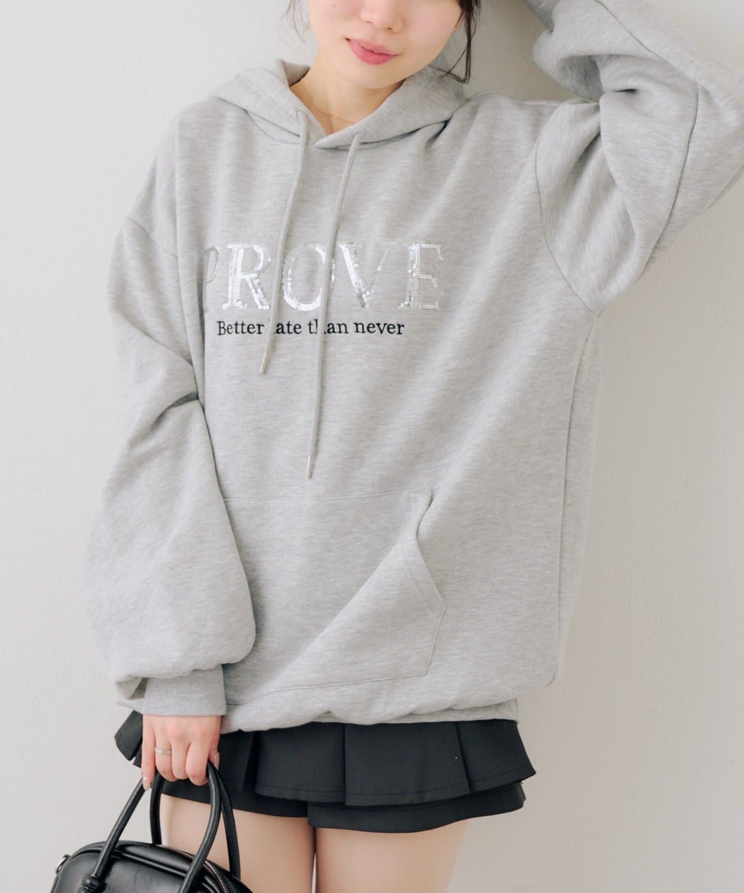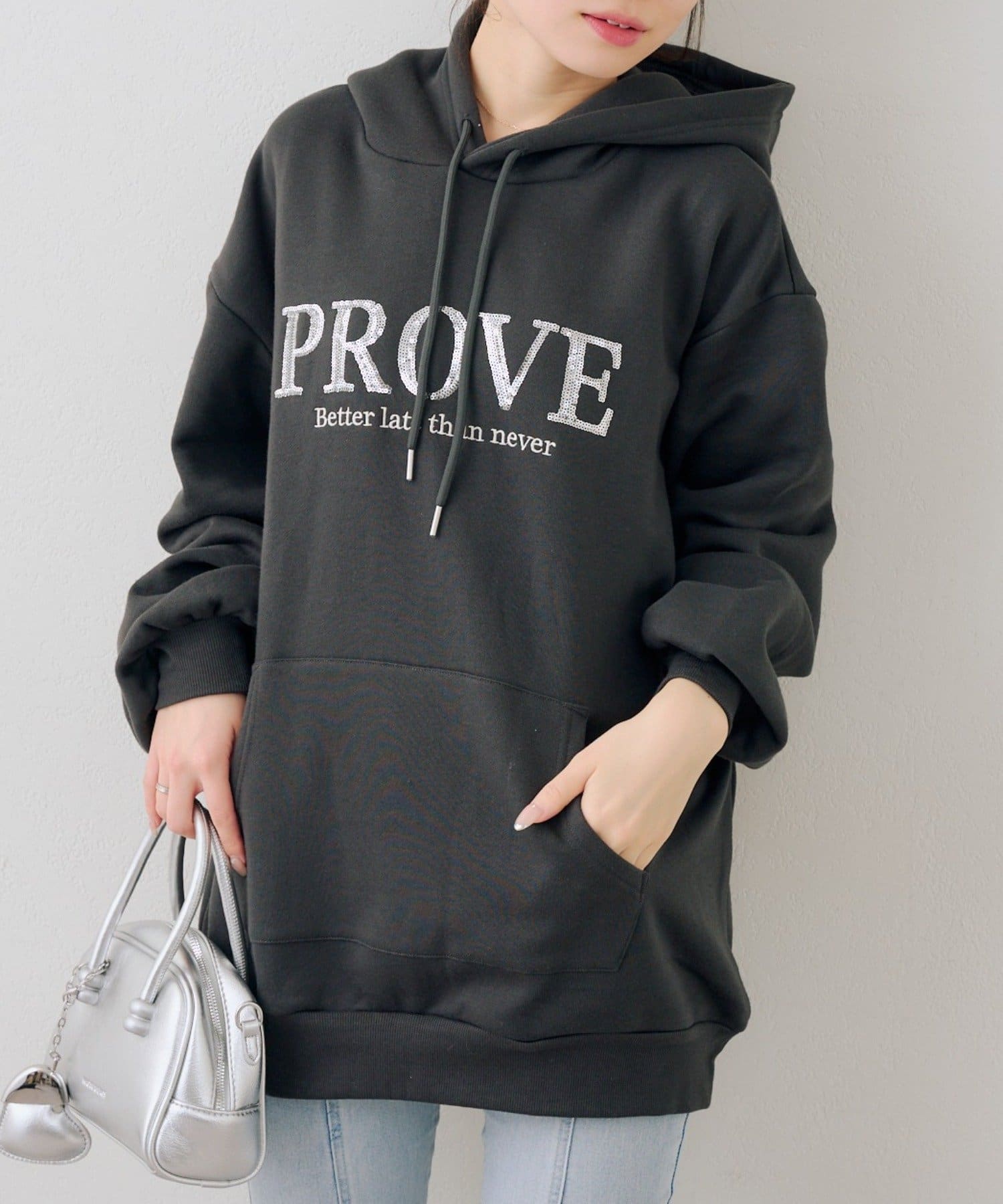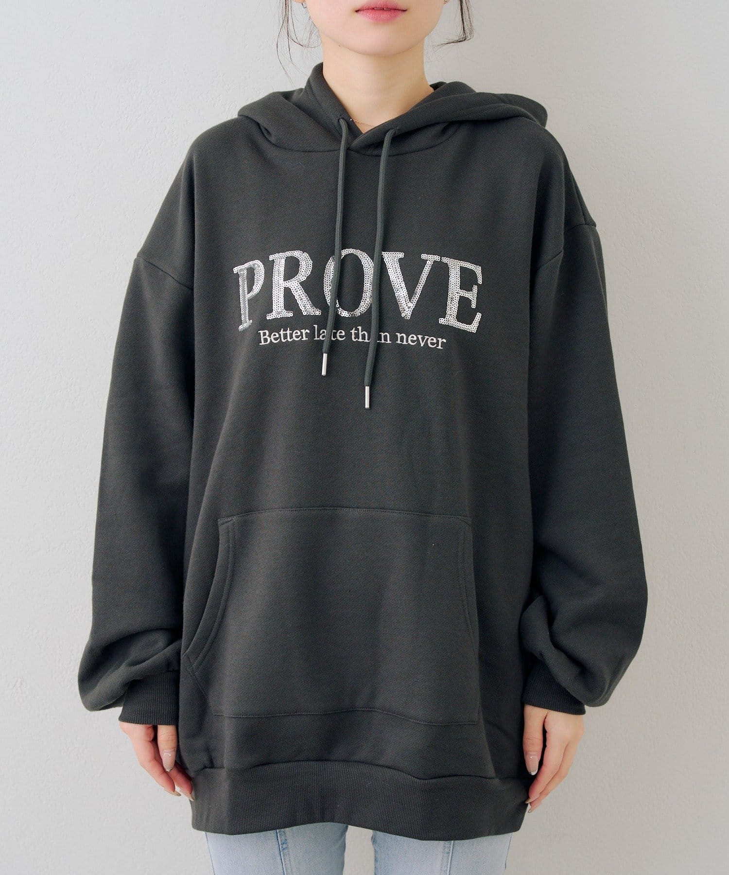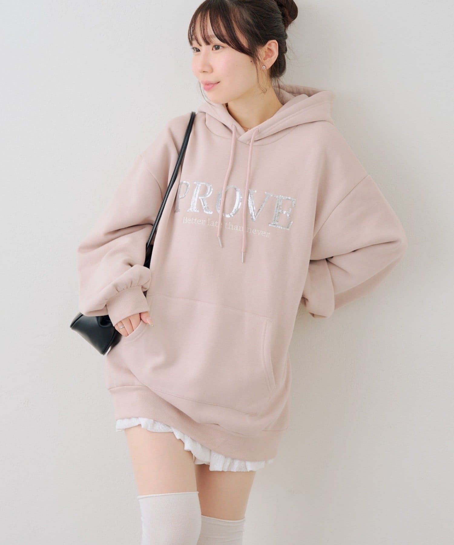 ・胸元のスパンコールロゴが可愛いパーカー