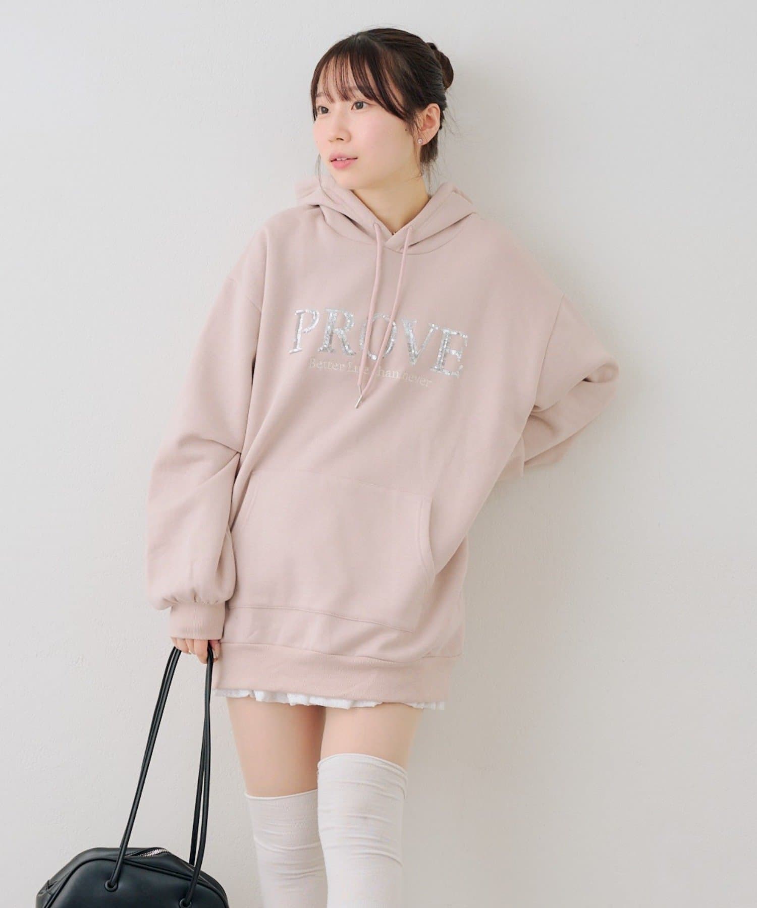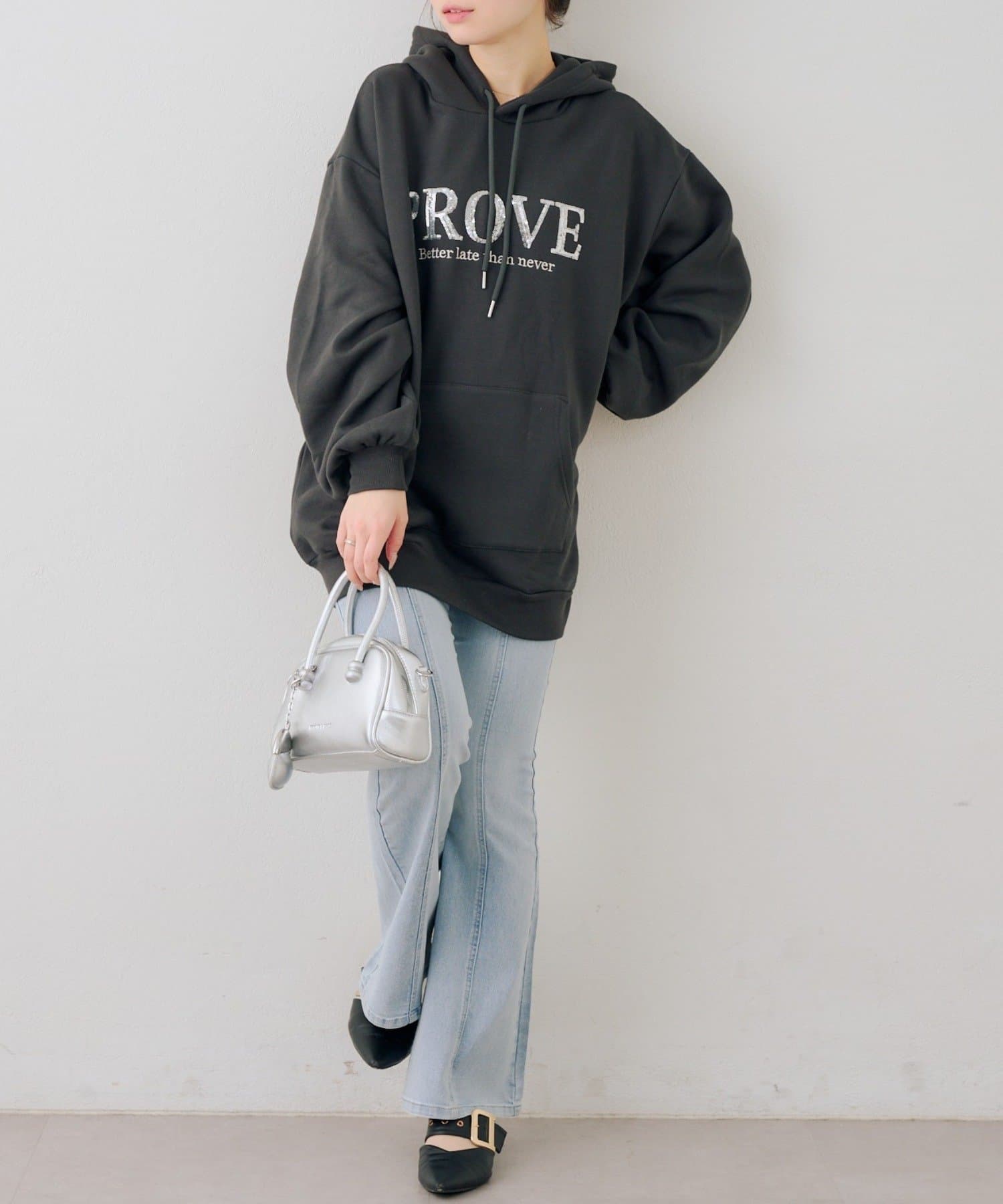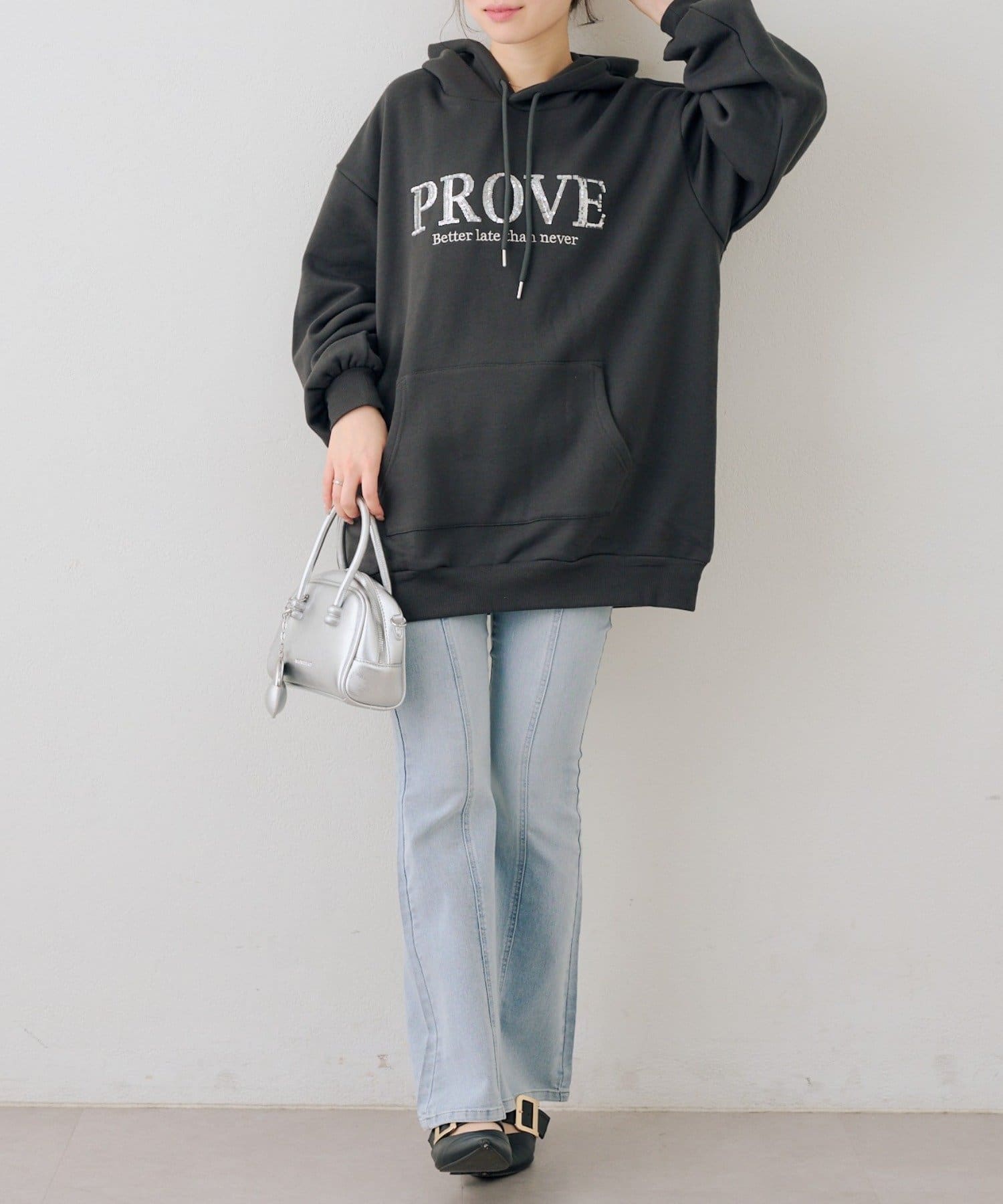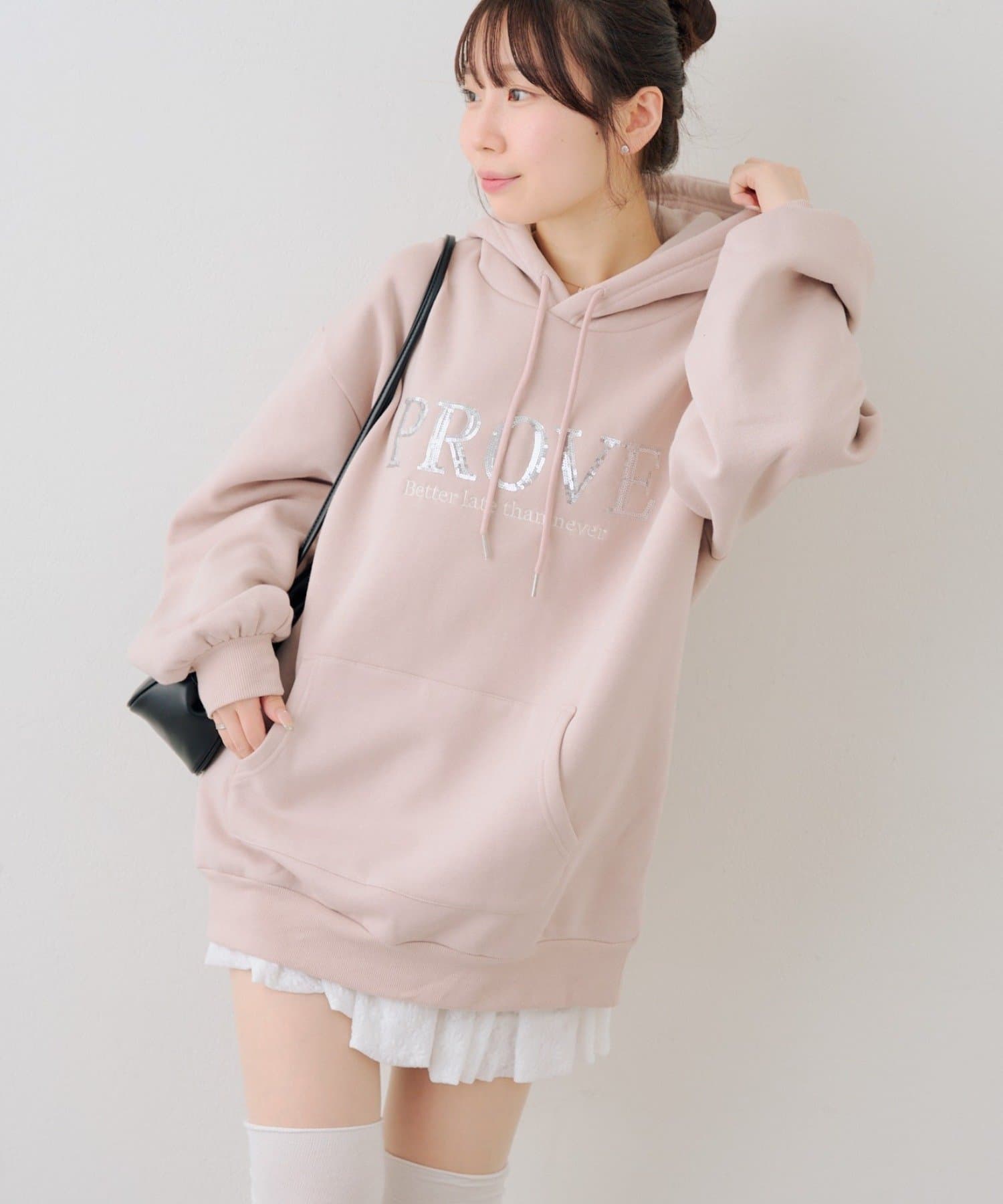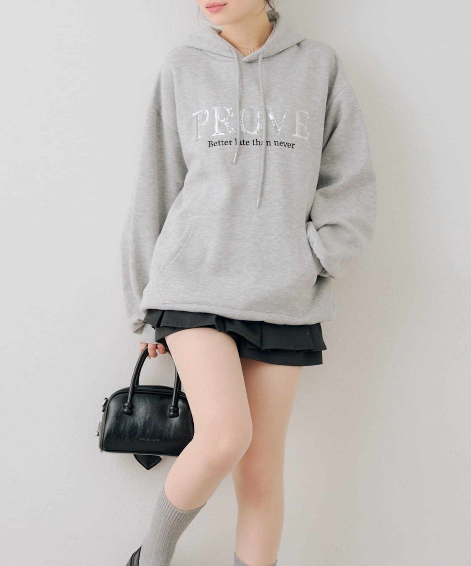 ・胸元のスパンコールロゴが可愛いパーカー
