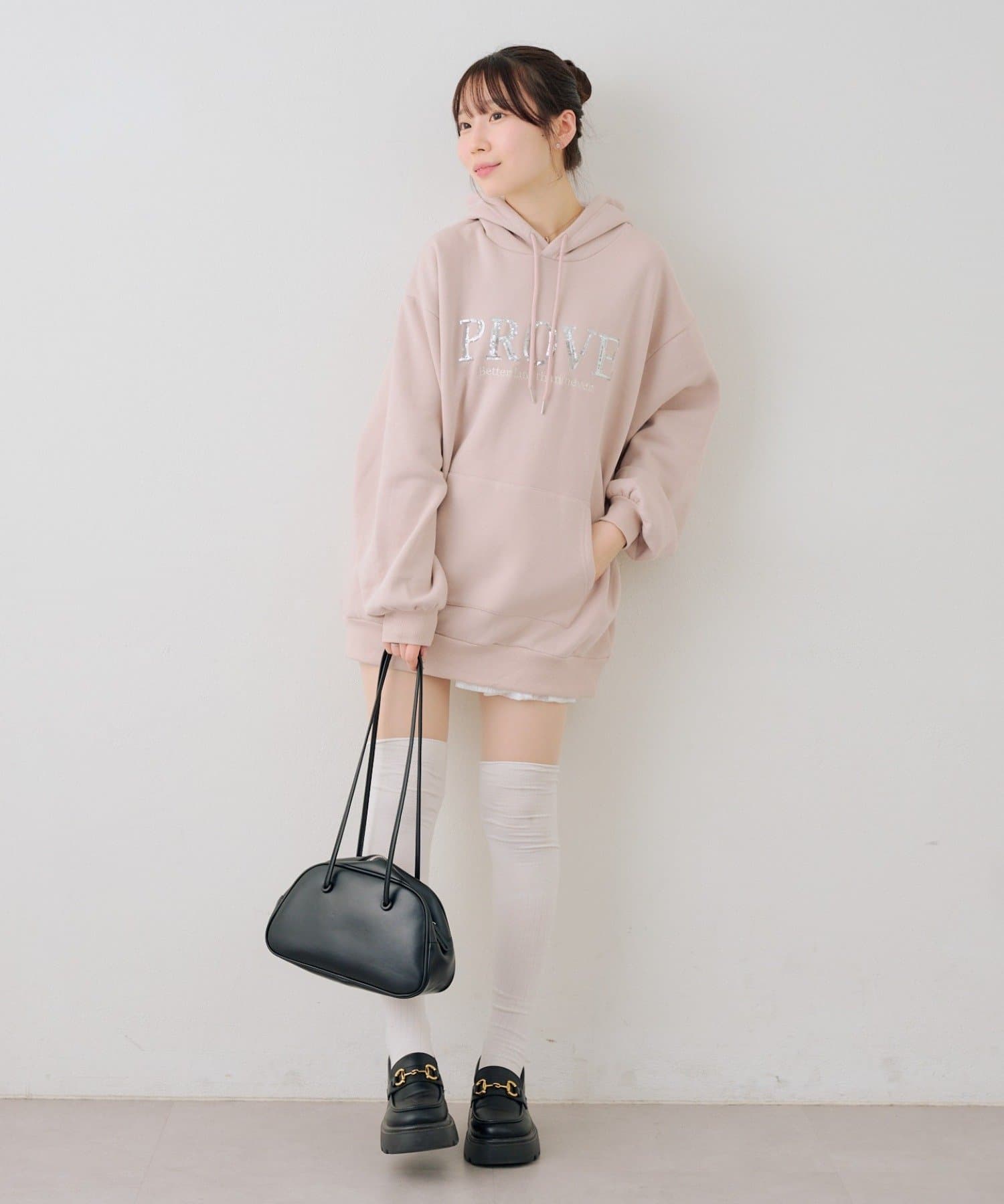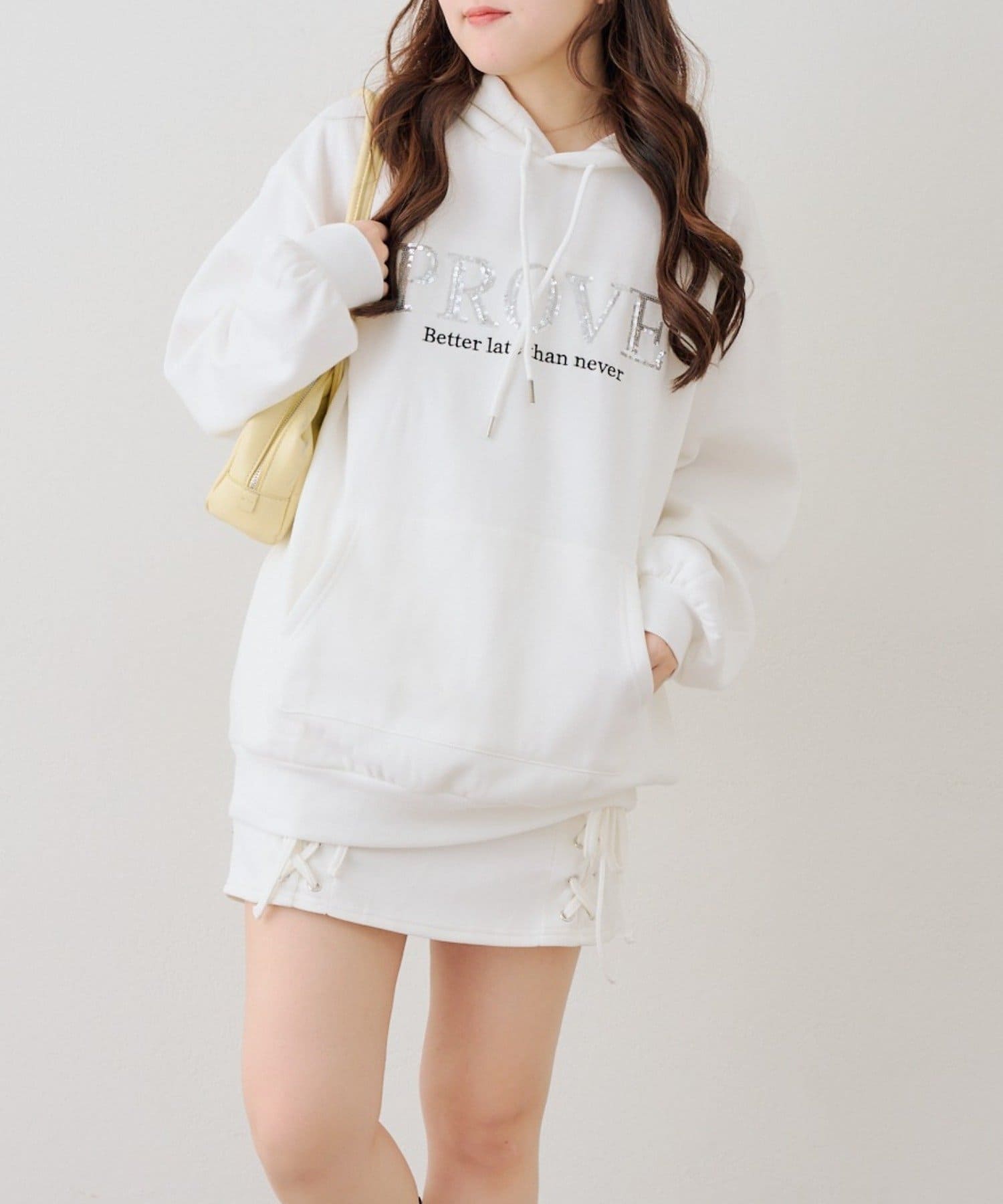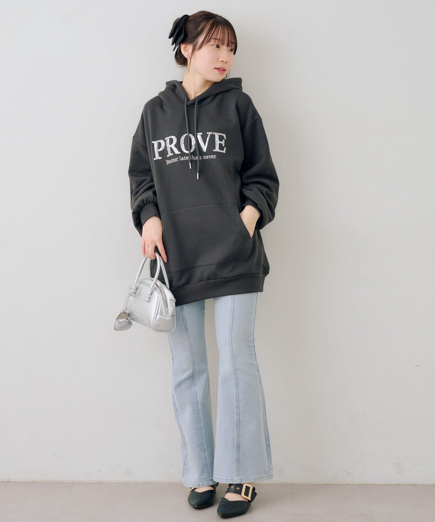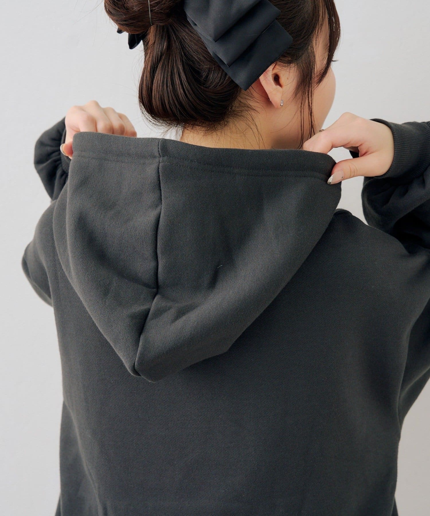 ・胸元のスパンコールロゴが可愛いパーカー