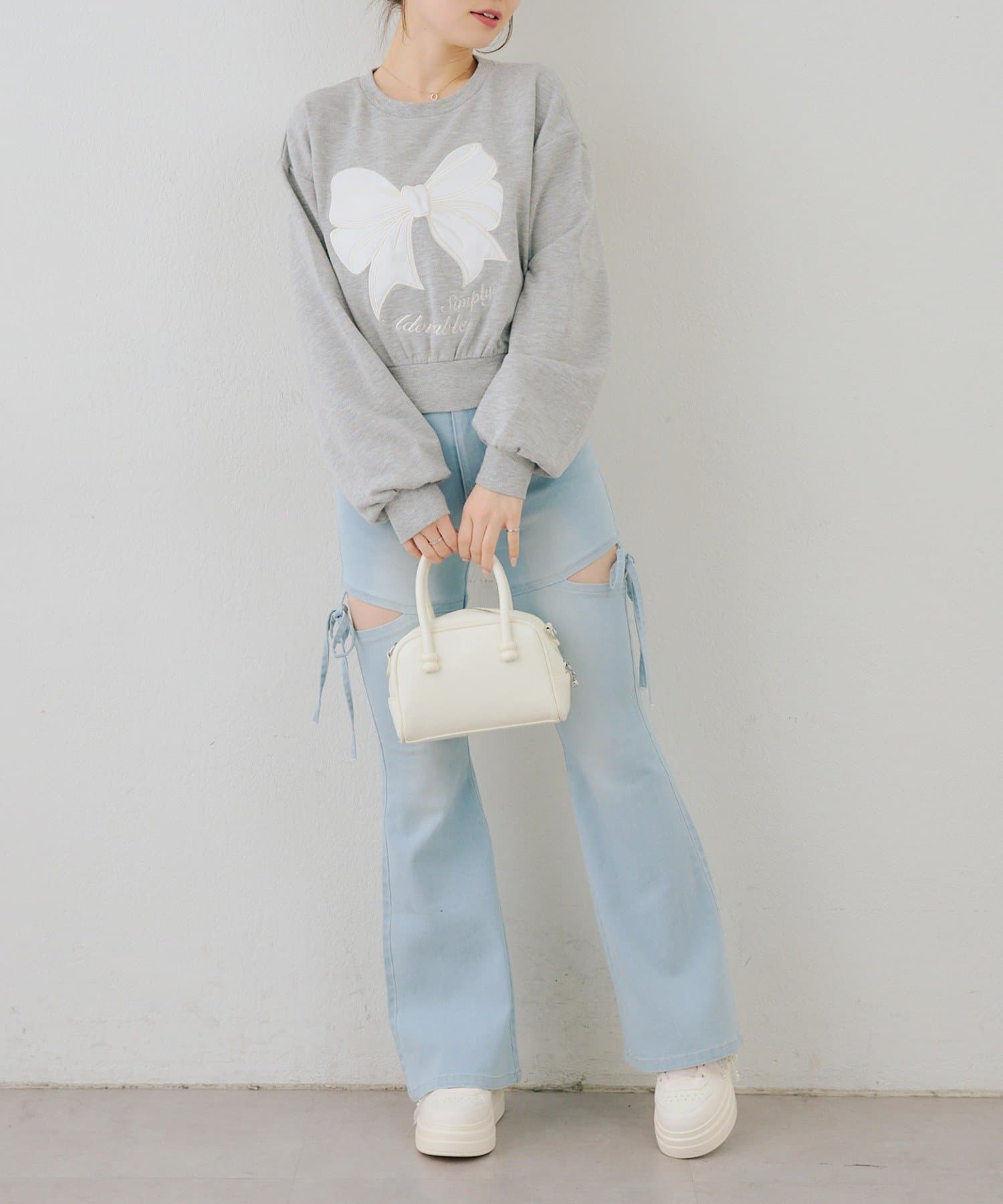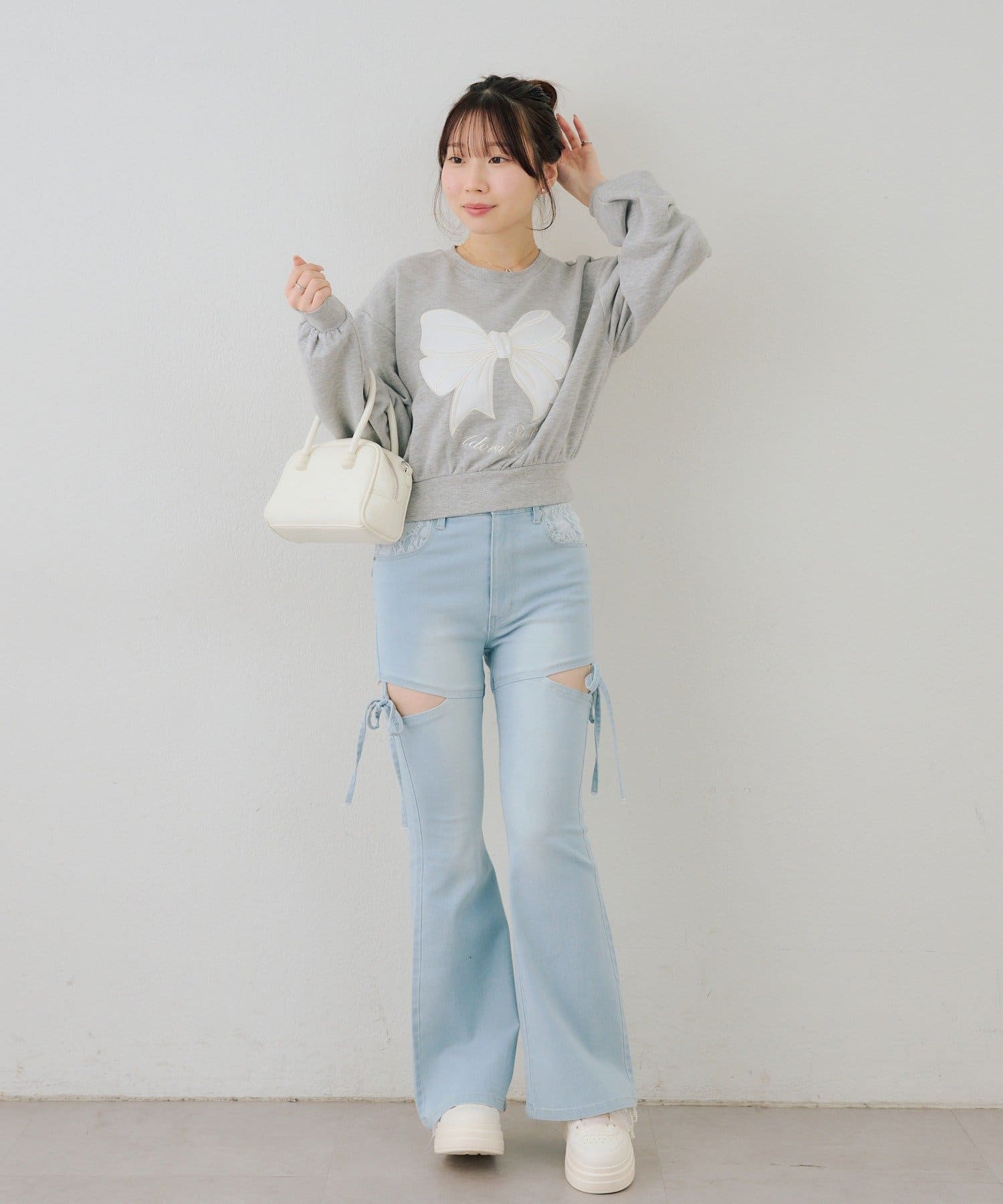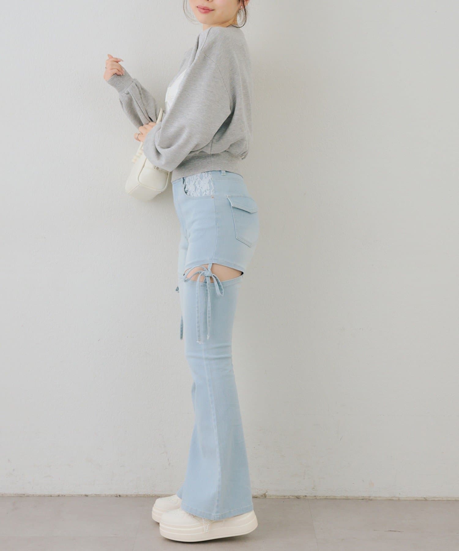 ・ハイウエストのデニムフレアパンツで美脚見え間違いなしのコーデがオススメ♪