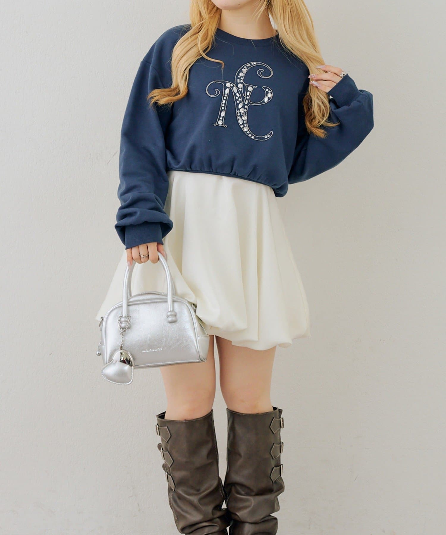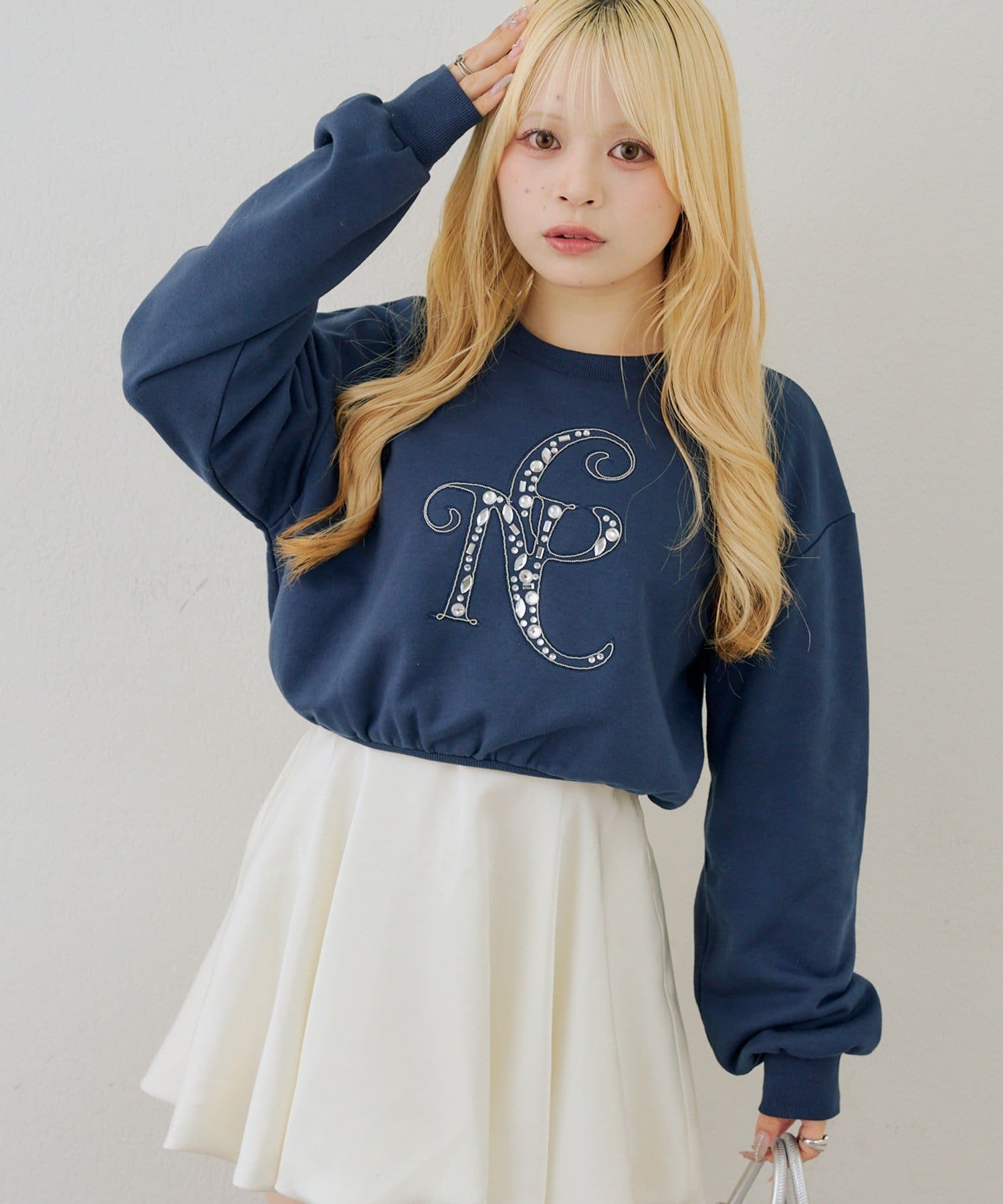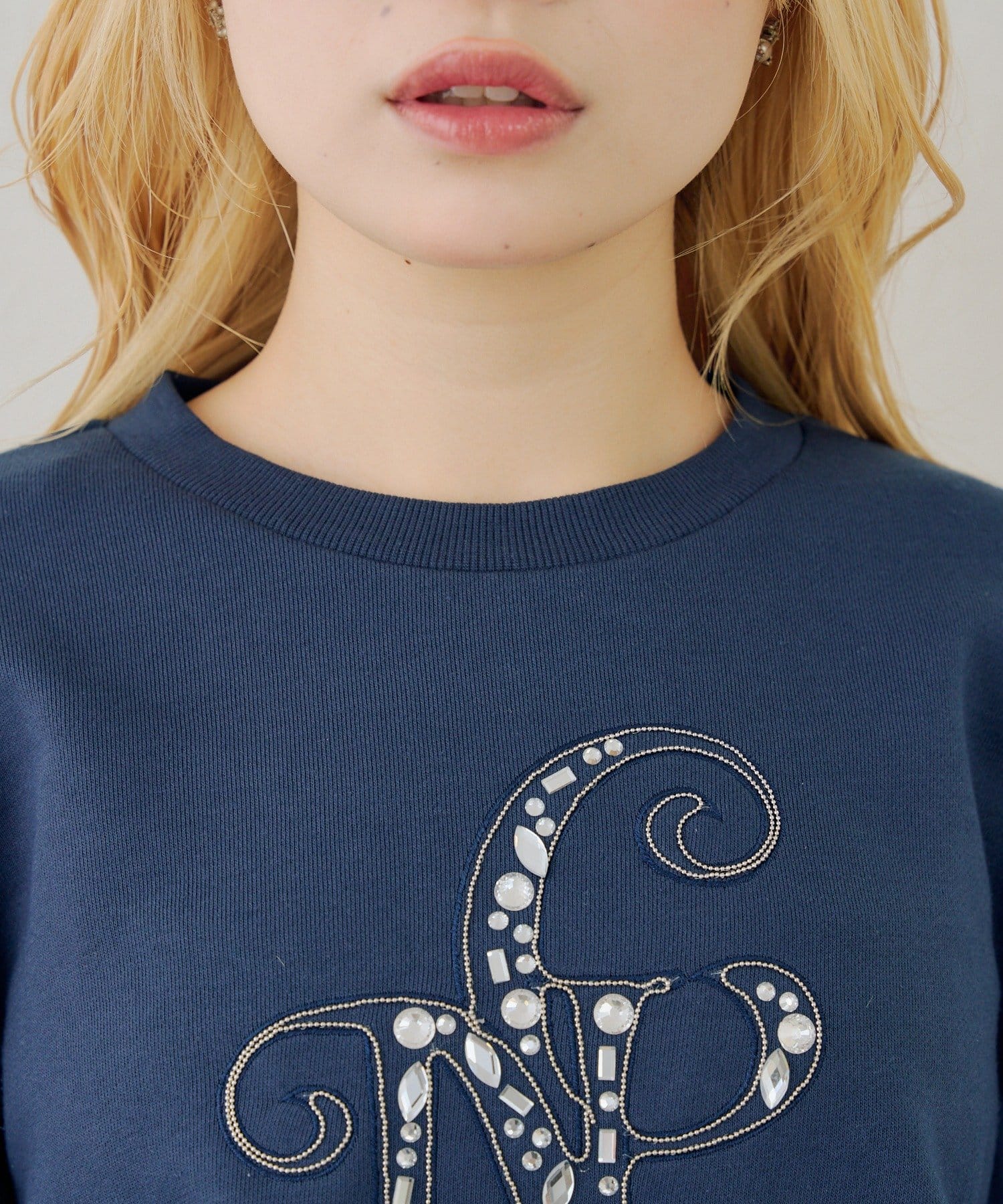 ・光沢のある刺繍ロゴが可愛いスウェットプルオーバー