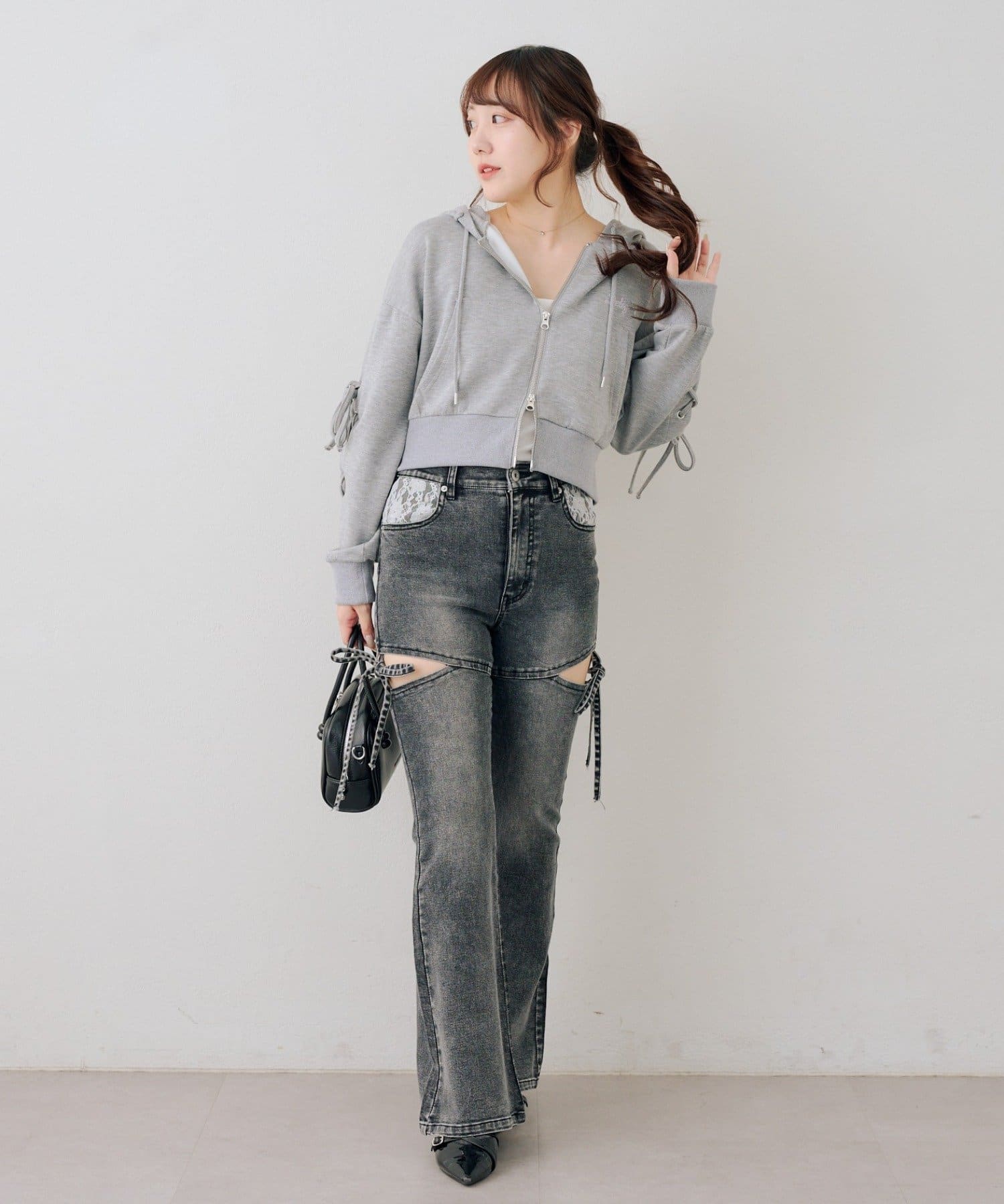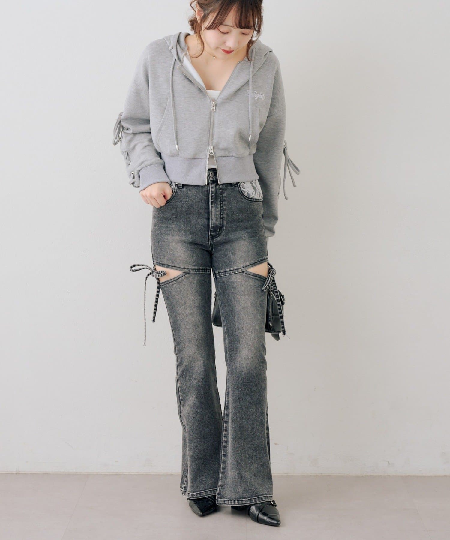 ・ショート丈のアイテムなので、ハイウエストのフレアパンツと相性抜群♡